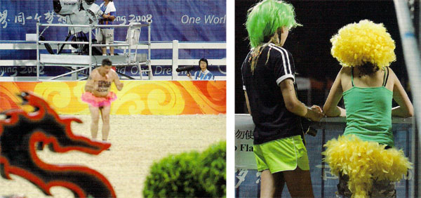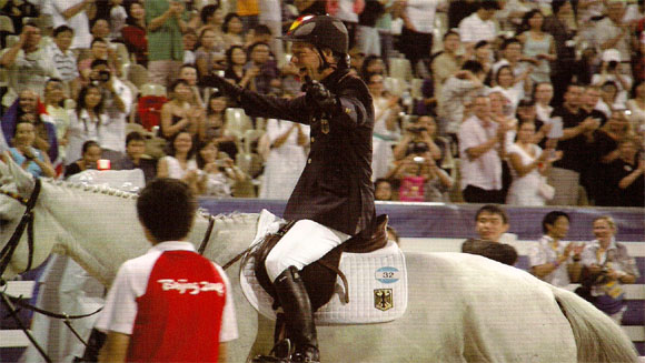 最優(yōu)秀的舞者 安琪-范-格倫斯文,荷蘭騎手,1996、2000、2004三屆奧運(yùn)會盛裝舞步金牌得主,在本次奧運(yùn)會上依然以優(yōu)雅的表現(xiàn)、完美的人馬配合再次贏得盛裝舞步個人冠軍。頒獎結(jié)束后,在觀眾的歡呼聲中,她騎著馬繞場一周,向觀眾致意,并一再用手指向自己的坐騎Salinero,意在告訴我們,這勝利同樣屬于自己的愛馬。 最“專業(yè)”的“業(yè)余” 欣里希-彼得-羅邁克(Hinrich Peter Romeike)于1963年5月26日生于德國漢堡。在2008年北京奧運(yùn)會上,他奪得三日賽團(tuán)體和個人的兩塊金牌。誰能想到,如此出色的成績,竟然會出自一名業(yè)余騎手。羅邁克被稱作“騎馬的牙醫(yī)”,他的職業(yè)是牙科醫(yī)生,在漢堡附近的倫茨堡與人合開了一家診所。羅邁克說:“我的職業(yè)是牙科醫(yī)生,我工作時必須全神貫注,這樣的習(xí)慣對我參加比賽很有好處。我是業(yè)余騎手,不靠參加馬術(shù)比賽獲取收入,這使我在某種程度上沒有負(fù)擔(dān),在做出某些決定的時候能夠輕松、坦然對待。” 最“黑”的“黑馬” 北京時間8月21日,在北京奧運(yùn)會馬術(shù)障礙賽個人決賽中,加拿大選手埃里克-拉馬澤面對眾多著名騎手的夾擊,殺進(jìn)決賽,并最終通過加時賽擊敗瑞典選手羅爾夫-戈蘭-本特松,奪得金牌,成為本屆奧運(yùn)會最“黑”的“黑馬”。而連續(xù)80年在奧運(yùn)會障礙項目上得牌的德國隊本次顆粒無收,也是一個意外。 最眼花繚亂的障礙 本次比賽的障礙設(shè)計有很多亮點,既考慮到對馬的技術(shù)難度,又體現(xiàn)了中國文化特色。這個艷麗得令人眼花繚亂的傳統(tǒng)獅子造型一定讓參賽馬匹感到些許困惑。 最職業(yè)的“啦啦隊” 障礙賽決賽場上,荷蘭、美國、澳大利亞、加拿大的啦啦隊分布在不同看臺,每當(dāng)自己國家的騎手出場時,他們都不會吝惜自己的熱情,掌聲、喊聲一片......但比賽鈴聲一響,聲音瞬間全無,當(dāng)騎手跳完最后一道障礙后又會爆發(fā)震耳欲聾的歡呼聲。此圖是坐在攝影師身后的加拿大隊的啦啦隊,他們的表現(xiàn)堪稱最職業(yè)的馬術(shù)比賽啦啦隊。 最美的臉 無意之間在馬術(shù)賽場的志愿者隊伍中,拍到了這張臉,洋溢著青春、自信、熱情的臉因這個中國印而更加美麗。 最沒譜兒的“演出” 8月21日晚,在香港舉行的奧運(yùn)馬術(shù)項目比賽進(jìn)行最后一天賽事,一名僅穿一條粉紅色芭蕾舞裙的男子跳入賽場,當(dāng)中裸奔“演出”。場上嘩然,在觀眾的倒彩和起哄聲中,工作人員迅速進(jìn)入賽場,將裸奔男子驅(qū)逐出去。據(jù)說裸奔者是一名叫馬克-羅伯茨的英國人。因為裸奔,羅伯茨是各地法庭的??停贿^很多時候,最終處罰不過是幾十英鎊的罰款?!八姓J(rèn)有些人可能受到了冒犯?!彼霓q護(hù)律師說:“但是,這是一種善意的、老式的英國式玩笑。” 最酷的裝扮 賽場的看臺角落,天真的孩子扮相很吸引人注意。毋庸置疑,這樣宏偉的人馬競賽,一定會或多或少地在他們純潔的內(nèi)心留下許多快樂的記憶。 最強(qiáng)大的后援 |