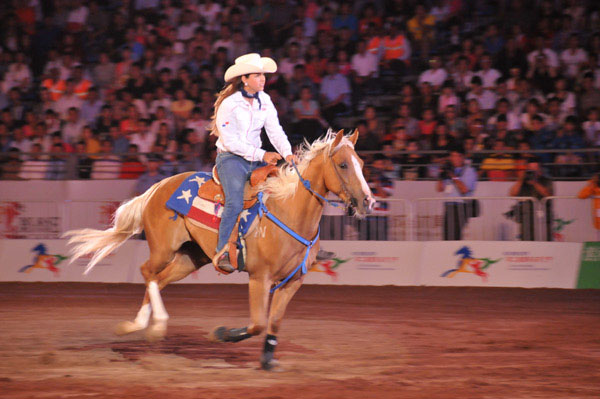 新華網(wǎng)呼和浩特8月10日晚,參加“鄂爾多斯達(dá)拉特第二屆國際馬文化節(jié)”的國際頂尖馬術(shù)精英,在鄂爾多斯市康巴什新區(qū)展開激烈的繞桶大獎賽角逐。 當(dāng)晚,來自中國、美國、英國、葡萄牙、意大利、巴西、荷蘭7國的24名騎師,參與了繞桶大獎賽角逐。此次比賽以沖破世界紀(jì)錄為主題,按照國際繞桶聯(lián)盟的專業(yè)標(biāo)準(zhǔn)和競賽規(guī)則展開。為保障競賽的公平、公開和公正性,大賽組委會為選手們統(tǒng)一提供了水平相當(dāng)?shù)拿绹涮伛R,選手通過抽簽獲取參賽馬匹和出場順序。 夸特馬是美國西部牛仔運動的專屬馬種。這些馬匹是賽事主辦方從美國西部農(nóng)場精心挑選的。 馬術(shù)繞桶賽,起源于美國西部鄉(xiāng)村,是使用3個相同的普通油桶,按苜蓿葉形狀擺放的一個比賽項目,以騎手從馬鼻穿過起始線開始、順序繞過3個桶至馬鼻沖過完成線為結(jié)束計時。這一馬術(shù)運動項目10年前進入中國。 |
