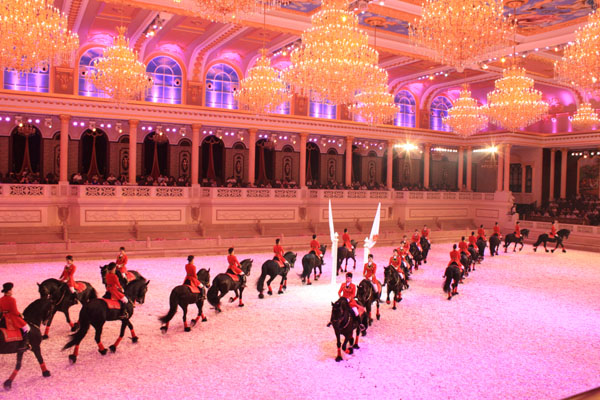 5月5日,《馬術(shù)》雜志編輯部受邀前往江蘇省無錫市江陰市海瀾國際馬術(shù)俱樂部參觀體驗(yàn)。海瀾國際馬術(shù)俱樂部經(jīng)過三年的精心準(zhǔn)備,傳承歐洲四百年經(jīng)典文化, 打造出了一場(chǎng)融合古典與現(xiàn)代完美結(jié)合的海瀾國際馬術(shù)表演。整個(gè)場(chǎng)館以奧地利皇宮為藍(lán)本,并結(jié)合了荷蘭、西班牙的諸多元素綜合設(shè)計(jì)而成。建筑中充滿了濃郁的 歐洲皇家風(fēng)范,表演中蘊(yùn)含了深邃的歐洲古典韻律,讓人領(lǐng)略到華貴典雅、莊重宏偉的氣勢(shì)! |