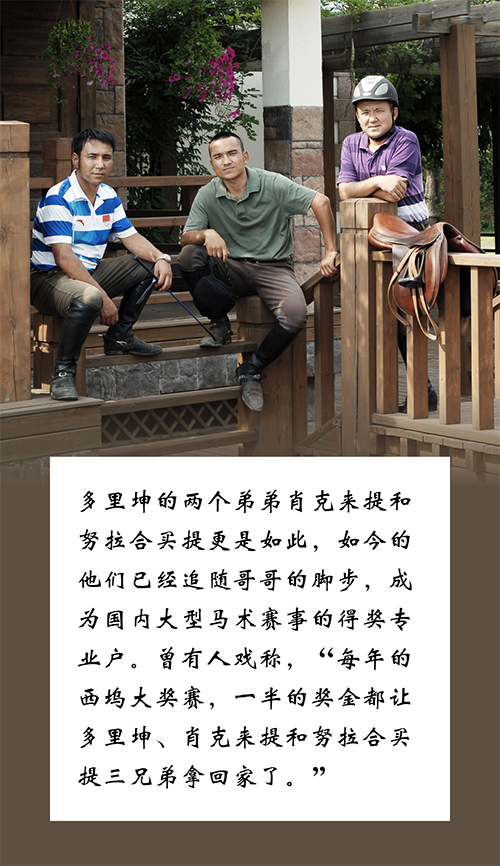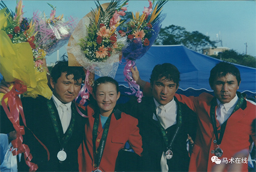 1982年12月8日,中國馬術(shù)協(xié)會(huì)成為國際馬術(shù)聯(lián)合會(huì)正式成員,自此中國馬術(shù)邁出了重要的一步。至2022年,中國的馬術(shù)運(yùn)動(dòng)已歷經(jīng)四十年風(fēng)風(fēng)雨雨?!恶R術(shù)》雜志推出《中國馬術(shù)四十年》特別策劃,講述那些為中國馬術(shù)做出貢獻(xiàn)的人物故事。時(shí)光易逝,彩云易散,縱然歷史的車輪滾滾向前,我們依舊能在時(shí)光的車轍中,找到值得我們銘記的那些人、那些事。 初見多里坤·阿拜,他默默坐在騎手中央,并不起眼,提到采訪,他站起身,滿臉隨和,“好啊,這里比較吵,你們看去后面采訪行不行?”說話之間,他已經(jīng)站起身,帶著我們向后走。時(shí)光給他的臉上添了幾道皺紋,但依舊能看得出當(dāng)年那年輕帥氣的臉。眼前這位個(gè)子不高、長相溫和、戴著沾了馬場(chǎng)土灰的鳥巢大師賽帽子的中年男人,很難與8屆全運(yùn)會(huì)元老,帶領(lǐng)家族兄弟7人走向馬術(shù)賽場(chǎng)的如此有感染力、有威信的家族大哥聯(lián)系起來。 這位站在鏡頭前,看似有點(diǎn)兒拘謹(jǐn)?shù)闹心耆耸亲尯芏?,尤其是家鄉(xiāng),新疆維吾爾自治區(qū)的年輕人肅然起敬、譽(yù)為傳奇的真正馬語者。 提到多里坤,家鄉(xiāng)的親戚,鄰里街坊都知道他有一連串傲人的成績,11歲獲得內(nèi)蒙古馬術(shù)錦標(biāo)賽速度冠軍、15歲獲全國馬術(shù)錦標(biāo)賽場(chǎng)地障礙賽亞軍、日本國際馬術(shù)大賽場(chǎng)地障礙賽第六名、21歲成為全運(yùn)會(huì)馬術(shù)團(tuán)體冠軍成員。這些成績似乎都在訴說著他在馬術(shù)領(lǐng)域是多么有天賦,畢竟年紀(jì)輕輕就獲得了諸多成就。但熟知的他人一定明白,這些成績背后的不易。 多里坤·騎馬40年 父親的支持 多里坤的父親是新疆伊犁哈薩克自治州昭蘇種馬場(chǎng)的一位獸醫(yī),很小的時(shí)候,多里坤就經(jīng)常騎在馬背上跟著父親四處行醫(yī),并漸漸顯露出了他的馬術(shù)天賦。1982年年僅10歲的多里坤被新疆隊(duì)的領(lǐng)導(dǎo)發(fā)現(xiàn),于是來給多里坤的父親做工作,希望他能進(jìn)入馬術(shù)隊(duì)?!捌鸪醺赣H是不同意的,但是因?yàn)槲液芟矚g,最終還是尊重了我的選擇,連帶父親最喜歡的大青馬一起,都托付給了伊犁體育局?!?/div> 經(jīng)過一年的訓(xùn)練,11歲的多里坤一出場(chǎng)就拿到了1000米冠軍,還破了比賽記錄。在之后的四年里,他拿到了很多速度賽的冠軍,破了多項(xiàng)紀(jì)錄,捧了多個(gè)獎(jiǎng)杯。1987年,多里坤被挑入新疆隊(duì),訓(xùn)練基地在烏魯木齊。因?yàn)殡x家遠(yuǎn),父親放心不下,跟著多里坤一起到了馬術(shù)隊(duì)訓(xùn)練。但埋頭苦練了一段時(shí)間后,家里的來信不得不讓多里坤放棄了自己的馬術(shù)事業(yè)。 “家里6個(gè)孩子,我排行老二,父親來烏魯木齊陪我,家里根本忙不過來,家中的牛沒人照料,都死了?!睘榱苏疹櫦?,多里坤只得跟著父親回去。但不到一年的時(shí)間,家里又接到新疆馬術(shù)隊(duì)的電報(bào),張漢文教練三次邀請(qǐng)多里坤回烏魯木齊體工二大隊(duì)訓(xùn)練,感受到了真誠,多里坤父親最終同意了多里坤一個(gè)人回馬術(shù)隊(duì)訓(xùn)練。也是從這個(gè)時(shí)候起,多里坤從一位速度賽騎手,轉(zhuǎn)型成為場(chǎng)地障礙騎手。 經(jīng)過一年的訓(xùn)練,在1988年,新疆隊(duì)來到北京參加全國馬術(shù)場(chǎng)地障礙錦標(biāo)賽。那個(gè)時(shí)候交通還不是很方便,他們乘火車整整10天才來到北京,之后準(zhǔn)備了一個(gè)月,大家都是既承擔(dān)繁重的訓(xùn)練工作,同時(shí)承擔(dān)馬工和后勤工作。就這樣,功夫不負(fù)有心人,新疆隊(duì)在這次比賽中獲得了亞軍。也因著這樣的機(jī)會(huì),多里坤獲得了入選國家隊(duì),代表中國參加日本國際馬術(shù)大賽的機(jī)會(huì)。“那個(gè)時(shí)候才15歲,心里還是怕的,隊(duì)友們都回去了,只剩下我,在北京體育大學(xué)又訓(xùn)練了一個(gè)月。好在抽簽時(shí)很幸運(yùn),拿了個(gè)好馬,取得了個(gè)人第六的成績?!?/div> 2001年,廣州九運(yùn)會(huì),新疆隊(duì)獲得團(tuán)體第二,多里坤、加納古麗、努拉合買提、吉恩斯(從左至右) 時(shí)間轉(zhuǎn)到1991年,新疆隊(duì)終于籌到資金,把包含多里坤在內(nèi)的幾名馬術(shù)運(yùn)動(dòng)員送往吉爾吉斯訓(xùn)練。兩年后,多里坤回到烏魯木齊,準(zhǔn)備1993年的全運(yùn)會(huì)。期間,他回到家看望了一次久別的家人。“感覺支撐著家庭的、曾經(jīng)印象中高大的父親,一下子老了很多。我也沒想到,那次竟是最后一次見父親?!?/div> 回到烏魯木齊之后,多里坤就總牽掛著家人。有一次,他夢(mèng)到了父親,但夢(mèng)到父親去世了。醒來時(shí)滿臉淚痕。隊(duì)友們都問,你昨晚干嘛了?又哭又叫的喊你父親。心里陣陣不安的多里坤,急忙寫信給家里詢問情況。家里來信說一切都好,叫多里坤安心準(zhǔn)備,打好比賽。雖然家里的回信,讓多里坤的不安得到了少許緩解,但莫名的陰郁總是揮之不去。 這陰郁直接影響到了10月份參加的全運(yùn)會(huì)比賽賽場(chǎng)。一向競(jìng)技水準(zhǔn)相當(dāng)穩(wěn)定的多里坤,居然頻頻出現(xiàn)失誤,當(dāng)天個(gè)人比賽一無所獲。好在第二天的團(tuán)體賽上,多里坤發(fā)揮正常,與隊(duì)友一