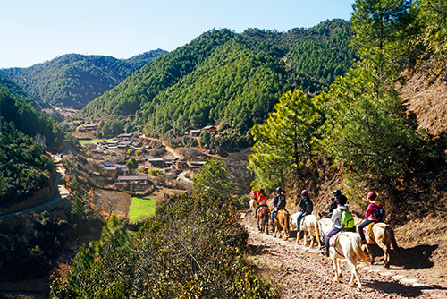 抬著年夜飯拜本主 云南大理沙溪是一個青山環(huán)抱的小壩子,沙溪古鎮(zhèn),是茶馬古道上唯一幸存的古集市,保存了完好的大年三十的民俗。我們到達(dá)沙溪古鎮(zhèn),巷道里人們端著各家的年夜飯,去往本主廟,或者剛剛從廟里出來回家。剛煮好的大塊肉和鮮艷的各色油炸香片,看起來很讓人垂涎。按照沙溪古鎮(zhèn)的傳統(tǒng),年夜飯必須抬著豬頭和公雞,去本主廟獻給本主菩薩,拜過本主,有了菩薩的祝福,才能開始做自家的年夜飯。 沒有豬和雞,我們把隨行帶的所有食品,用當(dāng)?shù)氐耐斜P也裝了一盤,加入到了本主廟的祭拜人群中來。小廟中香煙繚繞,人們在主殿前拜過菩薩后,還要在門口的香爐燒香,最后到大門口放一掛鞭炮,再端著豬和雞面朝四個方向分別顫悠著半蹲一遍。 從本主廟出來,我們還拜過了側(cè)面的土地神,祈禱此次馬幫出行順利。 玉津橋迎日出 沙溪古鎮(zhèn)東寨門口外的玉津橋是南連大理地區(qū)的第一橋,是原來所有南來北往馬幫的必經(jīng)之路。橋身還保持著很古樸的樣子,地面的石板也被過往人畜磨得很有光澤。它始建于明末清初,因被水沖塌,后改為鐵索橋。鐵橋因戰(zhàn)亂被毀,再改為木板橋。今橋為民國24年重建,此橋橋墩用石灰沙漿灌筑,拱圈用糯米紙漿灰粘結(jié),特別牢固。 年三十的夜晚很多人在旁邊的空地燃放炮竹煙花,綻放在星空中,照亮了古老的橋身,也倒影在平靜的黑潓江中。而大年初一清晨的第一縷陽光,也同染上光潔古老的石板,我們在江邊享受著安寧干凈的這一刻。 沙登箐觀石窟 大年初一我們騎馬去距離沙溪幾公里外的沙登箐。騎在馬背上路過沿途的白族村莊,路邊曬太陽的老人孩子們,都互相問候新年好,有一種云南特有的溫暖祥和。 馬幫們帶來的不僅僅是鹽和茶,還有隨行傳教的僧侶。歷史上的南詔國王因受武則天的影響,而鼓勵僧侶們在沙溪石寶山上大興雕刻石窟。石窟群依山開鑿,宏偉壯觀,共有石鐘寺區(qū)、獅子關(guān)區(qū)和沙登箐區(qū),計17窟,造像139軀。 不同于旅游車可以到達(dá)的石寶山石窟群,沙登箐隱秘在一個很深很窄的峽谷中,沿著中間的馬道,我們可以到達(dá)一尊沿著山壁雕刻的很大的佛像跟前。這里的地貌很奇特,是典型的丹霞地貌,仿佛從山上長出巨大的紅色的一個個石頭疙瘩,佛像就被安置在山崖和地面相接的凹槽部分。這里非常安靜,只有我們幾馬幾人,可以靜心欣賞這南詔大理國時期的藝術(shù)瑰寶。石窟雕刻風(fēng)格融合了尼泊爾、印度等的風(fēng)格,這些都是茶馬古道上特有的文化交融。很遺憾的是,大佛旁邊的幾尊小佛,都有被機器切割的形狀,這是明顯被盜過的痕跡。 百年鹽道馬幫行 沙溪境內(nèi)古馬道密布,有不少馬道至今還在使用。沙溪最古、最有特色的馬道,是沙溪北面明澗谷底的明澗道和沙溪通往彌沙鹽井的鹽道。前者當(dāng)?shù)厝朔Q“明澗哨馬幫路”,后者稱“馬坪關(guān)路”。大年初二我們隨馬幫從沙溪古鎮(zhèn)出發(fā),踏上前往馬坪關(guān)的千年古鹽道。 這條古道至今仍在使用,馬幫穿行在群山峻嶺間,時而石板路,時而亂石路,時而上下土坡,時而穿林而過。好在我們的坐騎小滇馬們都腳力強勁,走得穩(wěn)穩(wěn)當(dāng)當(dāng)。山路崎嶇難走,隨行徒步的向?qū)兿氤隽耸诺霓k法,一路拉著馬尾巴爬升。 我的馬行前有點感冒,一路打著噴嚏,還不時把口水噴在前面隊友的身上。但是該爬山的時候一點也不含糊,上坡下坡走得胸有成竹。 行至山間穿出樹林,溪水邊鋪著白桌布的長條餐桌給所有人帶來了驚喜,擺放著甜點、紅酒、紅茶,我在草地上給大家煮咖啡,向?qū)г诨鹛吝厽t燒牛肉和臘肉白菜湯。當(dāng)年洛克出行的奢侈也不至于此吧。戶外不一定非要艱苦,這荒野中的終極享受也未嘗不可。 馬坪關(guān)風(fēng)雨橋 馬坪關(guān)坐落在沙溪西部群山中,是一個面積大約 1.5 平方公里群山懷抱的圓形谷地。東距沙溪 15 公里,西距傍彌潛井 15 公里。成為過往客商、馬幫歇腳休息的地方。據(jù)元朝《經(jīng)世大典驛站篇》記載,馬坪關(guān)是沙溪最早設(shè)立的關(guān)卡(馬皮關(guān)哨),它是沙溪通往劍川彌沙鹽井和古蘭州啦雞井的必經(jīng)之地,元代馬坪關(guān)由跟隨忽必烈征討云南有功的人世襲士官管理,到明代萬歷年間沙溪鹽務(wù)轉(zhuǎn)由村貢員段良控管,馬坪關(guān)也因此成為沙溪第一卡。 整整一天的騎行,我們到達(dá)了馬坪關(guān),集體在村口的本主廟前下馬。這在當(dāng)?shù)匾彩怯兄v究的。 村里人不能騎馬經(jīng)過本主廟前,是為了表示對本主的敬重之意,據(jù)說有一個人從本主廟前面經(jīng)過,沒有下馬,本主發(fā)火了,此人沒走一段就摔下馬而死了,后來馬坪關(guān)人以摔死的這個人的名字命名此地,以警示大家要敬重本主,此傳說也一定程度反映了馬坪關(guān)人的祖先崇拜和自然崇拜。 從村口穿過魁星閣和風(fēng)雨橋,就是我們晚上住宿的村民小段家。戴著眼鏡的小段,是村里最有文化的人,他在大理市五中上的中學(xué),但還是回到了山上的馬坪關(guān)娶妻生子?,F(xiàn)在在馬坪關(guān)小學(xué)里教書,學(xué)生只有三個人。 從小段家門口,就可以看到完整的魁星閣和風(fēng)雨橋。這個優(yōu)美的全木質(zhì)的廊橋是單孔瓦屋拱型廊橋結(jié)構(gòu),建于清嘉慶年間,是茶馬古道上唯