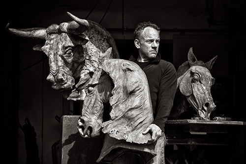 不管是人還是動物,其每一個(gè)動態(tài)姿勢的核心點(diǎn)就在于沒有開始,亦沒有結(jié)束,而是空間里的一個(gè)開放的故事。 我抓住了生命中的一個(gè)瞬間,并且將其定格在青銅之中。 雕塑家 Jos Dirix 的作品圍繞生命存在的自然周期,并飽含對生命的尊重。他為自己創(chuàng)作的每一件雕塑作品都注入了靈魂,讓人從中可以感受到生命的力量,這種力量源于他剛毅澎湃的內(nèi)心世界,體現(xiàn)在那種毫不遮掩修飾的強(qiáng)烈的真實(shí)感之中。 Jos Dirix 曾對他的作品做過這樣的闡釋:“不管是人還是動物,每一個(gè)動態(tài)的核心點(diǎn)就在于沒有開始,亦沒有結(jié)束,唯有空間而已。這是一個(gè)開放的故事?!边@位來自比利時(shí)林堡的雕塑家,在國際上享有聲望,其作品主要表現(xiàn)人體的張力或者是動物的行動之態(tài)?!拔易プ×松囊粋€(gè)瞬間,并且將其定格在青銅之中?!?/div> Jos Dirix 創(chuàng)作的這些馬、公牛和人體等雕塑都充滿活力,它們動態(tài)的姿勢彰顯出一種原始的力量和高貴,人和動物都飽含生命的能量,令人心生敬意。 在一次將真實(shí)的觀察與想象力相結(jié)合的探索中,Jos Dirix創(chuàng)作的青銅作品“男人與野獸”,以一種連續(xù)的動態(tài)手法與創(chuàng)作材料間產(chǎn)生了互動。要在保存真實(shí)與重塑藝術(shù)靈魂之間達(dá)到正確的平衡,的確是一件充滿挑戰(zhàn)的任務(wù)。 他喜歡以牛和馬為主題來進(jìn)行創(chuàng)作,特別是馬,他熱愛、尊重這些忠誠的、憨厚的、充滿毅力的高貴的生命。目前中西方最有影響力的雕塑作品大都是銅制,比如羅丹的《思想者》、《青銅時(shí)代》、《自由女神像》等。Jos Dirix 選擇青銅,并不僅僅是因?yàn)樗馁|(zhì)感、可塑性、規(guī)格的不限性、色彩肌理豐富性等適宜做成雕塑的外在原因,更是因?yàn)槠浜裰馗?、幽遠(yuǎn)的歷史感和文化沉淀的屬性,而這正貼合了他對所創(chuàng)作的主題的印象。 Jos Dirix 曾創(chuàng)作過一組足具中國風(fēng)的青銅馬雕塑,創(chuàng)作靈感不是來自我們漢唐時(shí)代的泥塑或彩塑馬,而是來自我們的筆墨古畫。古時(shí)的馬,在經(jīng)過了華夏先人的抽象審美的藝術(shù)加工后,他重新予之以立體的形象,仿佛真實(shí)存在過。 Jos Dirix 目前居住在比利時(shí)林堡中心地區(qū)的一個(gè)叫 NEER 的小鎮(zhèn)上,那地方靠近自然,就在 Leudal 自然保護(hù)區(qū)的邊緣。他的家是一座經(jīng)過翻新后的舊式農(nóng)舍,包括他的工作室和幾間冰島馬的馬房。除了創(chuàng)作,他每天都會騎馬,身與心都在鄉(xiāng)下的自然美景之中得到釋放。他與這些高貴的“野獸”彼此熟悉,也彼此信任,在馬背上,他可以達(dá)到平衡和節(jié)奏的完美和諧。 這種感受,雕塑家在他的另一項(xiàng)酷愛的事情上也曾有過,那就是練習(xí)日本柔術(shù)。柔術(shù)之道是用一種平衡的,幾乎是精神上的舞蹈來進(jìn)行攻擊或收回。正是這些在一個(gè)立體空間內(nèi)對動態(tài)和力量的感覺,激發(fā)了 Jos Dirix 創(chuàng)作出那些富有表現(xiàn)力和真實(shí)感的青銅雕塑。 文/丘橦 圖/Bob Strik |