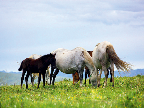 藏族有句諺語:“衛(wèi)藏的法,安多的馬,康巴的人?!焙忧R就產(chǎn)在安多藏區(qū)。河曲馬是我國一個古老而優(yōu)良的地方馬種,體形高大,背脊平坦,挽乘兼顧,持久耐勞,并且適應(yīng)當(dāng)?shù)氐乩砼c生態(tài)環(huán)境,抗病能力強(qiáng),早在秦漢時期就被做為戰(zhàn)馬使用,在歷史上常用它作為貢禮。 河曲馬的起源 河曲馬歷史是古老的,《詩經(jīng)》中頌秦馬強(qiáng)壯,據(jù)《中國養(yǎng)馬史》認(rèn)為,古“秦馬”即今日河曲馬。河曲馬在唐、宋時被稱為“吐蕃馬”或“吐谷渾馬”。在其漫長的形成過程中 , 混有波斯馬、大宛馬等外界基因,但受蒙古馬影響最大 , 但由于千百年來產(chǎn)區(qū)交通閉塞 , 受外界影響相對較小 , 在獨(dú)特的生態(tài)條件下 , 形成了與產(chǎn)區(qū)外馬種有顯著差異的優(yōu)秀地方品種。 名字的由來和產(chǎn)地 河曲馬 , 舊稱南番馬 , 是我國古老的優(yōu)良馬種之一。因產(chǎn)于甘肅、四川、青海三省交界的黃河第一彎曲部 , 原西北軍政委員會畜牧部于 1954 年定名為河曲馬。以甘肅省甘南藏族自治州瑪曲縣、四川省阿壩藏族自治州若爾蓋縣和青海省果洛藏族自治州河南蒙古族自治縣為主要產(chǎn)區(qū)。河曲馬是跨省分布的馬種,三個省三個縣構(gòu)成河曲馬的中心產(chǎn)區(qū)。只有跨省了解各自的類群,才能窺知其全貌。 產(chǎn)區(qū)的自然條件 產(chǎn)區(qū)位于青藏高原東緣,海拔為3300~4000m,氣候比較寒冷、降雨充沛、光照充足。年平 均氣溫0.3~1.4℃,絕對最高、最低氣溫分別為25.5℃和-34.4℃,晝夜溫差達(dá)25℃左右。降霜期很長,早霜始于8月中旬,晚霜到翌年 6 月中旬止,純牧區(qū)幾無絕對無霜期,降雪期從 10月至次年4月,積雪最深達(dá)20cm。冬春風(fēng)多,風(fēng)向多為北風(fēng)和東風(fēng),最大風(fēng)力為7~9級。雨熱同季、濕潤度大的氣候特點(diǎn) , 形成了優(yōu)良的高山草甸草場、亞高山草甸草場和沼澤草場。牧草有20余科,約100多種,以禾本科、莎草科、蓼科、毛莨科、菊科和薔薇科為主。植被覆蓋度在 85% 左右,草叢高 35cm 左右,青草畝產(chǎn)約270kg。光照資源豐富 , 太陽輻射及光合有效輻射量較大 , 全年日照時數(shù) 2050~2519h, 青草期日照條件優(yōu)越。青草期光合有效輻射為牧草生長發(fā)育提供了基本能量 , 是形成優(yōu)良牧場的基本條件。 河曲馬的類群 河曲馬由于分布面廣,各地自然和經(jīng)濟(jì)條件不同,多年以來在甘、川、青三省形成了不同的類群。 1. 喬科馬 產(chǎn)于甘肅南部瑪曲縣。河曲馬的藏語“Khro kho’i rta”( 卻廓達(dá) )簡稱“卻達(dá)”,“卻廓”漢譯為“喬科”?!皢炭啤倍质遣卣Z“沼澤”之意。當(dāng)?shù)囟嗾訚傻?,且水草豐美,氣溫適中。當(dāng)?shù)伛R經(jīng)當(dāng)?shù)夭刈迥撩穸嗄赀x育,形成獨(dú)立的類群。相傳瑪曲草原是格薩爾王牧馬的地方 , 而瑪曲的特產(chǎn)河曲馬就是他騎乘的神駿。外形特點(diǎn):體格較大,頭大、多凸頭,管圍較粗,蹄質(zhì)欠佳。平均體高 139.5cm。經(jīng)當(dāng)?shù)噩斍暮忧R場多年選育,已培育出相當(dāng)優(yōu)良的河曲馬。毛色,原多青毛,現(xiàn)以騮、栗毛為多。曾被輸往西北和華北地區(qū),很受歡迎。甘肅三件寶:“河曲馬,天水瓜,蘭州水煙人人夸”。 2. 索克藏馬 產(chǎn)于四川省阿壩藏族州若爾蓋縣,也叫“若爾蓋馬”,在松潘草原,故叫“松潘馬”,在若爾蓋縣唐克鄉(xiāng),因此也叫“唐克馬”,曾養(yǎng)在索克藏寺院,故名“索克藏馬”,后養(yǎng)在白河牧場。該地海拔高,為泥炭沼澤地,水草豐美,雨量充足。本類群馬頭大,耳大,凸頭,有捲馬尾的習(xí)慣,與藝術(shù)品中“唐馬”的形象有共同之處。平均體高 134.4cm。 3. 柯生馬 產(chǎn)于青海省河南蒙古族自治縣的柯生鄉(xiāng),因此而得名。柯生馬屬于蒙古族所養(yǎng)的河曲馬,體形結(jié)構(gòu)良好,體質(zhì)干燥結(jié)實,蹄質(zhì)堅硬。當(dāng)?shù)伛R場集中了該縣大部分的優(yōu)良河曲馬。由于蒙古族遷來時帶來蒙古馬,而后采用優(yōu)良的河曲馬公馬雜交,故該類群是混有蒙古馬血液的河曲馬。平均體高 135.2cm。 寺院養(yǎng)馬 河曲馬產(chǎn)區(qū)在建國前,寺院是統(tǒng)治中心,掌管領(lǐng)地內(nèi)政治、經(jīng)濟(jì)、文化、醫(yī)療等。寺院內(nèi)集中了最佳的馬匹。按當(dāng)?shù)亓?xí)慣,人死以后生前最好的物品、馬匹都要送去寺院。通過種種渠道,優(yōu)良馬匹向寺院集中,通過寺院向外提供種馬,寺院起了種馬場的作用,使馬匹質(zhì)量得以提高,對河曲馬的育種起到了積極的作用。在上述三個河曲馬類群中,索克藏馬就是因養(yǎng)在索克藏寺院而得名的。 河曲馬的體型外貌 整體來說,河曲馬主要屬于挽乘兼用型。體制結(jié)實干燥或顯粗糙。頭較大,多直頭及輕微的兔頭或半兔頭,耳長,形如竹葉,鼻孔大,顎凹較寬。頸長中等,多斜頸,頸肩結(jié)合較好。肩稍立,鬐甲高長中等。胸廓寬深,背腰平直,少數(shù)馬略長。腹形正常,尻短略斜。肢長中等,關(guān)節(jié)、肌腱和韌帶發(fā)育良好;前肢肢勢正?;蛏酝庀?,部分后肢略顯刀狀或外向;蹄大較平,蹄質(zhì)略欠堅實,偶有裂蹄。河曲馬的毛色主要是深色 , 騮、黑、青、栗色等深顏色被毛占 97.6%, 其它毛色較少,部分馬頭和四肢下部有白章。成年河曲馬公馬的平均體