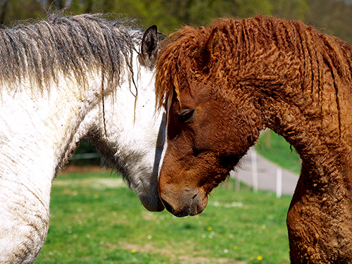 卷毛名馬 昭陵六駿之一的“拳毛騧”是李世民武德四年十二月至次年三月平定河北,與劉黑闥在洺水作戰(zhàn)時所乘的一匹戰(zhàn)馬,列于祭壇西側(cè)三駿石刻中間。馬長黑嘴頭,周身卷毛呈黃色,原名“洛仁騧”,是代州刺史許洛仁在武牢關(guān)前進(jìn)獻(xiàn)給李世民的坐騎,故曾以許洛仁的名字作馬名。后人或因馬周身旋毛卷曲,又稱“拳毛騧”。 唐代詩人杜甫曾在他的詩中寫道:“昔日太宗拳毛騧,近時郭家獅子花”。獅子花是范陽節(jié)度使李德山進(jìn)獻(xiàn)給唐代宗李豫的一匹駿馬,這匹馬體毛卷曲似魚鱗,通體有九道花紋,所以又叫“九花虬”。唐代宗把這匹馬賜給了汾陽王郭子儀。詩人把“拳毛騧”與“九花虬”并提,因為兩者之間有極其相似之處——卷毛。本文講述的巴什基爾卷毛馬,亦有來源于我國古代之說法。 卷毛馬—不可思議的馬種 巴什基爾卷毛馬的特征是有明顯別致的卷毛。從鬃毛到身體的毛發(fā),甚至連睫毛都是卷的??茖W(xué)表明,其毛發(fā)的卷曲源于其體內(nèi)一種特殊的基因。 卷毛馬是馬的一個品種,在俄羅斯和獨聯(lián)體國家叫巴什基爾馬,沒有刻意說“卷毛”二字。在北美,則稱為巴什基爾卷毛馬、美國巴什基爾卷毛馬或北美卷毛馬。這種馬有著不同的身量、毛色和體形,但都無一例外地攜帶著一種很獨特的卷毛基因。卷毛馬沉穩(wěn)聰慧,友好近人,易被調(diào)教。同時,卷毛馬又因其堅忍的體質(zhì)和良好的耐力聞名。多數(shù)人發(fā)現(xiàn)卷毛馬喜歡與人相處,但又不會急躁。相比于大多數(shù)馬品種來說,卷毛馬頭腦冷靜,是一種非常值得信任且使役品性優(yōu)良的馬品種。 外貌特征 卷毛馬兩眼間距常寬,兩耳間距典型寬,耳尖微鈍或彎曲,臉部長窄且直,或為公羊頭(凸頭),可能具有原始馬的性狀,如較小的附蟬和較小的距(有時沒有距)。卷毛馬鬃鬣長而厚,多為雙鬃(從中間向兩邊分開)。無須剪毛以便展示卷毛性狀。卷毛馬存在多種毛色,例如斑點毛、阿帕盧薩毛、花毛等等。體高一般是14.2-15.1掌,外形和大小不等,其中還包括矮馬。平均體重360-450kg,有時可以達(dá)到550kg。巴什基爾馬非常強(qiáng)健,不易患病,存能力和適應(yīng)性都很強(qiáng)。自然壽命通常是25—35歲。 特性 關(guān)于美國卷毛馬的起源有很多學(xué)說。20 世紀(jì)初,卷毛馬首次在內(nèi)華達(dá)州尤里卡被牧場主 John Damele 和他的兒子發(fā)現(xiàn)。當(dāng)時慕斯唐野馬隨處可見,但卷毛馬卻很罕見。幾年之后,Demele 成功捕獲一匹卷毛馬并馴化了它,隨后將其出售,這便開始了卷毛馬的繁育歷史。1932 年,一次罕見的嚴(yán)冬席卷該地。春季到來,整個馬群只有卷毛馬活了下來。這些耐寒性的證明被Demele 家族記錄,他們決定要在馬群中飼養(yǎng)更多的卷毛馬。在那年嚴(yán)峻的冬天過后,Dameles 開始認(rèn)真飼養(yǎng)這些馬匹。他們外出尋找奠基種馬,那是一匹混在慕斯唐野馬群里的兩歲栗色馬,Copper D 是后來給它取的名字。Dameles 起初只想提高馬的使用價值,為馬群增加一些其他品種的血液,并不刻意保持馬品種的“純度”。引進(jìn)的外血種馬包括摩根馬和阿拉伯馬。這兩種馬為 Dameles 家族的馬繁育了許多后代,是如今數(shù)以百計卷毛馬的祖先。 一些人認(rèn)為卷毛馬的氣味不同于其它馬種的馬。卷毛馬被認(rèn)為是唯一的低過敏反應(yīng)的馬品種。大多數(shù)人對馬毛過敏,但是在和卷毛馬打交道時,不會有任何過敏反應(yīng)發(fā)生。研究人員認(rèn)為卷毛馬的皮毛中可能是缺少一種能產(chǎn)生過敏性的蛋白質(zhì),但是這項研究從未被官方報道過。相關(guān)研究人員一直不斷地為這項課題尋找充分的依據(jù)。 卷毛基因 獨特的基因賦予了卷毛馬以卷毛(冬天時被毛表現(xiàn)特別明顯)。卷毛按照其卷曲的程度可以分為以下四種情況:(1)最低程度,卷曲的部位有內(nèi)耳毛、距毛,還有卷曲的鬣毛和尾毛;(2)最大程度,全身被毛都卷,還有一綹一綹的鬣毛,睫毛和保護(hù)毛也卷曲;(3)極端程度,卷毛非常緊密而且極度卷曲,夏季脫毛時可能完全脫禿;(4)介于上述三種之間的卷曲毛發(fā)。 卷毛受季節(jié)的影響,夏季被毛波浪輕漾卷曲小,冬季被毛極盡卷曲之能事。研究認(rèn)為,卷毛性狀由顯性基因控制,純合的顯性基因型,其毛最卷;雜合基因型,其卷毛程度中等;純合型隱性基因型,不會表現(xiàn)出卷毛,這種馬雖然也是卷毛馬的后代,但常被稱為“平整被毛”的卷毛馬。 品種登記 美國巴什基爾馬登記組織 (American Bashkir Curly Registry ,ABCR) 成立于1971年,成立之初僅有 21 匹卷毛馬注冊,截至 2005年5月便在全球范圍內(nèi)(主要在北美)登記了4000匹以上的卷毛馬。ABCR 開創(chuàng)了卷毛馬注冊系統(tǒng),并且是一個封閉式血統(tǒng)登記系統(tǒng),即只有雙親都有血統(tǒng)登記時,后代才允許登記注冊。 國際卷毛馬組織 (International Curly Horse Organization ,ICHO)成立于 2000 年,截至 2006 年 10 月已登記超過 800 匹卷毛馬,在此組織登記過的卷毛馬都不會被稱為“巴什基爾卷毛馬”。盡管(可查詢的)卷毛馬血統(tǒng)可被跟蹤記錄,但 ICHO 注冊馬判斷標(biāo)準(zhǔn)更多的是根據(jù)可見的卷毛特征而不是其血統(tǒng)。 國際卷毛馬術(shù)運動組織 (Curly Sporthorse International,CSI) 成立于 2003 年初,致力于提升運動型卷毛馬,這也是比較流行