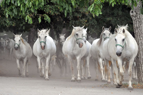 目前,全世界純種的利皮扎馬僅有3000 匹,該馬是近四百年來所出現(xiàn)的極具代表性的優(yōu)秀品種,優(yōu)異的利皮扎馬不僅流露出美麗高貴的氣質(zhì),而且還難能可貴地兼具了勇敢的特性和溫馴的脾氣,以及高超的學(xué)習(xí)能力。利皮扎馬是高等馬術(shù)用馬,是力量與優(yōu)美合二為一的象征。 名字的來歷 英語的利皮扎馬(也音譯為“利比扎馬”)是:Lipizzan,也寫成Lipizzaner,或Karster(卡斯特馬)。叫利皮扎馬是以斯洛文尼亞的利皮卡種馬場(Lipica Stud)而命名的,卡斯特馬本是培育出利皮扎馬的親本之一,是一種當(dāng)?shù)氐胤今R種,這種馬白色、體型較小,晚熟,但又異常強壯,后來也用這個名字來代指利皮扎馬,但并不為多數(shù)人承認(rèn)。 利皮扎馬與西班牙馬術(shù)學(xué)校 除了阿拉伯馬、純血馬、阿哈捷金馬之外,利皮扎馬也是世界上最著名的馬種之一。它的名聲來自于奧地利維也納的西班牙馬術(shù)學(xué)校,而西班牙馬術(shù)學(xué)校名字的來源,并不是因為它建立于西班牙,也不是它提倡西班牙騎術(shù),只是因為利皮扎馬的祖先來自于西班牙。西班牙馬術(shù)學(xué)校是在1572 年建立的,其冬季騎術(shù)大廳是在1735 年建成的。 育種簡史 利皮扎馬是在1580 年隨著哈卜斯大公查爾斯二世(Charles II) 在現(xiàn)在的斯洛文尼亞興建利皮卡馬場而出現(xiàn)的,當(dāng)時他從伊比利亞半島進(jìn)口了9 匹雄馬和24 匹雌馬,他要求保證向格拉茨的公爵馬廄和維也納的宮廷馬廄提供華麗的并以白色為主的馬。這種馬的育種主要是以西班牙馬(即安達(dá)盧西亞馬、盧西塔諾馬)為主,加入了當(dāng)?shù)卦捡R種卡斯特馬的某些基因。據(jù)研究,多數(shù)人認(rèn)為利皮扎馬高昂的步伐是承襲于西班牙馬,但也有人認(rèn)為卡斯特馬是賦予這項特色的使者。目前,利皮扎馬有8 大品系和近35 個品族。公馬的命名由兩部分組成,前部分是所屬品系的名字,后部分是母親的名字。母馬的命名取自品族的名字,且最后的字母應(yīng)為“a”。 戰(zhàn)爭中的幸存者 400 多百年來的多次戰(zhàn)爭沖突,包括拿破侖戰(zhàn)爭、兩次世界大戰(zhàn),影響了利皮扎馬的繁衍,因為只要有戰(zhàn)事威脅到這個馬場,這些馬兒就會被迫遷移。而每次遷移中,除了受盡磨難之外,勢必會有幾匹馬得要送人或是賣給其他馬場,因此一些小型的利皮扎馬場陸續(xù)出現(xiàn)。據(jù)資料記載,二戰(zhàn)期間,巴頓將軍曾挽救過利皮扎馬。因各種原因,利皮扎馬主要分布在奧地利、意大利、斯洛文尼亞、匈牙利、捷克和斯洛伐克等地。 品種特色 利皮扎馬并不高,體高多為147—157 厘米,但它們昂揚的步伐、結(jié)實的身材、有力而具彈性的動作,會讓利皮扎馬看起來比實際的身材還要大。利皮扎馬是一種晚熟而長壽的馬,許多都可以活到35 歲或是更老,不過它們一出生通常就已經(jīng)能夠展現(xiàn)高貴優(yōu)雅的氣質(zhì)。利皮扎馬是“白色”的,按照嚴(yán)格的學(xué)術(shù)定義它是“青色”變成的白色,一般剛出生時大多是黑色,部分是騮色(編者注:赤身黑鬃的馬為騮),直到五歲至八歲時會慢慢“白化”,它基本符合我國諺語所說的“七青八白”的規(guī)律。 通常來說,利皮扎馬在八個月左右,會經(jīng)歷它們一生當(dāng)中最尷尬的一段丑小鴨的歲月,而且這個丑小鴨的樣子會維持到三歲左右,在這段尷尬的期間,可憐的小馬駒很難得到族群的認(rèn)同,因為它看起來就像是個正在換毛的騾子一樣。其實在奧地利,這些年輕的利皮扎馬是要送到阿爾卑斯山的,到了三歲再把它們送下山,這時利皮扎馬就會顯現(xiàn)出它們出生時的高貴氣質(zhì),并且伴隨終老。 利皮扎馬在圍欄牧場里常常都是一副垂頭又昏睡的姿態(tài),但只要一出場或有人騎在它的背上,利皮扎馬可以立刻展現(xiàn)出活潑熱烈的情緒,頭高揚、頸彎曲、鼻孔開張,用那種不可思議的力量與優(yōu)雅做出與生俱來的騰躍動作。但如果這時有人說著溫柔的言語接近它,它卻可瞬間變成一匹溫馴又文雅的馬兒,它不僅能展現(xiàn)服從的特質(zhì),還能透露出一種體貼又想討人喜歡的心意,卻又無損于它桀驁不馴之風(fēng)采。 利皮扎馬骨骼強健有力,且絕少發(fā)生瘸拐現(xiàn)象,即使快速轉(zhuǎn)換周遭環(huán)境或飲食,它們也能適應(yīng)地非常好。也正是這種隨和的天性與適應(yīng)力,讓養(yǎng)育它們的工作可以變得很容易,而且也是因為這些特性,讓利皮扎馬可以或在歐洲各地到處行軍打仗,或在各地藏匿,可以工作到二十多歲,還可以活到三十歲以上。 騎在利皮扎馬背上是一種愉悅的體驗,它們的背寬廣柔軟,步伐活潑,有力的后軀讓它們天生擁有超高的平衡感和渾然天成的韻律感,騎士在馬背上,用不著做什么規(guī)律的調(diào)整動作,馬兒就會自動做出準(zhǔn)確而穩(wěn)定的節(jié)奏。 利皮扎馬的公馬相當(dāng)?shù)販伛Z又容易控制,事實上,這些公馬比母馬更易控制,騎士一旦獲取了這些公馬的尊敬,它們一生都會知道要尊敬你。但母馬就會因為有點夸張的母性使然,會把自己當(dāng)作是你的長輩,這時你最好要時刻提醒它一下。在高等馬術(shù)表演訓(xùn)練和表演時,都選擇公馬作為騎乘對象。 利皮扎馬不是那種容易害羞膽怯的馬,但那些讓它們害怕的事物,其他的馬兒卻不見得會害怕,這點是頗為奇怪的。不過
