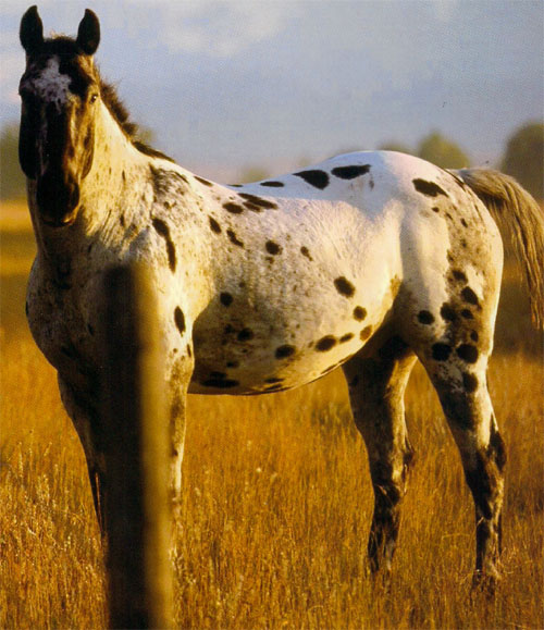 名字的來歷 阿帕盧薩馬是美國常見而著名的馬品種,據(jù)說是在北美的內(nèi)茲佩爾塞人印第安領(lǐng)地由野馬培育而成的,這些野馬是西班牙探險(xiǎn)者帶來的西班牙馬的后裔。因該馬產(chǎn)于愛達(dá)荷州及華盛頓州的帕盧斯河(Palouse River)附近,所以開始時(shí)叫帕盧斯馬,后因英語單詞“Palouse”前常加冠詞“A”,于是該馬就錯(cuò)誤地被稱為“Apalousey”,1938年阿帕盧薩馬俱樂部成立并正式接受“Appaloosa”的英文名字,漢語翻譯為“阿帕盧薩馬’,亦譯稱“阿帕魯薩馬”。 阿帕盧薩馬簡史 內(nèi)茲佩爾塞印第安人生活的地區(qū)位于現(xiàn)在美國的愛達(dá)荷州北部、俄勒岡州東北部和華盛頓州的東南部,他們曾培育出天賦優(yōu)良的阿帕盧薩馬,即著名的斑點(diǎn)馬。在18世紀(jì)后期的內(nèi)茲佩爾塞戰(zhàn)爭期間,內(nèi)茲佩爾塞人為了逃避美國軍隊(duì)的追擊,騎乘阿帕盧薩馬穿峽谷、過激流、走山路,經(jīng)過3個(gè)月精疲力竭的跋涉走了1500英里。阿帕盧薩馬因其優(yōu)異的性能贏得了很高的聲望,阿帕盧薩馬也因其強(qiáng)壯和速度被視作威脅而慘遭屠殺。1877年,美國軍隊(duì)打敗內(nèi)茲佩爾塞人,該部落連同這些馬匹幾乎被滅絕。1938年,以一位種小麥的農(nóng)民克勞迪-湯普生為首,一些愿意獻(xiàn)身恢復(fù)阿帕盧薩馬光輝歷史的人成立了阿帕盧薩馬俱樂部。該俱樂部現(xiàn)位于愛達(dá)荷州莫斯考市,截至目前已有63萬匹阿帕盧薩馬在該俱樂部注冊。1950年,阿帕盧薩馬被美國種馬委員會(huì)正式承認(rèn)為一個(gè)獨(dú)立的品種,1975年3月25日,阿帕盧薩馬被定為愛達(dá)荷州的州動(dòng)物。 阿帕盧薩馬的特點(diǎn) 阿帕盧薩馬體高為14.2~15.2掌(注:1掌=10.16厘米),體重950-1250磅。成年的阿帕盧薩馬的體高不得低于14.0掌,但是往上沒有限制,17.0掌的阿帕盧薩馬時(shí)而可見。體重要與馬的大小和體格相符合。登記的阿帕盧薩馬不得帶有矮馬、挽馬、美國花馬和阿比諾馬(即美國白馬)的血液。 阿帕盧薩馬是速度快而優(yōu)美的動(dòng)物,具有耐力和運(yùn)動(dòng)型的體格。如今,理想的阿帕盧薩馬被認(rèn)為是非常平衡的“中庸”馬。阿帕盧薩馬的外表應(yīng)該是富于肌肉、對稱而光滑的,鬐甲明顯而良好,背短,尻斜,臂長而斜,胸圍深,腹線長,肩長而斜,胸深,管骨短而扁平,系中等長而斜,四肢及蹄結(jié)實(shí),運(yùn)步平順而輕松。阿帕盧薩馬有各種不同類型以適應(yīng)不同用途的需求。 阿帕盧薩馬和眾多其他馬種的不同點(diǎn)在于:毛色,斑點(diǎn)皮膚,白色的鞏膜和條形蹄。 阿帕盧薩馬的花色樣式 雖然阿帕盧薩馬不是根據(jù)毛色來判定的,但是毛色是該品種重要的可見部分。也就是說,人們想要的阿帕盧薩馬,從外表看上去應(yīng)當(dāng)像阿帕盧薩馬。阿帕盧薩馬基本的花色樣式有6種(亦可按5種的分法),并且這些花色樣式無限制地組合,因此沒有兩個(gè)阿帕盧薩馬具有絕對相同的標(biāo)記。許多馬具有兩種花色樣式,比如沙色和斑點(diǎn)?,F(xiàn)把基本的花色樣式分述如下: (1)斑點(diǎn)毯樣式:被認(rèn)為是最經(jīng)典的花色樣式。前軀呈暗色,腰部和臀部呈白色,像蓋在腰部和臀部上面的白毯子,在白色部分上面分布有圓形或雞蛋狀的斑點(diǎn),很多斑點(diǎn)的周圍有沙色暈環(huán),斑點(diǎn)有大有小,可以從美國1角銀幣大小到直徑為4英寸(注:約10厘米)大小。這種斑點(diǎn)毛毯也是可大可小的。 (2)白色毯樣式:前身呈暗色。腰部和臀部像蓋上白色的毛毯,毛毯的大小和形狀同“斑點(diǎn)毯”,不同的是毯子上沒有暗色斑點(diǎn)。 (3)大理石樣式(也叫“沙色”):基本的顏色是紅色或者青沙色,有時(shí)也被描述成騮色沙、褐騮沙或者黑沙色。大理石樣式是阿帕盧薩馬最常見的毛色樣式之一。青沙色在色調(diào)上可以很淡,也可以很深,但是這里的“青沙”不同于“青毛”。阿帕盧薩馬沒有青毛,除非它在沙色毛的基礎(chǔ)上附加有“青毛基因”。大理石樣式常帶有“油漆標(biāo)志”,即臉上有簇明顯的暗色毛。大理石樣式的阿帕盧薩馬在出生的時(shí)候幾乎都是單色的,當(dāng)其成年的時(shí)候才成為可辨認(rèn)的阿帕戶薩馬。 (4)豹斑樣式:基本的顏色是白色,從頭到腳均勻分布著形態(tài)大小相同的暗色斑。帶有豹斑樣式的阿帕盧薩馬生下來就帶斑點(diǎn),而且終生不變。值得注意的是,有一些所謂的阿帕戶薩馬臂部有斑點(diǎn),但是前軀呈淡色,這不是真正的豹斑樣式,多數(shù)屬于淡色沙毛和暗色斑的結(jié)合,在分類時(shí)應(yīng)該劃到“斑點(diǎn)毯樣式”。簡單地說,真正的豹斑樣式的阿帕盧薩馬是以白色為基礎(chǔ)色,出生時(shí)就帶斑點(diǎn)。 (5)雪花斑樣式:有時(shí)稱為“反向豹斑”,其基礎(chǔ)毛色為暗色,全身分布白色斑點(diǎn)。雪花斑樣式的阿帕盧薩馬一般在出生時(shí)呈單色,然后逐漸演變成此種樣式。雪花豹斑也可能是一種過渡的樣式,即隨著年齡的增長,雪花斑就變成了大理石樣式,這是雪花斑樣式從單色毛到沙色(即大理石樣式)的毛色變化的中間過程。真正的雪花斑樣式是阿帕盧薩馬中最罕見的花色樣式,而且其斑點(diǎn)也會(huì)隨著四季變更而發(fā)生變化。 (6)霜斑樣式或臀部斑點(diǎn)樣式:基礎(chǔ)毛色為暗色,在腰部或臀部有霜狀斑或白斑。這種樣式隨著年齡變