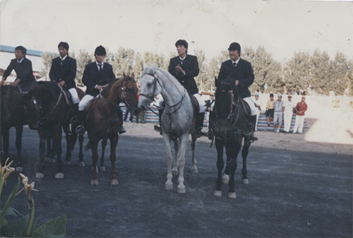 1982年12月8日,中國馬術(shù)協(xié)會(huì)成為國際馬術(shù)聯(lián)合會(huì)正式成員,自此中國馬術(shù)邁出了重要的一步。至2022年,中國的馬術(shù)運(yùn)動(dòng)已歷經(jīng)四十年風(fēng)風(fēng)雨雨?!恶R術(shù)》雜志推出《中國馬術(shù)四十年》特別策劃,講述那些為中國馬術(shù)做出貢獻(xiàn)的人物故事。時(shí)光易逝,彩云易散,縱然歷史的車輪滾滾向前,我們依舊能在時(shí)光的車轍中,找到值得我們銘記的那些人、那些事。 吉恩斯出生于1968年,從小就在新疆伊犁昭蘇縣燈塔牧場生活。打記事起,就隨著父母騎在馬背上放牧牛羊,那時(shí)候,昭蘇草原上的草長得跟馬一樣高…… “我從小體育就不錯(cuò),打籃球、摔跤項(xiàng)目都很好。1982年的時(shí)候,我們學(xué)校的體育老師就前往內(nèi)蒙古參加過馬術(shù)培訓(xùn)班。1983年,伊犁正式成立伊犁馬術(shù)隊(duì),體育老師就推薦了我去?!币晾珩R術(shù)隊(duì)當(dāng)時(shí)共招收20多名學(xué)員,包括吉恩斯、多里坤等在內(nèi)。 當(dāng)時(shí)的吉恩斯已經(jīng)初中畢業(yè),15歲,算得上是隊(duì)里最大的學(xué)員了。那個(gè)時(shí)候的他對場地障礙完全不懂,之前只接觸過速度賽馬,他對馬術(shù)障礙項(xiàng)目的定義是跳過障礙就可以。而那時(shí)新疆的馬術(shù)教師以及馬術(shù)資源相對缺乏,教學(xué)體系也不系統(tǒng)。不單單是吉恩斯,其他學(xué)員也是一樣,基本的概念也不清楚,稀里糊涂地,就從一名速度賽馬騎手轉(zhuǎn)型成了一名場地障礙騎手。 1986年,新疆、新疆軍區(qū)、山東、內(nèi)蒙隊(duì)等馬術(shù)隊(duì),共計(jì)20多位騎手,參加在呼和浩特舉辦的全國錦標(biāo)賽,吉恩斯獲得個(gè)人第二 吉恩斯的第一場馬術(shù)比賽 “到現(xiàn)在,我還記得我參加的第一場比賽?!贝蠹s在伊犁種馬場集訓(xùn)了三個(gè)月,1983年9月,我們便去內(nèi)蒙古呼和浩特市,參加了為期兩天的“五單位邀請賽”。邀請單位包括內(nèi)蒙古隊(duì)、新疆隊(duì)、新疆軍區(qū)隊(duì)、甘肅隊(duì)和山東隊(duì)。共有12匹馬,24名騎手參賽。 這是全國第一場場地障礙比賽。那個(gè)時(shí)候的比賽場地,障礙并不太高,障礙架的托杯等也不像現(xiàn)在這樣穩(wěn)定,賽場鋪設(shè)的是沙子,而不是現(xiàn)在大多數(shù)場地使用的纖維沙。 比賽以抽簽的方式進(jìn)行?!昂苄疫\(yùn)我抽到了內(nèi)蒙隊(duì)騎手孟克的馬,它是當(dāng)時(shí)參賽馬匹里面最好的馬了,然后順利地拿了個(gè)人冠軍的成績回來?!?/div> 1994年10月,吉恩斯代表中國國家隊(duì)參加日本廣島亞運(yùn)會(huì) 回到昭蘇縣后,馬術(shù)隊(duì)從伊犁種馬場購買了伊犁馬,是4歲的年輕馬,并進(jìn)行調(diào)訓(xùn),1984年參加了新疆烏魯木齊舉辦的全國錦標(biāo)賽。1985年,新疆隊(duì)去內(nèi)蒙古參加了比賽。1985年的8月份,新疆隊(duì)又去了山東養(yǎng)馬島,在那里,由英國馬術(shù)教練給他們進(jìn)行了為期一個(gè)月的集訓(xùn)?!澳菚r(shí)候,我才算知道了一些有關(guān)馬術(shù)場地障礙項(xiàng)目的事?!?/div> 1987年第6屆全運(yùn)會(huì),因?yàn)樾陆?duì)的整體實(shí)力還是較弱,并沒有獲得獎(jiǎng)牌。轉(zhuǎn)折點(diǎn)發(fā)生在1991年,新疆隊(duì)前往吉爾吉斯進(jìn)行訓(xùn)練?!皬哪菚r(shí)起,我才真正開始系統(tǒng)地學(xué)習(xí)馬術(shù)。我了解到了馬術(shù)運(yùn)動(dòng)場地障礙、盛裝舞步、三項(xiàng)賽三個(gè)項(xiàng)目各自所需要的訓(xùn)練內(nèi)容和訓(xùn)練方式,也對馬匹福利慢慢有了自己的理解。1993年第8屆全運(yùn)會(huì)上,新疆隊(duì)包攬4枚金牌,打了一個(gè)漂亮的翻身仗,我更是獲得了場地障礙團(tuán)體和個(gè)人的雙冠軍?!?/div> 1998年11月,吉恩斯作為國家隊(duì)一員出征泰國曼谷亞運(yùn)會(huì) 吉恩斯的兩匹馬 提起馬,吉恩斯變得滔滔不絕。“那時(shí)候,我們從國外引進(jìn)了幾匹馬。我的第一匹馬叫‘熱凱霞提’?!薄盁釀P霞提”是一個(gè)俄語音譯過來的名字,中文意思是把子彈打出去,速度非常快,快如閃電。 這匹馬跟著吉恩斯參加了三屆全運(yùn)會(huì),1993年七運(yùn)會(huì)拿到團(tuán)體、個(gè)人雙冠,就是吉恩斯與這匹馬搭檔。第8屆全運(yùn)會(huì),這匹馬與吉恩斯拿到了個(gè)人和團(tuán)體季軍。在第9屆全運(yùn)會(huì)中,吉恩斯將馬給了多里坤的弟弟努拉合買提騎乘,年僅21歲的努拉合買提騎著比自己還要大兩歲的“熱凱霞提”,一人一馬發(fā)揮出色。“熱凱霞提”依舊老當(dāng)益壯,如同一匹賽場上的黑馬,驚艷了所有人。比賽結(jié)束,“熱凱霞提”和努拉合買提獲得了馬術(shù)場地障礙比賽團(tuán)體第二名、個(gè)人第五名的好成績。 1998年12月,泰國曼谷亞運(yùn)會(huì)作為國家隊(duì)一員,國家隊(duì)獲得團(tuán)體第五 當(dāng)被提問年齡較大的馬匹如何訓(xùn)練時(shí),吉恩斯表示,“為了防止馬太過勞累,不敢多練?;旧弦云降赜?xùn)練為主?!疅釀P霞提’活到了25歲,它一輩子也沒什么病癥,一直都健健康康的,直到去世。” 2000年于韓國的亞洲馬術(shù)比賽 第二匹馬名叫“沙特龍”,是當(dāng)時(shí)吉恩斯在吉爾吉斯訓(xùn)練時(shí)的教練,拉吉克陪著他前往莫斯科購買的?!吧程佚垺笔且黄W爾洛夫馬,可以跳1.50M全程。購買時(shí),“沙特龍”9歲,陪伴吉