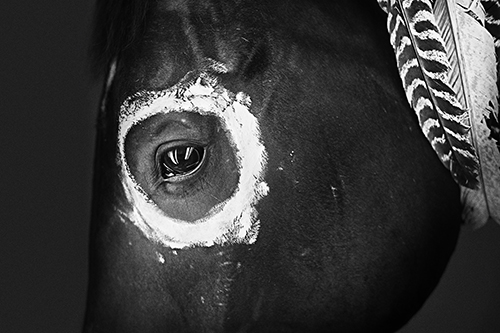 這是一匹黑色的特雷克納德國溫血馬,它的全部特寫放在了這樣一雙楚楚靈動(dòng)、黑曜石一般的眼睛上。透過攝影師 Troy Moth,我們看見了它的溫柔、善良:它的眼神仿佛豆蔻少年,懷著一點(diǎn)點(diǎn)好奇,一點(diǎn)點(diǎn)無畏。這樣的眼神在每一個(gè)看見它的人心中撥起淺淺漣漪,將我們真實(shí)地帶到它跟前,在靜止的時(shí)空里面對(duì)它,面對(duì)自己。 這匹14歲的公馬,名字叫做Kostarico,身高16.3HH,屬于Troy的母親。他們一家人都親切地稱它為Kody。Troy說,Kody是一匹很有競爭力的戰(zhàn)馬,陪同他的母親取得了很多榮譽(yù)。雖然我們沒有看到它的全姿,但它必定具有高大的體型與骨架,天生的優(yōu)雅與平衡,華麗的外形與氣質(zhì),在做馬場(chǎng)馬術(shù)動(dòng)作時(shí)能表現(xiàn)出輕盈的彈性,做出像飄浮的快步。它必定具有有力的后驅(qū),強(qiáng)壯的肌肉與關(guān)節(jié),使它在障礙跳躍上也表現(xiàn)優(yōu)異。 在母親的農(nóng)場(chǎng)時(shí),Troy會(huì)熟捻地跟它互動(dòng),還給它做許多不同文化元素的裝飾,頭上佩戴了印第安文化的羽毛,在眼睛周圍做了圓圈彩繪。這些代表著勇氣、祝福的文化符號(hào),也是Troy對(duì)馬和自然的一種理解。這些元素在他的鏡頭下呈現(xiàn)的是自然的靜謐美麗,傳遞的是純凈澄澈的心靈。 Troy Moth的這幅作品畫面簡潔,風(fēng)格鮮明,以最初的生物形體和傳統(tǒng)的文化符號(hào),展示于觀看者面前。它未攜絲毫主觀意識(shí),也不會(huì)對(duì)觀看者產(chǎn)生壓迫性,反而開放了作品自身在藝術(shù)概念上的臆想空間,能夠使得觀看者不由自主地參與作品更加深層次的建構(gòu)。 文/洪迎迎 編譯/陳海倫 圖/Troy Moth |