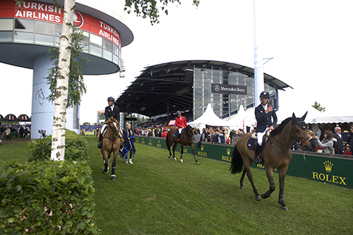 從愛上馬的那一刻,我們就不自覺地隨著馬開始了一場永不停歇的旅行,從中國的蒙古草原那達慕賽馬到法國大西洋海岸邊的障礙世界杯,我們穿越了歐亞大陸;從英國的溫莎馬展到西班牙南部安達盧西亞馬的故鄉(xiāng),我們見證了皇家經(jīng)典的象征;從荷蘭的溫血馬到德國的特雷克納,我們領(lǐng)略了血統(tǒng)間交融的魅力。而亞琛馬術(shù)節(jié)作為運動馬參與的世界最大的馬節(jié)日,一定是這漫漫旅程中必不可缺少的一站,給我們帶來的,不僅僅有美,更有刺激、享受和震撼。 馬術(shù),原來可以這么美 亞琛馬術(shù)節(jié)之所以享譽世界,不僅僅因為這里有匯聚了頂級高手的比賽,更因為這里有不可錯過的馬術(shù)表演。 德國當(dāng)?shù)貢r間5月29日晚上8點30分,“馬與交響樂”演出在德意志銀行體育場正式開始??扇菁{ 5100 名觀眾的體育場內(nèi)座無虛席,兩邊過道和站立觀眾臺上都擠滿了前來觀看演出的人們。天空飄起了細雨,氣溫驟然降低,但是隨著一幕幕精彩的表演和一曲曲熟悉的交響樂,現(xiàn)場觀眾仿佛忘記了天氣帶來的困擾,只沉醉在這場視聽盛宴中。 “馬與交響樂”的活動已經(jīng)連續(xù)辦了十一年,主題雖每年不同,但是卻一樣的精彩。今年的主題是“遍游歐洲”,跟隨著經(jīng)典的音樂,我們從愛沙尼亞開始了神奇之旅,那個被稱為“洗肺圣地”的國度今天仿佛又以精湛的馬術(shù)表演洗滌著我們的靈魂。樂曲聲再次響起,我們瞬間穿越回了古羅馬,金黃的鎧甲,驍勇的戰(zhàn)士;聽,那輛戰(zhàn)車上吹響的是不是前進的號角;看,連萬獸之王“雄獅”亦屈服于他們。一曲天鵝湖又將我們拉到了俄羅斯,十二位芭蕾舞者優(yōu)雅地組成一列,一位一襲白衣,騎著白馬的仙女穿梭其中,只為找尋那只屬于她的“黑天鵝”。 少了西班牙那熱情奔放的弗朗明哥,怎么會是完整的歐洲之旅,沒有 garocha 的助興,怎么體現(xiàn)西班牙馬術(shù)精神里的人馬合一。 一群搖著大裙擺的康康舞女郎讓我們瞬間置身于法國,紅磨坊里那本就已經(jīng)讓人目不暇接的舞蹈因為馬的加入讓人只恨自己不能多長幾只眼睛。 古老的亞琛從來就不是一個因循守舊的地方,當(dāng)前最流行的音樂搭配馬背上高難度的雜技,仿佛在向所有人證明:這,是屬于任何一個時代的運動。無論是怎么樣的高潮迭起,最終都會歸于平淡,經(jīng)典的盛裝舞步無疑是對整場表演最合適的結(jié)尾。在暢游整個歐洲后,我們那激動的心情隨著馬兒那堅定的步子一點點平復(fù)下來,慢慢明白:經(jīng)典,亦是永恒。 整場表演只用“精彩絕倫”形容是遠遠不夠的,也許這就是為什么亞琛馬術(shù)節(jié)吸引著全世界的馬術(shù)愛好者來到這里,因為所有人都想親身體驗?zāi)欠N難以置信的震撼,那種任憑如何華麗的詞藻都難以言語的美。 馬術(shù),原來可以這么好玩 馬術(shù)節(jié)開賽以來,記者不停在尋求幾個問題的答案:亞琛馬術(shù)節(jié)為什么可以歷經(jīng)百年不衰?為什么可以讓全世界人們?yōu)橹偪瘢繛槭裁此牡匚粺o人撼動?之前總感覺這將是不解之迷,但是在觀看過“障礙+馬車組合賽”之后,記者好像有所領(lǐng)悟。 從名字就能看出,這比賽由兩部分組成,先是一名騎手騎馬完成場內(nèi)障礙,然后下馬跳上四輪馬車,馬車出發(fā),完成規(guī)定線路,用時短的隊伍獲勝。 馬術(shù)是優(yōu)雅的運動,即使是最激烈的障礙賽,也很難看到選手踉蹌下馬的囧態(tài)。但是在這場組合賽中,我們看到了,而且不止一次。障礙騎手們?yōu)榱斯?jié)省時間,都在馬兒沒停穩(wěn)的情況下就翻身下馬,拼盡全力奔向已經(jīng)等候在場中間的四輪馬車??吹竭@一幕,我的腦海里就三個字:接地氣。馬車上有三人組成的隊伍,加上騎手四個人,四匹馬,再次出發(fā)。普通的馬術(shù)比賽,現(xiàn)場總是安靜的,觀眾總怕自己的吵鬧聲擾了人,驚了馬。就算再激動,也總要等著比賽完了才會拼命鼓掌??墒钱?dāng)天的比賽全程中觀眾們都在納喊,在鼓掌。這不是比賽,這是一場觀眾、騎手共同參加的好玩的游戲。 這項比賽還有另一個很容易被忽略卻不得不讓人強調(diào)的細節(jié)就是騎手與馬車隊之間的組合是隨機的。他們來自不同國家,他們彼此并不熟識,但是他們依然攜手拼向終點,給全世界的馬術(shù)愛好者帶來視覺享受,帶來不一樣馬術(shù)表演。 原來馬術(shù)賽事還可以這么玩! 馬術(shù),原來可以這么刺激 如果只是坐在電視機或者看臺上看比賽,大概心跳得不會那樣快。當(dāng)記者在本次比賽重頭戲——勞力士大獎賽前隨著線路設(shè)計師羅騰拜格(Frank Rothenberger)在場內(nèi)逐一查看所有障礙,親自用腳步丈量距離,親眼見到那些常常被寫在文章里的雙重障礙、三重障礙、平行障礙、木柵欄障、水障等障礙之后,再觀看比賽的時候,替每一個選手都捏了一把汗,那真的是只有世界上最頂級的選手才能完成的線路啊。 勞力士大獎賽之所以被認為是世界最具挑戰(zhàn)性的項目之一不僅僅是因為這里有世界最出色的障礙設(shè)計師,還與亞琛自身的環(huán)境有著很大的關(guān)系。亞琛的比賽場地面積非常大,而且并非是水平的,地形的高低起伏就意味著選手在短短幾十秒的比賽中還要格外考慮到上坡阻力和下坡控速的問題,并迅速做出反應(yīng),這無疑對選手的綜合能力是一項極大的考