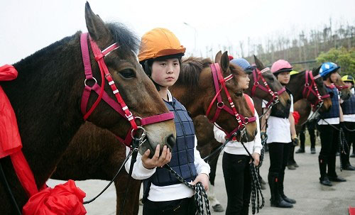 4月12日,5匹賽馬戴著大紅花走進(jìn)了武漢商業(yè)服務(wù)學(xué)院,即將成為該校賽馬專業(yè)學(xué)生的“伴讀”。據(jù)該校馬術(shù)學(xué)院院長夏云健介紹,這5匹賽馬均由武漢一家公司捐贈(zèng),平均年齡在7歲左右,每匹價(jià)值1萬元以上。學(xué)校為此專門建了全國首個(gè)高校練馬場(chǎng),學(xué)生可在這里進(jìn)行養(yǎng)馬、馴馬、遛馬等基礎(chǔ)訓(xùn)練。另外,為了適應(yīng)賽馬產(chǎn)業(yè)的發(fā)展,該校2008年在全國首創(chuàng)了賽馬專業(yè),現(xiàn)有學(xué)生268名。今年,該專業(yè)的首屆學(xué)生即將畢業(yè),可他們還未走出校園就已被國內(nèi)各大賽馬俱樂部一搶而空。此次將賽馬引進(jìn)校園也是為了讓學(xué)生更直觀地接觸這門課程,在學(xué)習(xí)專業(yè)知識(shí)的同時(shí)也增強(qiáng)實(shí)踐能力。 |