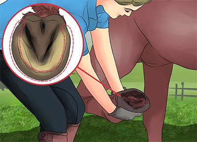 第一步 讓馬安靜下來。在給馬摳蹄之前,要讓馬冷靜。確保不要讓它東搖西晃。最好選擇一個安靜的區(qū)域,因為周圍如果有讓它激動的因素,那么我們很難讓馬保持它的三腿站立。 首先是拴馬,不要將繩子系太緊,因為如果馬受到驚嚇逃跑,太緊的繩子會傷到馬。繩子不要系太短,這會引起馬的不適和恐慌。 第二步 從馬的一側(cè)接近它。當你接近馬的時候,要讓它知道你的好意。輕輕撫摸它的脖子和肩膀,輕聲跟它說話,站在馬的肩旁,身體朝向馬的尾巴。當你計劃站在馬的身旁時,讓你離馬較遠的一側(cè)腿在前,這樣可以獲得更好的平衡,也更方便你的移動。 先從馬的前腿開始,這樣可以幫助你衡量馬的情緒,確定是否可以接近馬更危險的后腿。 第三步 告訴馬。當你穩(wěn)穩(wěn)地站在馬身邊后,手順著馬腿向下摸,然后輕拍馬腿后面,告訴馬你要做什么,讓它有時間擺正自己的身體。一定要確保馬的身子是擺正的,因為如果馬是不平衡的,你很難抬起它的蹄子。 第四步 抬起它的腿。一旦它平衡了,給它時間讓它抬起自己的腳。如果馬沒有在命令后自己抬腳,可以擠壓馬腿球節(jié)上方,這里連接著馬蹄。盡量耐心并輕柔,如果馬沒有反應,再去增加力度。 如果馬還是不抬腿,可以輕輕靠在它的肩上,這有助于幫助馬將重心放在另一側(cè)。盡量給時間讓馬慢慢做。 第五步 支撐馬蹄。一旦你抬起了馬的蹄子,一只手握住馬的蹄子。如果馬試圖放下馬蹄,你需要握住馬的蹄子并將蹄子抬向馬的肘部。用離馬近的手去支撐馬蹄,離馬遠的手來操作。身體可以靠在馬身上,感受馬的動作。 這也是一種給馬信心的方式,讓它知道你在哪里,讓它感覺安全。有些馬不太喜歡被握住骹骨,即蹄子上方、球節(jié)下方的部位。 第六步 釋放你的壓力。如果你感覺到馬兒放松了,就可以釋放握住馬蹄的力量了。不要試圖將馬蹄拉向自己,讓馬蹄待在它想待得地方。 第七步 首先除去馬蹄蹄叉部位的異物。先是用手指或者是刷子,而不是用馬蹄鉤。從馬的趾后向頭部沿著突出的V字形或三角形去清理。馬的蹄叉是敏感部位,有血液供應,且是神經(jīng)末梢,要小心對待。 蹄叉有時候會破裂,用手輕輕拉扯沒有脫落的話,盡量讓它自己脫落。 第八步 用馬蹄鉤清理劑。用馬蹄鉤撬走馬蹄里的小石子,切勿將馬蹄鉤伸到蹄底或蹄中。用馬蹄鉤去掉馬蹄邊緣的污漬、泥土和碎屑。慢慢操作直到你可以看清馬蹄底部的形狀。 最好是從馬的腳跟到腳尖。遠離蹄叉以防馬蹄鉤刺穿蹄叉。 第九步 檢查馬蹄的狀態(tài),馬蹄應該看起來干燥、沒有裂痕、沒有分泌物。如果看到馬蹄有裂痕、有膿液或者有白色、散發(fā)臭味的分泌物,需要立即聯(lián)系獸醫(yī)。 第十步 注意敏感區(qū)域。有些區(qū)域石子會卡在里面,如果不仔細檢查,可能會對馬造成嚴重影響。檢查是否有蹄叉腐疽,特征是馬蹄或者蹄叉上面有白色粉末,用馬蹄鉤刮擦時會脫落。這是一種馬蹄常見病,嚴重可能會致命。 將手放在蹄叉上,如果馬蹄不熱,就沒問題。如果馬蹄溫暖、柔軟則是蹄叉內(nèi)部發(fā)炎的癥狀。 第十一步 檢查馬蹄的形狀是否良好。檢查蹄底,確保蹄子是平的,否則需要修剪。檢查蹄子內(nèi)部是否有淤傷和裂痕。如果馬不愿意放下自己的蹄子,也可能是疼痛和不適的表現(xiàn),需要加以注意。 第十二步 檢查蹄鐵是否松動。嘗試搖晃蹄鐵,確定沒有晃動。如果松動需找釘蹄師更換。 第十三步 涂抹蹄部護理。如果馬蹄極度干燥、過于粗糙,需要給馬蹄來點兒蹄部護理劑。椰子油可以作為蹄部護理劑的一種。 如果蹄部有小的感染,可以擦涂可給馬使用的消炎軟膏。 第十四步 對其他三個蹄子重復相同的操作,切勿直接站在馬的身后,如果它向后踢,你會受傷。盡量每次以相同的順序給馬摳蹄。 圖、文/Wiki How Pippa Elliott 翻譯/門景鈺 |