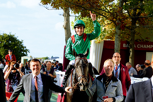 克里斯多夫·蘇銘倫 Christophe Soumillon 克里斯多夫·蘇銘倫(Christophe Soumillon),1981 年在比利時(shí)首都布魯塞爾出生。他曾在 22歲就包攬騎師俱樂部大獎(jiǎng)賽、凱旋門大獎(jiǎng)賽和戴安娜大獎(jiǎng)賽三大桂冠,被美媒稱作“奇才少年(Wizard Kid)”。蘇銘倫是一位真正的國(guó)際騎手,他也曾在香港參賽,贏過香港德比賽,被評(píng)為“最受公眾歡迎騎師”,也被稱作“神奇小子”。 在多維爾賽馬場(chǎng)見到蘇銘倫時(shí),他剛剛?cè)〉昧艘粓?chǎng)比賽的勝利。經(jīng)過賽后馬主合影、電視采訪,以及賽后稱重,這位著名的法國(guó)冠軍騎師終于以便服出現(xiàn)在我們面前。1 米 73 的高個(gè)子讓蘇銘倫看起來不像是一個(gè)典型的騎師,然而正如很多頂級(jí)騎師一樣,他也給人一種歷經(jīng)輸贏,并泰然處之的氣質(zhì)。 蘇銘倫的賽馬生涯起源于上一輩——他的父親Jean-Marc 也是一位速度賽馬騎師,主攻項(xiàng)目是障礙賽馬。但蘇銘倫并沒有與父親選擇相同的方向,而是在速度更多、競(jìng)爭(zhēng)更為激烈的平地速度賽馬中力圖證明自己,闖出一方天地。“因?yàn)槠降厮俣荣愒谫愸R運(yùn)動(dòng)中就像 F1 賽車在賽場(chǎng)領(lǐng)域一樣,是最頂級(jí)的?!碧K銘倫說,他的性格就是要突破自我,挑戰(zhàn)高難度?!岸遥降厮俣软敿?jí)比賽分布在世界各地,我有機(jī)會(huì)到各處參賽?!彼a(bǔ)充道。 法國(guó)是蘇銘倫的福地。從14歲他走進(jìn)速度賽馬領(lǐng)域,成為一名見習(xí)騎師開始,就在法國(guó)著名的尚蒂伊賽馬場(chǎng)訓(xùn)練。通過不斷積累經(jīng)驗(yàn)和成績(jī),2000年,蘇銘倫晉升為一名國(guó)際騎師,獲得去往美國(guó)、馬來西亞、日本和中國(guó)香港等國(guó)家和地區(qū)的參賽資格,但他的“主戰(zhàn)場(chǎng)”仍然在法國(guó)?!白鳛橐粋€(gè)比利時(shí)人,我選擇法國(guó)作為平時(shí)訓(xùn)練和參賽的主場(chǎng),因?yàn)檫@里有很多不同類型的賽道可供選擇,可以與歐洲著名的騎師們同場(chǎng)競(jìng)技。并且我喜歡多維爾這個(gè)地區(qū),這里的環(huán)境就像在度假一樣?!碧K銘倫這樣解釋他對(duì)法國(guó)的偏愛。 從青少年時(shí)期,到如今的“傳奇騎師”,蘇銘倫的戰(zhàn)績(jī)?cè)诜▏?guó)速度賽馬界現(xiàn)役騎師中無出其右—— 1997年,剛剛畢業(yè)于法國(guó)騎師學(xué)校的蘇銘倫在比賽中初嘗勝利果實(shí);次年,他摘得 11 場(chǎng)賽事桂冠,并獲得作為見習(xí)騎師獎(jiǎng)勵(lì)的金馬鐙。在1999年底,蘇銘倫如愿成為一名冠軍見習(xí)騎師。 2000 年,他作為僅次于奧利弗·佩斯利、排位第二的賽馬騎師加入著名馴馬師 André Fabre的戰(zhàn)隊(duì)。此時(shí),蘇銘倫的事業(yè)正節(jié)節(jié)攀升。同年4 月 30 日,他迎來了人生的第 100 次勝利,并在同一日贏得 5 場(chǎng)頭馬,追平法國(guó)賽馬史上的紀(jì)錄。值得一提的是,同樣的戰(zhàn)績(jī)?cè)?2016 年又一次再現(xiàn)。 2001 年,蘇銘倫與阿迦汗馬場(chǎng)簽訂了合作協(xié)議。他繼續(xù)著自己的勝利之路,在 2003 年贏得 1000堅(jiān)尼錦標(biāo)賽和 2000 堅(jiān)尼錦標(biāo)賽。同年,他與名馬“Dalakhani”合作,在騎師俱樂部大獎(jiǎng)賽和凱旋門大賽中一舉奪魁。也是在這一年,他以一賽季207勝首獲 Cravache d'Or(金鞭獎(jiǎng)),該獎(jiǎng)?lì)C發(fā)給當(dāng)年在法國(guó)平地速度賽中獲得冠軍最多的騎師。2005 年,他將紀(jì)錄刷新至 226 勝;2013 年賽季又創(chuàng)下 228 勝。的紀(jì)錄。到目前為止,他已八次獲得 Cravache d'Or。 2017 年賽季,蘇銘倫實(shí)現(xiàn) 306勝,打破了法國(guó)騎師布達(dá)德(Pierre-Charles Boudot)一賽季300勝的歐洲記錄。2018 年,他又在迪拜世界杯拔得頭籌……如今,克里斯托夫 ?蘇銘倫征戰(zhàn)過世界各大洲著名賽事,是成為“Zarkava”, “Dalakhani”,“Almanzor”、 “Cirrus des Aigles” 等眾多歐洲名駒的搭檔。 少有人知的是,這位平地賽馬“王者”還在輕架馬車比賽中兩次奪得冠軍。此外,馬術(shù)運(yùn)動(dòng)中的場(chǎng)地障礙也被蘇銘倫看作“業(yè)余愛好”。馬是他的搭檔,他的戰(zhàn)友,早已隨著呼吸和脈搏融入了生命的韻律之中。 愛馬、適應(yīng)馬的節(jié)奏、有想贏的決心——蘇銘倫告訴我們,成為一名優(yōu)秀的騎師,首先要具備這三點(diǎn)基本條件?!俺蔀橐粋€(gè)好的騎師是訓(xùn)練的結(jié)果,一個(gè)好騎師在賽場(chǎng),不用過多思考策略,因?yàn)閷?duì)馬匹的把控都來自習(xí)慣和經(jīng)驗(yàn)?!?/div> 蘇銘倫同時(shí)結(jié)合自己的個(gè)人經(jīng)歷,給出了對(duì)年青騎師關(guān)于身材管理的誠懇建議:如果在 14 歲時(shí),身材已經(jīng)超過 48 公斤、170 厘米,那么就要慎重考慮選擇騎師作為今后的職業(yè)。他補(bǔ)充說:“很多騎師在職業(yè)生涯中一直都有體重問題,重要的是找到足夠的動(dòng)力,以及要知道如何鼓勵(lì)自己。此外,選擇一個(gè)專業(yè)的醫(yī)生對(duì)你的健康進(jìn)行監(jiān)測(cè)也十分重要?!?/div> 弗拉維安·普拉 FLAVIEN PRAT 在美國(guó)定居十年的法國(guó)賽馬騎師弗拉維安現(xiàn)如今已經(jīng)成為美國(guó)最大賽馬區(qū)之一—加利福尼亞州騎師中的佼佼者。弗拉維安的父親是練馬師,因此他“從小便在馬房里長(zhǎng)大,沒學(xué)會(huì)說話,就走上賽馬場(chǎng)了”。 2017年1月
