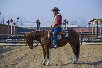 2019年11月2日,“AQHA無疆牧場杯中國馬協(xié)西部馭馬術Reining系列賽”在北京無疆牧場國際馬術俱樂部舉辦。Reining西部馭馬術比賽是眾多西部馬術賽事中的一個代表性項目,這一項目是由北美牛仔在擁擠的牛群中工作時,必須在狹小空間里輾轉騰挪的需要逐漸演變而來。所用馬匹統(tǒng)稱為“Reiner 西部馭馬術馬”,當然,Reining項目最主要的承載者是夸特馬,而做為“Reiner”的夸特馬被形象地比喻為“可以站在一枚硬幣上舞蹈的馬”。這就引出了我們今天的話題,馬的收集中的縱向曲撓。 縱向曲撓 目標:對馬匹頭部和脖頸,包括頸肩銜接處的有效控制。 縱向曲撓促進馬匹獲得對前胸和肩膀肌肉的控制,也讓馬體從頭頂?shù)轿膊康纳暇€圓起來,這樣可以讓后肢更深踏進,馬匹運動姿態(tài)更為完美。同時讓馬匹步伐流暢,腰背變得更加有力從而保證更高效的動力來源。 馬匹動作: 馬匹四蹄站穩(wěn)或者在運動中(運動中進行,可以做為這個訓練的高級版),馬匹鼻子靠近前胸,頭頂?shù)陀诨蛘吲c耆甲高度一致。理想情況下,馬匹腹部收起,從側面查看時,上線稍微向上拱起,馬體圓起來鼻梁垂直于地面,耳朵尖不會因為過分低頭而低于耆甲。 騎手動作: