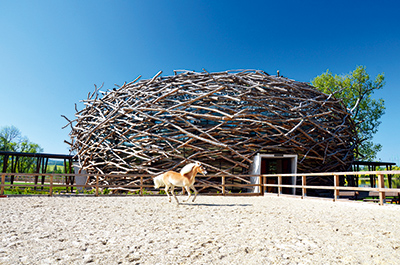 一個能成為旅人們心之向往的遠方,或許是因為那兒的山川美景足以滌蕩心靈,或許是因為一首詩抒發(fā)了太深沉的期許,亦或是一個動人的故事就那么讓你著迷了。它出現(xiàn)在你視野里的時間不一定,一個偶然,就牽動了你的心。 可是一個破舊荒蕪的農(nóng)場,會有什么吸引力? 在捷克共和國的Olbramovice省,距離布拉格向南50公里,有一處農(nóng)場,周圍是典型的山麓地區(qū)景觀,有大片森林、廣闊的草地、濕地和連城網(wǎng)狀的池塘。農(nóng)場建于19世紀,包括一座帶有煙囪的釀酒廠,不過從20世紀80年代末開始它就被閑置下來,農(nóng)場里的建筑物也很快衰敗。唯一留下來的居民就是住在釀酒廠煙囪上的鸛鳥。 2006年SGL Projekt設(shè)計公司應(yīng)邀設(shè)計改造一處農(nóng)場,用于會議、公司展示、舉辦公司活動和休閑娛樂活動。他們看中了這座建于19世紀的農(nóng)場,并因為自1926年起就一直居住在釀酒廠煙囪里的鸛鳥而最終將其買下。 “鸛鳥的鳥巢對我們來說是一種象征,影響了我們對于馬場的設(shè)計概念及該項目的主題設(shè)計。我們是被鸛鳥的忠誠吸引了!有近90代鸛鳥每年從非洲飛回這個農(nóng)場,于是我們盡力設(shè)計好它,也為了讓人們再次回到這里來?!?/div> 這些鳥筑巢的耐力也深深吸引了建筑師們。數(shù)十年來,它們筑的巢不管是形狀還是使用的材料都始終如一,并且一直都在同一個地方,從未想過要變個花樣來。推陳出新一直都是困擾當今建筑師和施工人員的一個難題,而鸛鳥沒有選擇其他地方,也不想標新立異與其他鳥競爭。這成為建筑師們領(lǐng)會建筑精神的一個啟示。這些建筑師們謙遜的接受這些鸛鳥的指引,對這座農(nóng)場進行整體設(shè)計和改造。 舊農(nóng)場由一個幾乎方形的封閉院子和一個豬舍組成。院子里包括兩處住宅、一個釀酒廠、一個谷倉和一個馬廄。貴重的物品都保留了下來,質(zhì)量不佳的建筑都被清除掉了,并在原址上建起了新的。住宅的院子里包括一個接待室、一個酒店、會議大廳、餐廳、游泳池、保齡球室和為貴賓準備的帶有私家花園的房子。 除了住宅院子,設(shè)計師們還專為動物另建了一處新院子。在這部分區(qū)域內(nèi)設(shè)計師按照鸛鳥巢的形狀設(shè)計了一個圓形的馬場。其外部直徑34米,高12.5米。該 建筑 最多的時候用于騎馬,不過在進行簡單的改造之后,就可以臨時變成一個舉辦會議、文娛活動的場所。馬場就安置在馬廄的附近,并與餐館直接相連,支撐結(jié)構(gòu)由膠合木梁制成,包層用的是聚碳酸酯材料,最外層的橡樹枝結(jié)構(gòu)使得建筑別具特色,同時也提 供了遮陰。這些長7米、9米或11米的橡樹枝被牢牢固定在建筑物的最外層上,總計約有200噸重。 在建筑物的頂部中央有一個直徑8米的自然光口,作用是加強內(nèi)部空間自然空氣的流通。自然通風設(shè)計為場館提供了一個良好的環(huán)境氛圍。場館的騎馬廠區(qū)專為馬術(shù)運動而設(shè)計,地面由沙子覆蓋,并裝有毛細灌溉系統(tǒng)。在進行其他活動的時候,可以用膠合板將沙地蓋上。騎馬區(qū)由一圈保護欄圍起,觀眾看臺有大約200人的坐席,在樓上還設(shè)計有貴賓看臺。 鸛鳥巢農(nóng)場于2010年建成,馬場成為這個農(nóng)場區(qū)的地標。農(nóng)場與鸛鳥的故事使得這個地方多了一種浪漫色彩。它曾熱鬧過,后來被舍棄,漫長孤寂的歲月里只有鸛鳥每年如約的陪伴和守護。農(nóng)場像一位風燭殘年的老人,鸛鳥像是它的子孫,也幾乎是愛侶。在我們看來,鸛鳥巢農(nóng)場是幸運的,它雖失去了寧靜,卻煥發(fā)了生機。現(xiàn)在越來越多的人來到這里度假,騎馬。后來,SGL Projekt 設(shè)計公司還為農(nóng)場設(shè)計了一個動物保護中心,最近還建成了一個更大的矩形騎馬場。 文/吳曼 圖/SGL Projekt |