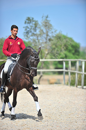 理想情況是當(dāng)盛裝舞步的馬在最高程度的收縮時仍保持放松。因為此時的它動感十足、富有彈性、擺動穩(wěn)定而且賞心悅目。騎手不必有過多推動,也不必特別用力,他只需要安靜地坐著。此時馬的平衡非常好。 放松不僅對馬的肌肉,脛腱和骨骼有益,而且還對馬的內(nèi)心有益。從馬匹訓(xùn)練一開始,放松就是我們要達(dá)到的首要目標(biāo)。但是,當(dāng)騎手開始讓馬收縮,使其更加具有活力且富有表現(xiàn)力時,卻老是發(fā)生錯誤。由于收縮工作比熱身要難得多,于是緊張會悄然而至。 對我來說,關(guān)鍵是絕對確保熱身時馬有最高程度的放松——在騎手要開始進(jìn)行任何收縮工作之前,它已經(jīng)放松且柔軟。如果馬在輕松的工作中還沒有達(dá)到放松和柔軟,那么讓它在更有難度的工作中去達(dá)到放松和柔軟是不可能的。當(dāng)在熱身場觀察大獎賽參賽馬時,你會相當(dāng)肯定地發(fā)現(xiàn)它們中的一些從沒有達(dá)到真正的放松和伸展。因此,當(dāng)騎手讓馬做收縮時,馬的頸部升高并變短,背部緊張。某種程度上馬是表現(xiàn)出了節(jié)奏,但它并沒有通過有活力的后肢和擺動的背部使后軀降低。所有的大獎賽騎手——無論是業(yè)余的還是專業(yè)的騎手——都面臨這種挑戰(zhàn),因此我總是在這方面要下足功夫。我努力試著讓馬在最難的動作中既是有力、活躍有節(jié)奏的,同時又不失去柔軟和擺動的背部。 熱身 不管我騎的是一匹4歲的馬還是一匹大獎賽馬,它們熱身的前15分鐘實質(zhì)上是一樣的。