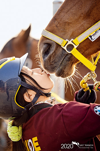 還記得2019年12月31號(hào)那天早上,挺冷的,我穿著厚厚的羽絨服和媽媽坐在地鐵站里刷著大眾點(diǎn)評(píng)?!敖艿哪翀?chǎng)馬術(shù)俱樂(lè)部?離我們八公里!要不去玩一下?”我望著大大的徐家匯地鐵站標(biāo)牌開始回憶起童年對(duì)馬術(shù)的概念…… 帥氣的長(zhǎng)腿騎士們騎著愛駒跨過(guò)一道道的障礙,還有讓馬做出像跳舞一樣的動(dòng)作,如果我也可以……算了算了,不想這些不可能的事情了,我連馬都爬不上去呢……過(guò)了一會(huì)兒我們到了馬場(chǎng)。換裝備、喂胡蘿卜、滿懷激動(dòng)又有點(diǎn)膽怯地摸摸馬,艱難地爬上馬背后就開始15分鐘的體驗(yàn)課了?!捌鹱?、起坐、起坐……”“哎,太累了吧!”我又轉(zhuǎn)頭看看在旁邊騎著大馬帥氣跳障礙的小妹妹。“她上了三百個(gè)鞍時(shí)的課了,當(dāng)然騎這么好啦,你有一天也可以的!”“天吶,300節(jié)課!這得騎了多少年啊……”我下了馬,盯著我剛剛騎乘的“花木蘭”的眼睛看了許久??赡芫褪窃谀且豢?,我和馬結(jié)下了深深的、難以割舍的緣分。 2020年1月1號(hào),我正式開始了我人生中第一節(jié)馬術(shù)課。很累,但是很開心。能和動(dòng)物建立互相信任的感覺真的太奇妙、太美好了!回家后,我和媽媽說(shuō),這是我碰到過(guò)的最喜歡的運(yùn)動(dòng)了。媽媽抬頭看了我一眼笑了笑,說(shuō)“你就是三分鐘熱度,明年的今天你可能都不記得杰的牧場(chǎng)是什么了?!闭f(shuō)來(lái)也是,從小到大琴棋書畫都嘗試過(guò),真的沒有一項(xiàng)能堅(jiān)持超過(guò)一年。但從那時(shí)起,不知道我著了什么魔,騎馬這件事我突然就愛得一發(fā)不可收拾了。從一天一個(gè)鞍時(shí)累得不行,到一天五個(gè)鞍時(shí)咬著牙堅(jiān)持練脫蹬,下了馬以后累得路都走不了,但也要給馬洗完澡再去休息…… 暑假里的每一天,我都是泡在馬場(chǎng)里,抱著胡蘿卜桶在馬房里穿梭,給馬刷毛、洗澡、聊天,甚至就是站在馬房門口看著馬兒吃飯——這也是我干的最樂(lè)此不疲的事情。給教練們當(dāng)小馬工是我最開心的事情了,備馬、卸鞍、刷馬,運(yùn)氣好的時(shí)候還可以幫教練活動(dòng)馬,我也非常珍惜這來(lái)之不易的十來(lái)分鐘。同時(shí),我堅(jiān)信在馬背上的每一秒都不會(huì)浪費(fèi)。開學(xué)以后,繁忙的學(xué)業(yè)壓得我喘不過(guò)氣,每周最開心的時(shí)間莫過(guò)于在馬背上的那幾個(gè)小時(shí)。再煩、再累,坐到馬背上的那一刻,心都會(huì)被重新點(diǎn)亮。 就在我碰到我第一個(gè)瓶頸期——跑步怎么也跑不好的時(shí)候,我碰到了我最為感激的教練——?jiǎng)住Ko予我目前馬術(shù)道路上最大的幫助,他一遍又一遍地耐心告訴我怎么用腿、怎么更好地與馬磨合。我和劉教的關(guān)系不似師徒,更似朋友。第一次穩(wěn)穩(wěn)地跑步、第一次跑地桿、第一次跳30cm的障礙、第一次跳50cm全程、第一次90cm全程……從第一次跳障礙到第一次參加80cm的賽場(chǎng)并獲得季軍,中間只隔了五個(gè)月。這中間一切的一切都和我的教練密不可分。臺(tái)風(fēng)、暴雨、高溫預(yù)警;眼淚、汗水、笑容;摔馬,再拍拍褲子上的沙子爬起來(lái)繼續(xù)上馬;感受到自己又有了一點(diǎn)進(jìn)步,臉上會(huì)出現(xiàn)抑制不住的笑容……失敗乃成功之母,每次摔馬后,我的教練并不會(huì)責(zé)怪我或者馬匹,他會(huì)和我一起討論并總結(jié)摔馬的原因。說(shuō)來(lái)也怪,每次落馬能學(xué)到的東西遠(yuǎn)比平時(shí)訓(xùn)練學(xué)到的東西更能讓我記憶深刻。 第一次外出比賽,是和“伊麗莎白”以及“happy”一起并肩作戰(zhàn)的。它們也是我如今最想感謝的兩匹馬。剛滿五歲的“happy”第一次出來(lái)比賽膽子非常小,一個(gè)小動(dòng)靜就能讓它往前竄兩米,在臨時(shí)馬房里也呆得很不習(xí)慣,讓我很是擔(dān)心,但這讓我有了帶娃出征的感覺。而“伊麗莎白”卻是個(gè)非常有經(jīng)驗(yàn)的老奶奶,一上賽場(chǎng)更是熟能生巧,帶著當(dāng)時(shí)技術(shù)很一般的我0罰分跳完了全程,并獲得了季軍。那一輪的表現(xiàn)并非完美,但現(xiàn)在看也是相當(dāng)出色。自從獲了獎(jiǎng)以后,我徹底飄了,我的教練也看在眼里,但并沒有找我語(yǔ)重心長(zhǎng)地談話,而是說(shuō),我下次比賽之后就會(huì)明白了。當(dāng)時(shí)我沒有把他的話放在眼里,也沒有真正認(rèn)真地準(zhǔn)備下一場(chǎng)比賽。果不其然,在第二桿馬匹逃了兩次之后,我被淘汰了。說(shuō)來(lái)也巧,我剛從馬背上下來(lái),天空就下起了小雨,混合著我的眼淚掉落在了地上。之后我回到了馬場(chǎng),繼續(xù)開始日復(fù)一日的訓(xùn)練,同時(shí)調(diào)整好自己的心態(tài)。隔了兩個(gè)月,再次出去比賽,我和伊麗莎白一起順利地完賽了新的級(jí)別——90cm。 2020年12月,杰的牧場(chǎng)CEO朱人杰先生作為隊(duì)長(zhǎng)創(chuàng)建了馬術(shù)一隊(duì),我很榮幸地加入其中。很開心能夠和其他的小伙伴們以及杰哥購(gòu)置新的大級(jí)別馬匹,一起朝著更高級(jí)別征戰(zhàn)。非常感謝杰哥能創(chuàng)造這個(gè)機(jī)會(huì),讓我們承載著他的夢(mèng)想,傾盡全力讓我們閃耀奪目。也感謝杰的牧場(chǎng)攝影師一木和家駿哥哥,記錄了我們點(diǎn)點(diǎn)滴滴的進(