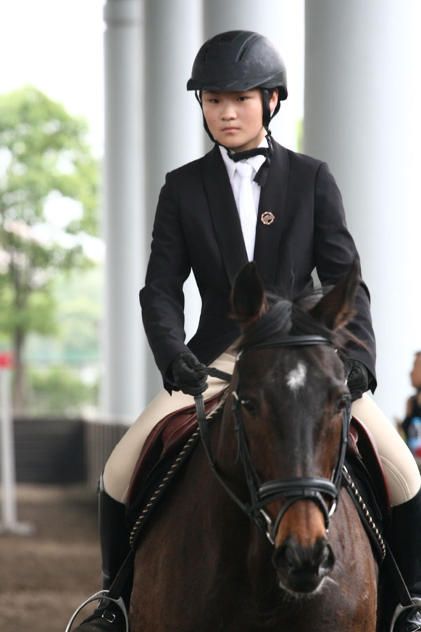 15歲的姑娘,不僅要沖刺中考,還要為2014青奧會全力以赴。10歲開始在馬背上參加比賽的她,說起自己跟馬的關(guān)系,要用“半人馬”這一形象來詮釋。她,就是為馬術(shù)癡迷的小姑娘——束昱穎。 2007年初,年僅10歲的束昱穎,參加了第三屆中國馬友環(huán)官廳水庫150 公里穿越活動,是活動中年齡最小的選手,出色完成了全程。2011年她開始在各種比賽中獲獎。2011 年5 月,上?!榜R協(xié)杯”馬術(shù)公開賽馬場馬術(shù)賽個人第一名。2011 年6 月,上海市馬術(shù)業(yè)余公開賽馬場馬術(shù)賽個人第一名。2011 年11 月,上海市第一屆青少年馬術(shù)錦標(biāo)賽場地障礙賽少年組(30CM-50CM) 個人第一名, 青年組(50cm-80cm) 個人第一名。 好學(xué)生 老騎手 下午6點39 分,束昱穎的父親告訴我,你現(xiàn)在可以采訪她了。昱穎放學(xué)時間是6 點30 分。她很快就接了電話,相互問候之后,我們開始了將近40 分鐘的電話溝通。作為本期的專訪嘉賓,束昱穎不僅是一名出類拔萃的青年少年女性騎手,同是還是一名備戰(zhàn)中考的初三學(xué)生。 中考的壓力不比高考小,問到她怎么處理學(xué)習(xí)與騎馬之間的時間分配問題和相互影響關(guān)系。束昱穎笑了笑說:“其實,兩者沒有沖突的時候。我周一至周五在學(xué)校上課,周末在馬場訓(xùn)練。時間安排得滿滿的,很充實?!薄跋啾韧瑢W(xué),你花在學(xué)習(xí)上的時間少了很多個周末,會不會影響到學(xué)習(xí)成績呢?而且這么繁重的學(xué)習(xí)任務(wù),訓(xùn)練任務(wù)你怎么休息放松?”電話那頭,她很平和地說:“我一直能保持住全班前五名的成績,因為每個課間我都在惡補,使勁學(xué)習(xí)。每當(dāng)學(xué)習(xí)疲倦時我常會閉上眼回想起和賽馬伙伴在一起奔騰,嬉戲的情景,放松一下心情,給頭腦做個SPA?!?/div> 束昱穎在學(xué)校也是個小名人、同學(xué)和老師都知道她是一個非常出色的騎手。平日里,經(jīng)常有同學(xué)圍著她,問她馬術(shù)方面的知識。其中,女孩居多。連她的化學(xué)老師也經(jīng)常請教她關(guān)于騎馬的心得和技巧。我問道:“化學(xué)老師也是馬術(shù)愛好者?”她在電話那頭又笑著說:“是受我的影響。我去問化學(xué)問題的時候,她會問我馬術(shù)問題?!焙髞砹私獾剑幕瘜W(xué)老師也是女性。 斑溪獸 半人馬 很多人認為女性在馬術(shù)運動中有天然的優(yōu)勢,她們的第六感可以毫無障礙地傳遞給馬,雙方在配合上更加默契。問及與馬交流的方式,束昱穎告訴我,跟《阿凡達》潘多拉星球納美人和斑溪獸之間交流一樣??催^電影的人都知道,想要騎一只斑溪獸并不簡單,首先要先贏得它的尊重,只有它接受了你,你才能騎上去。馬雖然性格溫和,但是駕馭起來也跟斑溪獸一樣困難,它需要去接納一個彼此尊重的騎手?!白鳛橐幻T手,必須了解馬的感情。喜歡動物的人都應(yīng)該嘗試一下和馬接觸,馬可以跟你有眼神交流,你可以跟它談心,可以進行情感上的交流,馬是我們最好的朋友?!笔欧f說道。能把電影所要表達的那種彼此尊重、注重精神交流的理念運用在與馬匹的交流中,小姑娘對馬的愛可見一斑。 馬術(shù)運動是唯一一項人和動物共同完成比賽的項目。對于這個問題,束昱穎有自己的看法。在外人看來,馬術(shù)比賽是人和馬的配合;但是,在一個騎手眼里,人和馬是一起的,就像希臘神話中半人馬一樣。問她怎么想到這個形象,她說:“我喜歡《圣斗士》動畫片,發(fā)現(xiàn)射手座是半人馬的樣子,他們上半身是人形,而下半身卻是馬的身驅(qū)。半人馬這個形象最適合我們騎手跟馬之間的關(guān)系,我們是一體的。”騎手和馬之間的關(guān)系,在騎手和觀眾眼中是兩處截然不同的風(fēng)景。很多時候騎手也是觀眾席中的一員,而騎手和不同馬匹的配合又形成不一樣的風(fēng)景,或許也是馬術(shù)運動如此吸引人的原因之一吧。 摔跟頭 好伙伴 2006 年,第一次隨愛好馬術(shù)的父親去馬術(shù)俱樂部參加活動,束昱穎就被這種健碩秀頎的生靈深深打動,纏著父親報名參加了俱樂部的馬術(shù)培訓(xùn)班。問她為什么突然就喜歡上馬了,這么大的動物你不害怕?束昱穎說:“第一次見到馬,我就打心底喜歡上它, 想跟它交流。后來接觸多了,我就喜歡上在馬背馳騁跳躍,讓風(fēng)從耳邊掠過的感覺?!?/div> 既然有第一次駕馭馬的經(jīng)歷,就有第一次從馬背上摔下來的記憶。束昱穎對第一次摔跟頭沒有感到恐懼和難堪,她說摔跟頭是因為她自己與馬交流不到位,這樣反而是一種經(jīng)驗的積累。作為一名騎手沒摔過就不會成長。談到平日里訓(xùn)練,如果馬不配合,她是否有抱怨,對馬的表現(xiàn)不滿意,她說:“馬是沒有問題的,都是騎手的問題?!?/div> 她現(xiàn)在已經(jīng)有八個很“鐵”的伙伴了,每次去馬場訓(xùn)練,昱穎都會帶著糖和胡蘿卜過去。她一一跟這些伙伴打招呼,進行眼神交流,為的是加強彼此間的信任。而且這些工作是一個專業(yè)騎手必備的條件,必須在馬房里跟馬匹進行充分的交流。然后,她說了一句:“連自己的伙伴都不信任,就不要參加什么比賽了。比賽不是騎手一個人的事情,需要跟自己的伙伴商量著來,因為我們是一起的?!眴柕剿钕矚g哪一匹馬,她說實在沒有最喜歡的,都喜歡。 束昱穎經(jīng)常合作的坐騎是一匹有著純正英格蘭血統(tǒng)的賽馬(編號D354),她給它