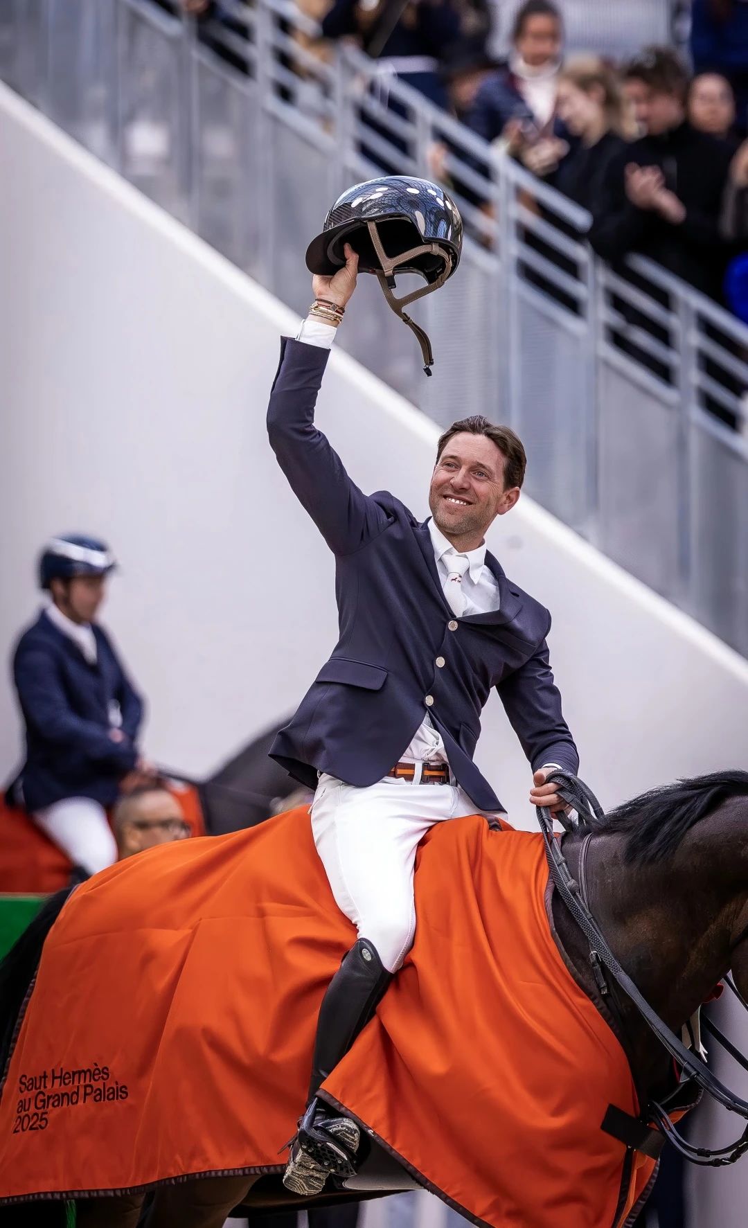當(dāng)?shù)貢r(shí)間3月23日15:30,在巴黎大皇宮玻璃穹頂之下,愛(ài)馬仕合作的法國(guó)騎手西蒙·德萊斯特(Simon Delestre)搭檔“Cayman Jolly Jumper”,斬獲愛(ài)馬仕大獎(jiǎng)賽(Grand Prix Hermès)個(gè)人第三冠??涨暗娜燃用釕?zhàn)績(jī)?yōu)檫@場(chǎng)為期三天的馬術(shù)盛會(huì)畫(huà)上完美句號(hào)。 愛(ài)馬仕合作的法國(guó)騎手西蒙·德萊斯特搭檔“Cayman Jolly Jumper”,斬獲愛(ài)馬仕大獎(jiǎng)賽個(gè)人第三冠 ? Hermès 2025 CSI 5* 級(jí)別的巴黎大獎(jiǎng)賽(Prix de la Ville de Paris)拉開(kāi)最后一個(gè)比賽日的序幕。盧森堡騎手維克多·貝滕多夫(Victor Betendorf)搭檔 “Cancun Torel Z”,以最快速度力壓意大利騎手埃馬努埃萊·高迪亞諾(Emanuele Gaudiano)與阿聯(lián)酋騎手奧馬爾·阿卜杜勒·阿齊茲·阿爾馬祖基(Omar Abdul Aziz Al Marzooqi)。 在面向 25 歲以下騎手設(shè)立的愛(ài)馬仕英才賽(Talents Hermès)團(tuán)體賽中,比利時(shí)隊(duì)表現(xiàn)搶眼,馬蒂厄·蓋里(Mathieu Gue?ry)與 “Evelyne Putters” 憑借出色發(fā)揮一舉奪冠。 “爸爸又贏了!”12歲的露娜在視頻電話中露出燦爛笑容。她的父親——世界排名第12的西蒙·德萊斯特,剛剛成為愛(ài)馬仕大獎(jiǎng)賽史上的首位三冠王。 進(jìn)入決賽輪的西蒙·德萊斯特與搭檔“Cayman Jolly Jumper” ? Hermès 2025 2018年與2019年,他攜愛(ài)駒 “Hermès Ryan” 在巴黎大皇宮兩度摘得桂冠。在那之后,賽事場(chǎng)地暫移至巴黎大皇宮臨時(shí)館舉辦。此次,他搭檔13歲的 “Cayman Jolly Jumper” ,再次交出完美答卷。而就在一周前,他又贏得了本賽季最具挑戰(zhàn)性的賽事之一——荷蘭馬術(shù)大師賽大獎(jiǎng)賽,締造出令人驕傲的連勝戰(zhàn)績(jī)。賽后,現(xiàn)場(chǎng)洋溢著歡樂(lè)的氣氛,那是歡呼聲、擁抱與淚水。 首輪比賽結(jié)束后,共有9位騎手成功挑戰(zhàn)西班牙路線設(shè)計(jì)師圣地亞哥·巴雷拉·烏拉斯雷斯(Santiago Varela Ullastres)打造的障礙路線,他們也許有機(jī)會(huì)登上去年朱利安·安奎廷 (Julien Anquetin)與愛(ài)駒 “Blood Diamond du Pont” 的冠軍寶座。英國(guó)傳奇騎手約翰·惠特克(John Whitaker)之子羅伯特·惠特克(Robert Whitaker)率先出場(chǎng),并長(zhǎng)時(shí)間保持領(lǐng)先,直到愛(ài)馬仕合作騎手西蒙·德萊斯特出戰(zhàn)——他以無(wú)懈可擊的表現(xiàn)刷新成績(jī)。 英國(guó)傳奇騎手約翰·惠特克之子羅伯特·惠特克率先出場(chǎng) ? Hermès 2025 唯一會(huì)對(duì)他成績(jī)構(gòu)成威脅的是同樣來(lái)自法國(guó)的騎手亞歷克斯·費(fèi)雷爾(Alexa Ferrer),她搭檔“Vitalhorse Fleur d'Oz”,領(lǐng)先西蒙·德萊斯特0.49秒,卻因最后一道障礙桿脫落,遺憾跌至第五名。最后出場(chǎng)的比利時(shí)騎手格雷戈里·瓦泰萊(Grégory Wathelet)因罰分無(wú)緣爭(zhēng)冠,最終法國(guó)騎手西蒙·德萊斯特勝出。 這位來(lái)自法國(guó)東北部洛林大區(qū)的43歲老將激動(dòng)地表示:“這種感覺(jué)難以言喻。我甚至還沒(méi)完全反應(yīng)過(guò)來(lái),可能要等到明天才能真正消化。在短短兩周內(nèi)兩次贏得這種級(jí)別的賽事,對(duì)我而言是前所未有的經(jīng)歷。我一直堅(jiān)信 'Cayman' 是一匹傳奇戰(zhàn)駒,今天的大獎(jiǎng)賽再次印證了這一點(diǎn)。他在奧運(yùn)會(huì)前遇到過(guò)一些問(wèn)題,但今天完全恢復(fù)了狀態(tài)。他與眾不同,非常出色。我曾騎過(guò)不少優(yōu)秀的馬,但他確實(shí)獨(dú)一無(wú)二。能夠與這樣的馬合作,是我的幸運(yùn)。和 ‘Hermès Ryan’ 比起來(lái),他的能力更勝一籌。你只需要對(duì)他進(jìn)行精準(zhǔn)掌控,因?yàn)槿绻湃位杂砂l(fā)揮,他就會(huì)如離弦之箭般沖刺?!?/p> 賽后西蒙·德萊斯特十分激動(dòng) ? Hermès 2025 “進(jìn)入決勝輪時(shí),我有兩種選擇:穩(wěn)妥騎行,保第五名,或是冒險(xiǎn)一搏,沖擊冠軍。在轉(zhuǎn)向直立障礙前,我遇到了棘手情況,但 ‘Cayman’ 再次找到了突破口。每當(dāng)我遇到難題,他總能機(jī)智化解?!?/p> “回到巴黎大皇宮參賽感覺(jué)很特別,這里承載著歷史的沉淀。自 2010年首屆賽事以來(lái),我已多次征戰(zhàn)此地,但每次都覺(jué)得很奇妙。接下來(lái),我的目標(biāo)是讓 ‘Cayman’ 保持理想狀態(tài)。他會(huì)有一段時(shí)間的休整,之后我們?cè)贈(zèng)Q定是否征戰(zhàn)歐洲錦標(biāo)賽。我不會(huì)給他施加任何壓力?!?/p> 英國(guó)騎手羅伯特·惠特克(Robert Whitaker)搭檔“Vermento” 出戰(zhàn),收獲亞軍,并極具競(jìng)技精神:“西蒙的速度太快了。我在終點(diǎn)前多跨了一步,但我毫無(wú)遺憾。即便再來(lái)一次,我依然會(huì)選擇同樣的策略。這是我第一次參加 ‘跳躍愛(ài)馬仕’ 馬術(shù)障礙賽,能拿到季軍已經(jīng)很滿意了。” 世界排名第8的奧地利騎手馬克思·庫(kù)那(Max Kühner)也有同感,他搭檔“ElC Julius Caesar”,摘得第三名。 贏得巴黎大獎(jiǎng)賽后,維克多·貝滕多夫說(shuō):“和她并肩作戰(zhàn)時(shí),最需要克制的其實(shí)是我自己?!?? Hermès 2025 周日,盧森堡國(guó)歌率先在巴黎大皇宮奏響。維克多·貝滕多夫(Victor Bettendorf)搭檔14歲的愛(ài)馬 “Cancun Torelz” 斬獲巴黎大獎(jiǎng)賽(障礙高度1.50 米,雙階段賽)冠軍。這位35歲的騎手曾出戰(zhàn)2022年于巴黎大皇宮臨時(shí)館舉行的愛(ài)馬仕大獎(jiǎ