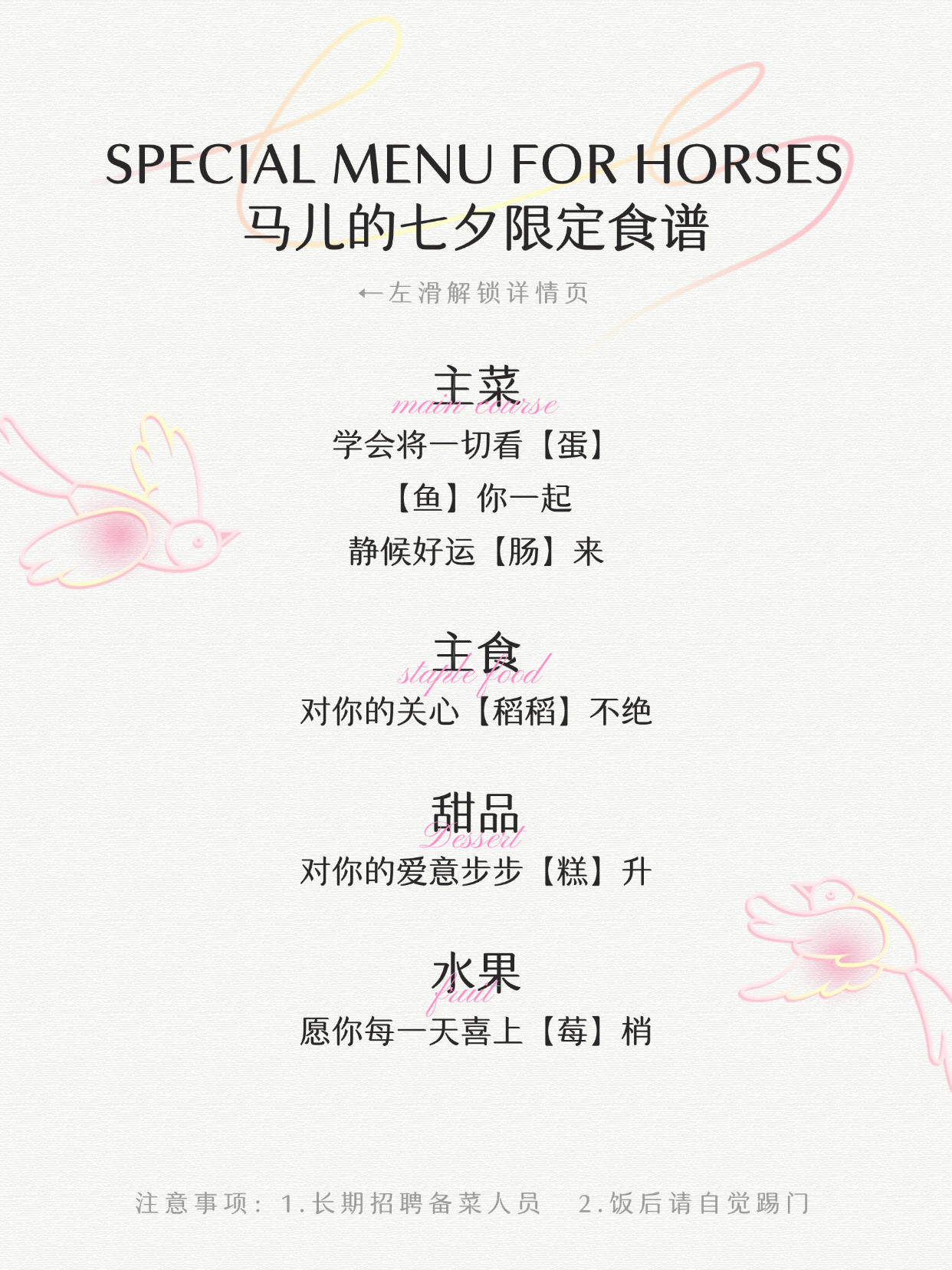 七夕原本是女子乞巧的節(jié)日,寄托著對(duì)美好生活的向往。如今,它也成為表達(dá)愛與陪伴的日子。 對(duì)愛馬的人而言,馬廄里的那匹馬,就是最懂自己心意的“鵲橋伙伴”。那是一種超越節(jié)日的羈絆,是一種生活方式,是只有愛馬人才懂的特殊陪伴。 它們教會(huì)我們無條件的愛 馬是無條件之愛的最佳詮釋。人與馬之間的羈絆超越了語(yǔ)言,是一種默契的理解與陪伴。它們不會(huì)在意我們的外表或缺點(diǎn),只是用最好的自己來回應(yīng),并期待我們也如此。這一年的情人節(jié),讓我們向馬兒學(xué)習(xí),去愛而不帶條件。 它們與我們共享一個(gè)個(gè)小歡喜 在馬廄里,重要的不是盛大的儀式,而是那些細(xì)小的瞬間。無論是清晨草地上的一次飛馳,還是梳理后輕輕的依偎,這些日常點(diǎn)滴才是支撐我們的動(dòng)力。 我們有著超越言語(yǔ)的交流 在人與人關(guān)系中,溝通是理解的基石。而馬更進(jìn)一步,它們能讀懂我們的肢體語(yǔ)言與意圖。與此同時(shí),它們也通過細(xì)微的動(dòng)作與表情傳達(dá)心意。這種無需言語(yǔ)的雙向理解,正是與馬相處的獨(dú)特魅力。 同心則強(qiáng) 生活中總會(huì)遇到障礙,而有伙伴在身邊會(huì)讓我們更有力量去克服。馬告訴我們,當(dāng)我們擁有共同的目標(biāo)并彼此支持時(shí),就會(huì)成為牢不可破的團(tuán)隊(duì)?;蛟S這就是它們給予我們的最大禮物:攜手并肩,我們會(huì)更強(qiáng)大。 信任之路 信任不是生來就有的,而是在日常生活中一點(diǎn)一滴贏得的,馬每天都在提醒我們這一點(diǎn)。當(dāng)我們逐漸贏得它們的信任時(shí),也明白了:在愛情與生活中,每一步都必須以真誠(chéng)與正直為基石。養(yǎng)馬的過程,其實(shí)也是一場(chǎng)修行,慢慢地,我們會(huì)成為更好的自己。 它們教會(huì)我們耐心 在這個(gè)追求即時(shí)滿足的世界里,馬卻要求我們慢下來、學(xué)會(huì)等待。無論是等它們主動(dòng)走近,還是共同攻克新的訓(xùn)練,每一次嘗試都在考驗(yàn)并錘煉我們的耐心。 它們滋養(yǎng)我們的心靈 對(duì)許多人來說,愛馬是一種心靈的滋養(yǎng)。它們給予我們安慰與慰藉,傾聽而不批判,并用同樣的愛來回應(yīng)。人與馬的情感紐帶,能讓靈魂煥然一新,提醒我們?nèi)フ湎钪凶詈?jiǎn)單的快樂。 它們是我們成長(zhǎng)的伙伴 馬是我們馬術(shù)道路上最忠實(shí)的陪伴。它們不僅讓我們成長(zhǎng)為更好的騎手,也讓我們成長(zhǎng)為更好的人。它們傳授的每一課,都是我們個(gè)人發(fā)展的基石,也讓我們?cè)诿鎸?duì)人生考驗(yàn)時(shí)更堅(jiān)韌。 它們培養(yǎng)我們的同理心 當(dāng)馬兒需要我們時(shí),我們總會(huì)第一時(shí)間伸出援手。在這個(gè)過程中,我們也學(xué)會(huì)了體察他者的需求,培養(yǎng)出深厚的同理心。而這種情感智慧,也是任何關(guān)系中不可或缺的基石。 它們?yōu)槲覀儙懑熡?/font> 為馬梳毛的過程,既是它們的享受,也是我們的療愈。輕輕拂去泥土,梳開糾結(jié)的鬃尾,這些看似簡(jiǎn)單的動(dòng)作,就像一場(chǎng)溫柔的按摩,能撫慰彼此的身心。 它們是秘密的守護(hù)者 馬是我們秘密最安靜的守護(hù)者,讓我們能夠展現(xiàn)最脆弱的自己。它們是最好的傾聽者,從不責(zé)怪,也從不評(píng)判。馬能夠?yàn)槲覀兲峁┮粋€(gè)安全的心靈港灣。 它們是家人一般的存在 對(duì)許多人而言,馬廄已成為第二個(gè)家,而馬則是家人一般的存在。今年的情人節(jié),不妨慶祝它們?cè)隈R廄里為我們營(yíng)造的這片避風(fēng)港。陪伴馬兒的時(shí)光,就是我們最好的放松、充電與重啟方式。 七夕的意義在于愛與陪伴 而馬正是最懂這一切的存在 在馬廄、在草場(chǎng) 在每一次心有靈犀的瞬間 馬早已成為我們最懂的知己 我們不妨低頭 給馬一個(gè)溫柔的擁抱 END |