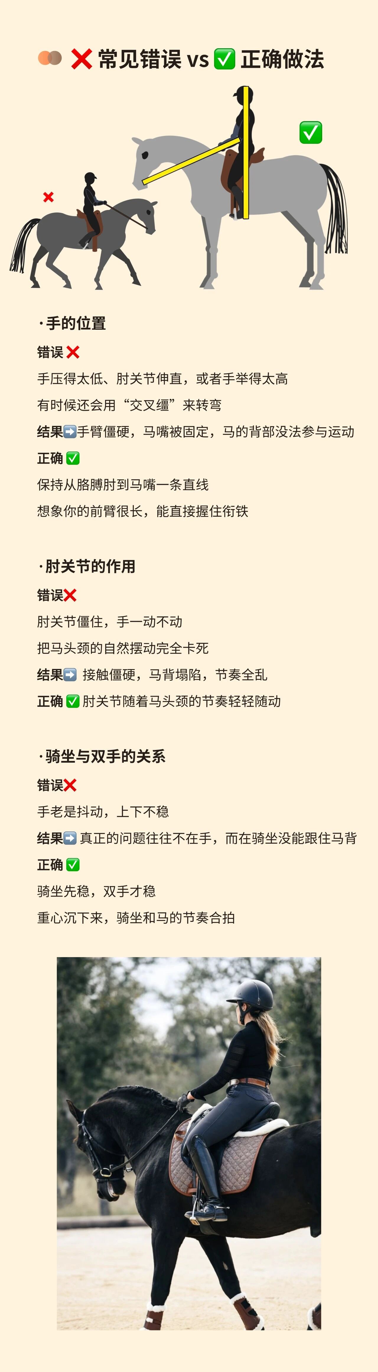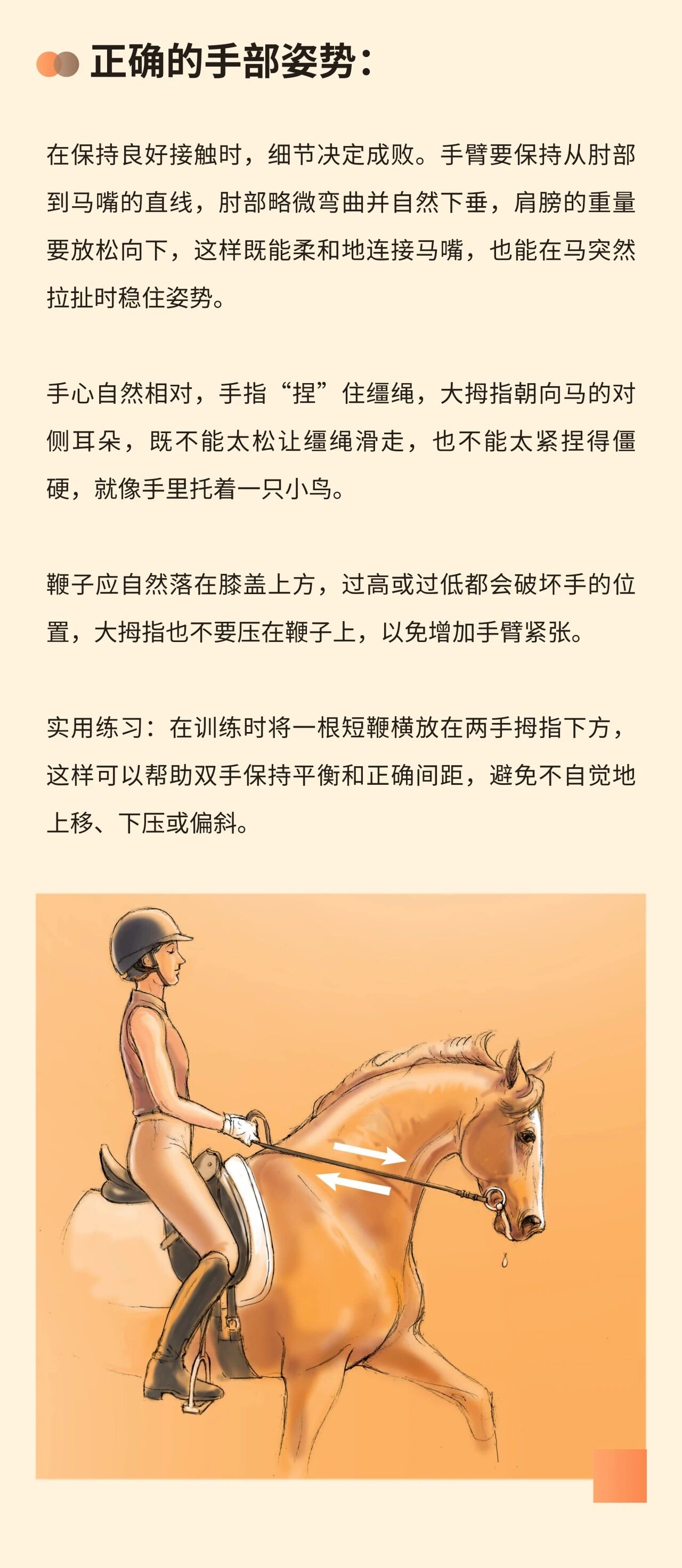 騎馬不是用雙手去控制馬的每一寸,而是通過騎坐、腿和核心去引導(dǎo)與溝通,讓馬自由、舒展。所以,放松雙手,才能找回真正的連接。