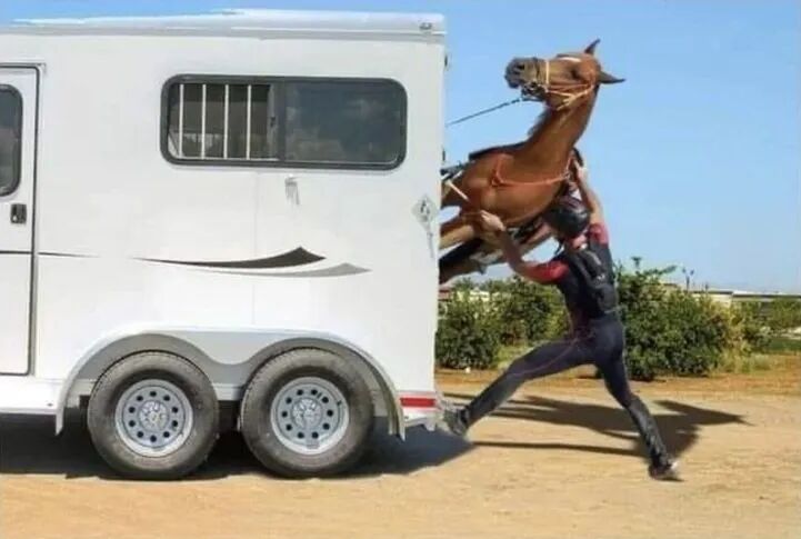 有些馬非常不愿意進入拉馬車,裝車的過程很容易變成一場混亂的“拉鋸戰(zhàn)”,最后要靠前拉后趕、大吵大叫一番才能讓馬上車,而那些馬也會因此被貼上“脾氣不好””固執(zhí)““膽小”的標簽。 圖|那個坡道看起來跟巖漿似的! 但如果有一個辦法,可以讓任何馬愿意進入拉馬車,你會想試試嗎? 圖|一個有點奇怪,但可以在1分鐘之內(nèi)把馬裝上車的辦法 (不是要介紹這個) 首先我們要搞清楚: 馬為什么會怕拉馬車? 作為被捕食者,馬有“戰(zhàn)或逃”反應,它們喜歡呆在大而開放的空間里,因為在那里它們很容易看到捕食者接近,可以快速逃跑。 而你永遠不會看到被捕食者在狹窄的空間里休息,如果捕食者出現(xiàn),它們很容易被困住,走投無路。拉馬車內(nèi)正是這樣一個會讓馬感到被困住的空間。 馬對于任何不存在于馬房或放牧場中的物體都很警惕,也特別討厭會移動和發(fā)出噪音的物體。 這就是為什么馬通常都不喜歡,甚至害怕拉馬車。 站在馬的角度來看,走上拖車可能是一種痛苦,尤其是在馬不明白拖車到底會不會傷害它的時候。 如何將馬帶上拉馬車: 教學開始 適應拉馬車的存在 首先確保你的馬在拉馬車附近感到舒適,如果它感到不舒適、不自在的話,它就不會想進去。 找到一個馬能放松下來的距離,從那里開始,面向拉馬車,一邊讓馬在你身前從一側(cè)走到另一側(cè)(后文統(tǒng)稱為“發(fā)送練習”),一邊慢慢靠近拉馬車。最后,保持在離拉馬車差不多兩米的距離,繼續(xù)讓馬從你身前走。 一定要在拉馬車的三側(cè)(兩側(cè)和后方)都進行發(fā)送練習,因為很多馬會在你牽它上車的過程中,逃到車的側(cè)面,以此來逃避上車。通過這個練習可以讓馬明白,無論它朝哪里走,你都能控制它的方向。 三側(cè)的練習都結(jié)束后,可以檢驗一下成果。請你背靠著拉馬車的后部,不移動雙腳,僅通過牽引繩的動作,讓馬從車的一側(cè)走到另一側(cè)。必要時可用調(diào)教鞭輔助。 Tips 一切表現(xiàn)得越自然越好,就好像你們只是在進行日常訓練,而旁邊剛好有一輛拉馬車。這樣馬就能越快越專注于訓練。 適應坡道 這一步是為了幫助馬適應它走上拖車時聽到的噪音以及它腳下的運動。 如果你跳過這一步,直接讓馬踏上拖車,當它第一次聽到這種聲音并感覺到拖車在它腳下移動時,它會驚慌失措。 在馬的腦海中,當你把它裝上拖車時,你就是在把它帶進一個狹窄、黑暗的洞穴。所以,千萬不要讓上車這件本身已經(jīng)很可怕的事情變得更可怕。 在降下坡道時,如果這匹馬之前對于上車有過不好的經(jīng)歷,那它可能會開始緊張,并懷疑接下來的動作。 這個時候你要做的就是讓它適當走動,讓它將注意力集中到你身上。 隨后,讓馬從一側(cè)踏上坡道,只需要一兩步即可。一旦它成功地邁出了一兩步,就不要再強迫它前進,而是帶它轉(zhuǎn)身離開坡道。 接下來進行多次嘗試,讓它走上坡道,每次都看看是否能讓它多邁一步,再多邁一步。 最后,你希望它能繞著你朝一個方向走一個小圈,就像平時打圈一樣,不過有一部分是在坡道上進行的。保持同一方向,是為了先讓它單側(cè)的大腦適應這項工作。 為了避開坡道,有些馬可能會撞到你身上,甚至企圖把你擠走。 注意,如果你看到你的馬侵入你的空間,請舉起馬鞭來擋住自己,并在必要時將馬趕出你的空間。 如果你不懂得保護自己的空間,而是在它向你走來時給他讓路,那么它就會覺得它可以通過擠開你來避免站上坡道。 對于馬來說,誰先讓步,誰就輸了,不要做讓步的那一方! Tips 一開始,馬可能會沖過坡道,因為那是它下意識的舉動。但多嘗試幾次后,它就會獲得信心,并放慢速度,開始思考。多給它點時間! 每當馬想停下來嗅聞坡道或是用前蹄輕刨坡道時,放手讓它做吧,這是它自己的安檢方式。 它必須150%確認這輛車不是來抓它的,是安全的,否則你無論如何也說服不了它上車。 當馬在坡道上停住,放松休息時,你可以輕輕給它按摩,這樣它會意識到,當他站在坡道上時,它可以休息和放松,而當它走下坡道后,它就要工作了。 |