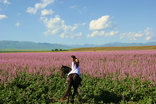 父親十七歲在新疆部隊做弼馬溫,看管軍馬。而我現(xiàn)在湖南也做了個弼馬溫,除了主持工作之外還經營著一家馬術俱樂部:新江國際馬術俱樂部。 新疆于我,是遙遠記憶深處的夢。母親對我說:丹丹,你滿周歲那天,在新疆草原上學會了走路。父親告訴我:丹丹,你還不會走路之前,我就把你放在軍馬的馬背上開始學騎馬了。 可自六歲隨父親轉業(yè)回到湖南,新疆的草原,就已經成為我靈魂里抹不去卻又看不見的夢境!然而,這夢在 2015 年夏天突然被照進現(xiàn)實。 尋夢之旅啟程 7 月初,我受到邀請前往昭蘇主持并解說中國馬會在伊犁天馬節(jié)上舉辦的絲綢之路·中國杯速度賽,驚喜與忙亂中整理行裝,拿著機票登上飛機時,仍然恍若夢中,感覺那么的不真實。 從湘江之南到天山之北,早八點至晚八點十二個小時的輾轉顛簸,我竟一路都未合眼,莫名的興奮。直到在機窗外看到白云下面連綿起伏的祁連雪山、再轉乘小飛機抵達伊寧時才意識到,此刻的我已經切切實實地踏在第二故鄉(xiāng)的土地上,湖南弼馬溫的尋夢之旅已經啟程。 天山是世界七大山系之一,位于地球上最大的一塊陸地,歐亞大陸的腹地。天山東西橫跨中國、哈薩克斯坦、吉爾吉斯斯坦和烏茲別克斯坦四國,全長2500 公里,綿延中國境內 1700 公里。天山山脈把新疆大致分成南疆和北疆,南邊是塔里木盆地,北邊是準噶爾盆地。 天山的托木爾峰、博格達峰和汗騰格里峰終年積雪,云霧繚繞。夏季來臨,雪山融雪孕育的河流在天山腳下蜿蜒,滋潤著廣袤的草場,形成翡翠般的湖泊和險峻的峽谷,哈薩克族、蒙古族的牧民們在這里生活棲息,轉場放牧,全然雪域高原田園牧歌式的場景。 來機場接我的是兩位帥哥,告訴我要開車穿過伊寧河,翻過天山的一座主峰才能抵達昭蘇縣城。于是,沿途的雪山、草甸、湖泊、峽谷,都被我拍進了相機里!一切都是如此的遼闊和純凈,情不自禁一起放聲高歌:咱們新疆好地方吖,天山南北好牧場! 從冬天直接過度到夏季的昭蘇大草原,此時正是綠草如茵,牛羊遍野的最美時節(jié)。雪山近在眼前,云兒觸手可及,馬兒在山坡上自由地吃草,一幅純美的自然畫卷撲面而來。 我們的頭頂一路陽光燦爛,但車窗前的路面上卻濕漉漉的,司機說雨一直在我們的前方下著,這是山神在幫我洗凈旅途的風塵。 昭蘇,這個新疆雨量最為充沛的縣域,也是新疆唯一沒有荒漠的縣域,烏孫古國的遺址,天馬的故鄉(xiāng)?,F(xiàn)在我終于走進這片被上天過分寵愛的土地,去領略它大氣坦蕩的美,渾然天成的美,并不只是靜靜欣賞,卻也可以去觸摸去叨擾。 絲路歡歌天馬情 天馬節(jié)召開的消息早在兩個月前就傳了出去,方圓幾百公里的牧民們都穿著節(jié)日盛裝攜家?guī)Э趶乃拿姘朔节s來,哈薩克族、維吾爾族、蒙古族等各民族的同胞們共聚一場屬于他們的盛大節(jié)日!所以這小小的縣城房源爆滿,遠郊的鄉(xiāng)村氈房也都住滿了前來過節(jié)的人們! 7月12日,2015 新疆伊犁天馬國際旅游節(jié)在昭蘇盛大開幕,天馬文化旅游園人山人海,座無虛席,來自國內外的嘉賓、游客、演職人員近萬人參加了開幕式。在藍天白云、連綿雪山、絢爛花海、無際草原的映襯下,開幕式成了一幅絕美的畫卷,一片歡樂的海洋。 昭蘇是古絲綢之路的北道重鎮(zhèn),絲路上的古驛站。兩千年多來,人們在烏孫山下這片遼闊的草原繁衍生息,創(chuàng)造出絢麗多彩的文化,孕育了淳樸的民族風情,積淀了厚重的歷史記憶,保持了自然與人類的和諧共存。 開幕式主題是“絲路歡歌天馬情”,現(xiàn)場彩綢翻飛,綠裙飛揚,綠衣少女們用靈動的舞姿闡釋著昭蘇的生命之色。兩千多年前,這片綠色大地成為絲綢之路北道要徑。古往今來,綠色滋養(yǎng)昭蘇生靈,凝聚各族人民,這抹綠是絲綢之路的永恒記憶?!安皇菑堯q通西域,安得佳種自西來”。2100 多年前,張騫兩次出使西域,打通了這條聯(lián)接西域與中原文明的商貿文化通道,成就了新疆與祖國內地血肉相連的千古佳話。從此,絡繹不絕的各國商賈通過絲綢之路進行各類商品貿易,使這條綿延萬里的“絲綢之路”不再荒涼,讓文明在此匯聚。 開幕式上,中國馬業(yè)協(xié)會理事長賈幼陵為“天山論馬”高峰論壇永久會址授牌,昭蘇自此成為中國“天山論馬”高峰論壇永久會址。自治區(qū)旅游局黨組成員、紀檢組長陶軍英為夏塔 4A 級景區(qū)授牌。 州黨委書記黃三平和中國馬業(yè)協(xié)會理事長賈幼陵一起敲響開賽銅鑼,中國馬業(yè)協(xié)會一級賽絲綢之路·中國杯速度賽(純血馬組 2000 米)正式開賽,我也開始了正式的主持解說工作。 “絲綢之路 ? 中國杯”共分為兩組,分別是純血馬組和國產馬組。純血馬組參賽馬匹為3歲及以上的純血馬,比賽賽程為 2000米,共有來自法國、澳大利亞、新西蘭、日本、愛爾蘭等多國的11匹馬參加了競技。國產馬組參賽馬匹為 4 歲及以上的國產馬,比賽賽程為5000米,共有來自國內本地45匹參賽馬匹。 經過激烈的角逐,“春城公主”以 2 分 20 秒 89 的成績獲得“絲綢之路·中國杯”純血馬組 2000 米比賽,“凌云先鋒”和“恒信風暴”分別獲得第二名和第三名,成績分別為 2 分 22 秒 06 和 2 分 22 秒 13。 本次昭蘇之行最意外的收獲就是現(xiàn)場近距離觀看了國際叼羊邀請賽!叼羊是一種傳統(tǒng)的馬上游戲,在以哈薩克族為代表的游牧民族中非常受歡迎。