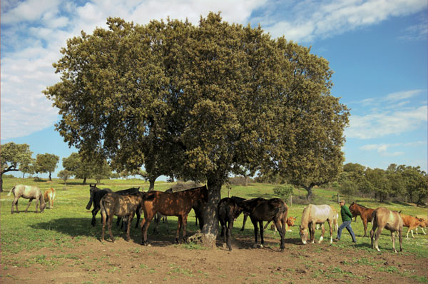 寫(xiě)此文章之時(shí),正是足球世界杯西班牙、荷蘭奪冠前夕,勝負(fù)未定,卻也無(wú)所謂成敗。本來(lái)嘛,西德之戰(zhàn)的結(jié)果已讓人心之所向了。靈活、矯健的西班牙隊(duì)如同西班牙馬般自由徜佯于疆域,象巨浪沖開(kāi)那不可一世的防護(hù),空留對(duì)手的雜沓和零亂。假如你到過(guò)西班牙馬場(chǎng),了解了西班牙馬的前世今生,你一定會(huì)由衷感嘆人性與馬性如此一致的酣暢。 西班牙馬是世界上最古老的馬種之一,在伊比利亞半島,至少在25000年就有伊比利亞馬的存在了。西班牙馬并非熱血馬,但卻比其他馬種更接近熱血馬。公元前1000年希臘人進(jìn)入伊比利亞,伊比利亞的騎兵成為令人敬畏的勁敵,伊比利亞馬被公認(rèn)為是無(wú)敵的戰(zhàn)馬。荷馬就曾在其史詩(shī)《伊利亞特》中敘述過(guò)它。然而,戰(zhàn)馬依舊,入侵的隱痛卻成為古老的遺傳基因,潛藏在西班牙這片大地的軀體里。 拉蒙(Ramon)的馬場(chǎng)位于蒙洛伊小鎮(zhèn),西語(yǔ)拼寫(xiě)為“La ciervina”,由馬德里驅(qū)車約四小時(shí)車程。拉蒙是一個(gè)七十歲的老先生,黑紅的臉膛上架著一副金邊眼鏡,鴨舌帽、休閑服,永遠(yuǎn)的活躍。他的馬場(chǎng)共有六大塊,一千公頃的土地上養(yǎng)育著上百匹馬。馬一歲時(shí)就分開(kāi)公、母馬,由種公馬在前帶領(lǐng),最有權(quán)利的母馬斷后的家庭為單位散養(yǎng)于天然牧場(chǎng)里。為了識(shí)別方便,一歲馬馬尾是禿的,二歲馬馬尾剪成短刷狀。拉蒙每天都會(huì)駕駛豐田車一路顛簸著視察牧場(chǎng),清點(diǎn)馬匹、牛群的數(shù)量,觀察懷孕母馬和分娩情況。當(dāng)他看到遠(yuǎn)處的橡樹(shù)下正休憩的馬群時(shí),便停下車來(lái),徒步走近馬,和馬象朋友般親切的招呼著,絮絮的說(shuō)著話。 為了告訴我們什麼是真正的西班牙馬,拉蒙要通過(guò)五匹馬平走,馬駕車,和長(zhǎng)桿表演來(lái)展現(xiàn)西班牙馬的穩(wěn)定和靈活。 午后的草地上,夕陽(yáng)漸退,天空清朗無(wú)云,拉蒙先用50公分長(zhǎng)的皮繩系住兩匹馬的水勒部位,然后是第三匹、第四匹、第五匹。每拴一匹,他都會(huì)用長(zhǎng)馬鞭驅(qū)策著它們以自己為中心,馬頭平行著跑。于是內(nèi)圈的馬步幅要小,外圈的馬步幅要大,馬的馴服,穩(wěn)定和聰明就顯示出來(lái)了。當(dāng)然,這種訓(xùn)練非一日之功,拉蒙就在拴好第四匹馬的時(shí)候驚擾了它,馬兒掙開(kāi)繩子撒了個(gè)歡就逃遠(yuǎn)了。拉蒙把它找回來(lái),繼續(xù)這個(gè)工作,然而在群馬平跑時(shí),就象突然炸開(kāi)了鍋一樣,所有馬都跳脫開(kāi)了,可拉蒙并沒(méi)急。他和馬工重又找回了馬匹,把它們?cè)俅温?lián)在一起。于是,我們終于看到五匹白馬頭并頭、肩靠肩繞行的美妙畫(huà)面——這般乖憨的草地“五瓣花”。其實(shí),這種五匹相近白馬的選擇還從另一個(gè)方面強(qiáng)有力的說(shuō)明了一個(gè)馬場(chǎng)的繁育能力。拉蒙很開(kāi)心,因?yàn)樗f(shuō)過(guò)要五匹馬并行就要五匹馬,少一匹也不行!接下來(lái),拉蒙還要六匹馬駕車呢,我們都覺(jué)得他“倔”。不過(guò),看看夜色降臨,這個(gè)活動(dòng)只能第二天進(jìn)行了。 馬駕車的場(chǎng)地是一個(gè)小型室內(nèi)馬場(chǎng),整個(gè)駕轅的過(guò)程也十分講究傳統(tǒng)。兩個(gè)馬倌要穿著緊身絲質(zhì)背心和高腳褲,腰后有鍛帶纏繞,有點(diǎn)像斗牛士的風(fēng)格,褲腳上的銀飾掛件也隨風(fēng)晃動(dòng)著極曼妙的情致。馬的打理更要復(fù)雜的多,馬尾梳起扎好,有點(diǎn)象中國(guó)唐馬的樣子。在圓型場(chǎng)地里轉(zhuǎn)彎,是很考驗(yàn)駕車技術(shù)的。人要在車上坐的穩(wěn)坐的直,手法上只能有輕微的動(dòng)作傳給馬匹指令,整個(gè)過(guò)程都很具有風(fēng)度美。當(dāng)然,拉蒙挑戰(zhàn)極限般的六匹馬駕車也成功了,西班牙馬的穩(wěn)定和靈活再次得到了印證。接下來(lái)拉蒙收養(yǎng)長(zhǎng)大的養(yǎng)子Juan luis給我們作長(zhǎng)桿表演。端坐在馬背上的他左臂夾著那條四米的長(zhǎng)桿,右手握韁,在草地上奔跑著驅(qū)趕著馬群的景象,真是蔚為壯觀,luis也象極了古戰(zhàn)場(chǎng)作戰(zhàn)的勇士。 除了一般性用馬,拉蒙還有自己最引以為傲的周身白色、長(zhǎng)發(fā)飄飄為我們中國(guó)人所喜愛(ài)的良駒,這種馬在沙維馬場(chǎng)也有不少。 通常,典型的西班牙馬要身材勻稱,后背平直,耳朵小而尖。 沙維馬場(chǎng)的主人是一個(gè)年青小伙子,他把馬從馬廄牽到戶外圍欄里就手嘴并用吹起呼哨,馬驚厥似的狂奔,到欄桿盡頭又一個(gè)急停,突然轉(zhuǎn)身又一陣狂奔,其身形之矯健,腿、蹄之靈活柔韌,真讓人擔(dān)心它會(huì)扭傷了自己。然而,數(shù)回之后,它不僅毫發(fā)未傷,還引頸長(zhǎng)嘯,真有種氣貫長(zhǎng)河的氣勢(shì)。我們不禁感嘆這夕陽(yáng)下的尤物,草地上的精靈。 至于FINCA ISLA MINIMA馬場(chǎng),卻是古老西班牙莊園風(fēng)格的典范。整個(gè)建筑是伊斯蘭式樣,色調(diào)紅、白、黃為主,呈現(xiàn)出濃烈的對(duì)比。莊園有住宿還能承接宴席。因?yàn)檫@是老派西班牙家族,他們通常送子嗣到英國(guó)讀書(shū),Mauricio先生就是求學(xué)歸來(lái)經(jīng)營(yíng)祖業(yè)的。整個(gè)牧場(chǎng)擁有一百多頭牛和七十多匹馬