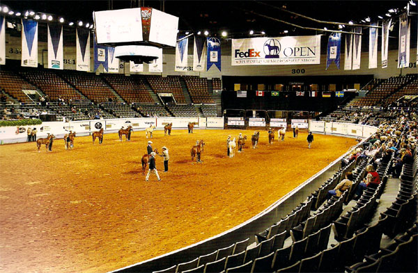 2009年11月,我們行九人應肯塔基州政府的邀請前往美國參觀考察馬業(yè)。此行最重要的目的地是美國中西部的俄荷拉荷馬城.我們要去參觀11月5日開始的夸特馬協(xié)會世界杯。本次比賽是在俄荷拉荷馬城國家博覽館公園舉行的,為期16天。比賽期間,世界上最有靈氣的夸特馬及其教練和馬主人都齊聚在這里??傆嬘?464匹馬參賽,它們來自美國的46個州、加拿大的6個不同省份,同時,巴西、法國、德國、瑞典、英國也有馬匹參加比賽。 本次比賽的內(nèi)容非常豐富,有展示育種水平的馬秀比賽.有展示騎術(shù)的西部騎術(shù)賽(REINING)、截牛(CUTTING)賽以及障礙賽等100多個小項目。同時,在世錦賽上還會有一匹馬榮獲令人艷羨的“超級夸特馬”稱號。能夠獲得這個稱號的馬匹,必須是在美國夸待馬協(xié)會世錦賽的兩個大項中的至少三個小項目中獲得最高分。本次比賽共設(shè)270萬美元的獎金,這可能是一個馬種協(xié)會比賽中設(shè)獎金最為豐厚的賽事。由此可見,夸特馬協(xié)會是世界上最大的馬種協(xié)會不是徒有虛名。 我們到達俄荷拉荷馬城時已是11月18日,比賽已經(jīng)到了最后的階段,留下的是幾千匹馬經(jīng)過大浪淘沙后的精華。這是2歲公馬的選秀,選秀標準是嚴格按照典型夸特馬的特征為參照:強健的肩部和后臀,短而寬的頭部,比例適中的肢蹄,靈活正確的步伐、馬匹安靜程度等等。進入決賽的馬, 一字排開,列隊站立。每一匹都經(jīng)過練馬師的精心打扮,油光的毛色,黑亮的蹄掌,尤其是經(jīng)過化妝處理的眼睛,充滿了靈性。有位老兄手里一直拿著一個類似“摩絲”的東西,在展示場地還不時對馬匹進行補妝。這樣的年度選秀看似娛樂,實際上可以提升育種的水平,明晰夸特馬的標準。 趁著終場休息的時候,我轉(zhuǎn)到緊鄰賽場的馬廄區(qū)域。那些裝飾精美的臨時馬廄讓我頓時眼前一亮,有西部的風格、墨西哥風格還有英式風格等等,無不凸顯馬主的審美取向。門前精心擺放著一排排金馬獎杯是在告訴我們每個馬房的不凡實力。三兩個舒適座椅,一杯冒著熱氣的咖啡,使本來灰禿禿的簡易馬廄瞬間變得如此溫馨。馬秀,不只是秀馬,也是秀生活。馬賽不只是比賽,更是享受和馬在一起的心情。這也算是一種境界了。 這是一匹準備上場的馬,正在接受“梳妝打扮”。優(yōu)雅的“劉?!保h飄的長尾,锃亮的“皮鞋”,配上銀質(zhì)的籠頭。馬的漫不經(jīng)心和三個人的忙前忙后形成強烈的對比。我個人不太喜歡這樣‘人性化”的馬裝扮,讓一個剛勁自由的大塊頭充滿了脂粉氣,但靜下來想想,也許是人忙活的不是賽事,是心情。馬閑適的不是寂寞,是調(diào)教。 像所有大賽一樣,本次的夸特馬年終盛典同樣也是西部馬術(shù)商品的交易平臺,合著老美也講究文化搭臺,經(jīng)濟唱戲。小到各種各樣的西部首飾、馬鞍、不同圖案的汗屜、騎馬服裝、大到西部家具、越野運馬車應有盡有。一圈下來,已經(jīng)是手拎肩扛買了一堆了。這些東西中,我最喜歡這個印第安姐妹用傳統(tǒng)手工制作的馬形銀飾,別具一格。 從來只知道夸特馬做西部騎術(shù)沒有聽說過夸特馬跳障礙,這次算是眼見為實了。夸特障礙馬一般體尺很高,有的接近一米八,外形幾乎和純血差不多。相對于英式馬術(shù)的障礙,夸特馬的障礙比賽路線設(shè)計上要容易多了。攔數(shù)少,高度適中,回轉(zhuǎn)也沒有那么難。我個人感覺,超越障礙在夸特馬的年度盛會上絕不是主流,美國人更喜歡騎著夸特馬截牛、繞桶或者做Reining(美國人稱為西部的盛裝舞步),當然夸特馬跳躍障礙也不是美國人的培育初衷。這段文字要是被我的朋友SHERRY看到了一定不同意。她常常說:“夸特馬什么都能做,EVERYTHING!” 大會最后一天的Reining決賽,堪稱經(jīng)典。世界最高水平西部騎手匯聚于此,展現(xiàn)其精湛的騎術(shù)水平亦是展示西部馬術(shù)的精髓所在。Reining是國際馬術(shù)聯(lián)合會正式接納的比賽項目,它通常被稱呼為西部的盛裝舞步。整個比賽的過程由一系列規(guī)定動作組成:慢跑小圈乘、跑步大圈乘、空中換腿、急速后肢旋轉(zhuǎn)、直線全速急停等。這一切的動作完全靠騎手精準的幾乎不能察覺的輔助完成,并力求馬對人的指令絕對欣然響應,從而展現(xiàn)人的調(diào)訓水平與馬的運動能力和天賦在這樣的比賽中,你永遠看不到強拉硬拽的騎手,瘋狂反抗的馬匹。有的只是瀟灑穩(wěn)健的騎坐,柔軟下垂的韁繩,張弛有度,收放自如。而像這幅照片那樣,短距離全速急停成了西部馬術(shù)的標志性動作。 這是高速急停后馬的狀態(tài),松弛、穩(wěn)定并繼續(xù)等待騎手的指專。據(jù)說像這樣的調(diào)教水平連許多歐洲的障礙騎手都嘆服。許多人認為牛仔是真正的馬語者,他們用精湛的訓馬技術(shù)為自己在英式為中心的國際馬術(shù)舞臺上爭取到了一份尊嚴。 這是專門為大會服務的攝影師,他們用千篇一律的背景,同樣的燈光設(shè)計和十分程式化的擺拍,為每個獲勝者和他們的馬匹拍攝合影。我對他們的攝影方式不感興趣,但是他們職業(yè)拍攝馬匹手段讓我非常好奇。不管在什么情況下他們都能通過人工的手段把馬的注意力吸引到鏡頭這邊,從而拍攝到一個完美的“全家?!?。 說實話.這次我看到的世界夸特馬大會并沒有我想像的人山人海,但是這并不妨礙參與者
