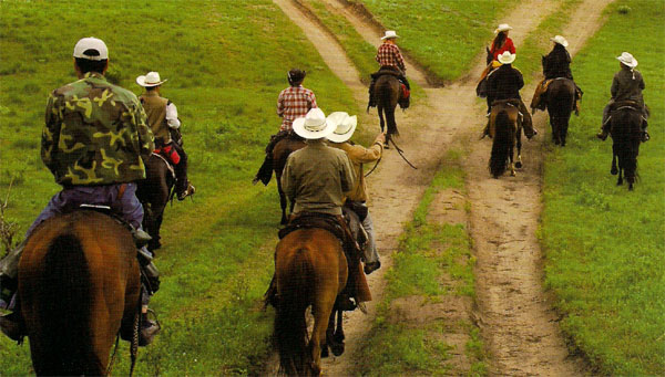 自從看了于哥去年拍的穿越錫林郭勒照片,我就“中毒”了。因?yàn)橐磺卸继懒?。從此我暗下決心,今年一定要爭取去。經(jīng)過多次申請(qǐng)(主要是老大們認(rèn)為我比較嬌氣)終于獲得了批準(zhǔn),實(shí)在是太高興了!六天的行程,其中兩天路上,四天在馬背止,實(shí)在是太酷了! 第一天 六月二十日 多云 終于盼到了出發(fā)的日子,集合時(shí)間居然是早上五點(diǎn),更厲害的是春哥四點(diǎn)半就準(zhǔn)時(shí)到達(dá)了我家樓下,太讓人感動(dòng)了。穿越車輛的安排是非常完美的,21個(gè)人的隊(duì)伍(3女18男)、7輛越野車,富余的空間放鞍子和行李。第一次集合唯一遲到的就是老王哥的車,很是值得批評(píng)一下。吃過早飯開始上路了,大家拿著手臺(tái),一路向北,欣賞著沿途的風(fēng)景,快樂前行。景色漸漸由繁華變得空曠起來,大片大片的綠色漸漸成為主流,經(jīng)過大約7個(gè)小時(shí)的行程,車隊(duì)終于到達(dá)了遼闊、富饒、美麗的錫林郭勒大草原(其蒙語意為丘陵地帶河)。在我們貪婪地呼吸著草原上獨(dú)有的香草氣息的時(shí)候,草原熱情的主人--小江已經(jīng)出現(xiàn)在我們面前,“快走,馬上就到我家了,飯已經(jīng)準(zhǔn)備好了。”激動(dòng)啊十五分鐘后,呈現(xiàn)在我們面前的就是手把肉、血腸、馬奶酒、奶茶、拌雜菜……真是狼吞虎咽加把酒言歡啊! 剛吃過午飯,海盜就發(fā)現(xiàn)車子的輪胎被扎了,換!沒的說!薛巍和大吉普馬上過來幫忙。由于車停在沙地上,千斤頂不能直接用,聰明的他們找來木板,很順利地完成了任務(wù),集體的力量真是太強(qiáng)大了!下午我們?nèi)胱≡诋?dāng)?shù)氐暮廊A酒店,每個(gè)房間都有100平米左右,設(shè)施齊備,非常奢華,主要還是領(lǐng)隊(duì)考慮得周全,為了讓我們?cè)谝院髱滋煊凶銐虻捏w力騎馬,所以今天要先好好休息一番了! 第二天 六月二十一日 晴 令人激動(dòng)的時(shí)刻終于到來了,我們見到了小江夫婦為我們精心準(zhǔn)備的二十多匹蒙古馬。好漂亮啊,它們是草原上真正的精靈,也將是未來四天我們最忠實(shí)的伴侶。于是大家開始仔細(xì)挑選起來,順序依次是女孩子、體力稍差的、技術(shù)稍差的、領(lǐng)隊(duì),薛巍等自然是最后挑選。 備馬。由于沒有能夠幫忙的馬倌,所有的事情都需要我們自己完成,于是善解人意的領(lǐng)隊(duì)讓我們組成一幫一一對(duì)紅,盧彥和花淡、春哥和蝎子、薛巍幫我。多虧了各位大哥的幫助,我們備馬才能如此的順利。這里的馬幾乎都沒有備過西部鞍子,所以難度還是非常大的,好在各位大哥都是經(jīng)驗(yàn)豐富的高手。薛巍剛開始教我如何備馬時(shí)就發(fā)現(xiàn)我的前肚帶沒有拿,當(dāng)時(shí)那叫一個(gè)著急啊,好在細(xì)心的于哥帶了備用的。于哥和老王哥不愧是我們馬隊(duì)的百寶箱,他們帶的很多工具都為我們順利完成穿越建立了不可磨滅的功勞。石哥拿來了“迎奧運(yùn)綠野馬隊(duì)再次穿越錫林河谷”的大條幅,用于上馬前集體拍照留念。馬隊(duì)歡樂祥和,互助團(tuán)結(jié)之氣處處顯現(xiàn)。 上馬。由于備馬的不適應(yīng)還沒有過去,這里的馬都顯得很緊張,作出很多比較夸張的動(dòng)作--緊張轉(zhuǎn)圈的、拒上的、尥蹶子的……我們逐個(gè)格外小心地上馬,這時(shí)突然看見阿洪的坐騎帶著他,箭一樣地向樹林里沖了過去。失控的馬沒有跑幾步,阿洪就摔下來了,穿越第一摔就此產(chǎn)生。好在沒有大礙,原來是后肚帶太緊惹的禍。為防后患,大家開始紛紛調(diào)整。 開拔。行進(jìn)了大約二十分鐘,到達(dá)了第一站錫林河水庫,它位于錫林浩特市境內(nèi)錫林河干流,距市區(qū)約九公里,水面非常開闊,周圍的草木因河水的滋養(yǎng)生長得異常肥美。我們?cè)谒娓浇蛔峙砰_,讓馬兒勻速地進(jìn)行縮短跑。抬頭看那湛藍(lán)的天空上飄著淡淡的白云,心情很是清爽。這時(shí)遠(yuǎn)處傳來“父親曾經(jīng)形容草原的清香,讓他在天涯海角也從不能相忘”的優(yōu)美音樂,起先疑是幻聽,經(jīng)過辨別發(fā)現(xiàn)原來是大吉普帶著現(xiàn)代化的馬背音響。我們幾個(gè)愛聽歌的向他靠攏,和他形影不離。一座敖包出現(xiàn)在遠(yuǎn)處的坡上,大家紛紛順行轉(zhuǎn)圈,祈福平安。這里的草原還是有別于壩上的,山很少,有也幾乎全是平頂?shù)?,所以我們的視野非常開闊,絕對(duì)有巨幕電影的感覺。聽說今天的目的地就是平頂山后,不管那么多了,先往前沖吧。路上的風(fēng)景有了些變化,寬闊的水面被蜿蜒的河道所代替。大自然真是鬼斧神工,兩三米寬的河道,被彎曲成各種形狀,就像一條飄逸的隨風(fēng)起舞的銀色絲帶。 午餐。遠(yuǎn)遠(yuǎn)地望到小江的供給車,停在一個(gè)山坡上,我們幾個(gè)沖了過去,猜得不錯(cuò),原來正是要在那里用餐了。太豐盛了,細(xì)心周到的領(lǐng)隊(duì)們把我們平時(shí)愛吃的東西,都準(zhǔn)備齊了。飯后,大家在地席上小憩,老王哥半倚在一塊巨石旁,做出貴妃醉酒狀,真是太可愛了I 到達(dá)。我們下午以穿越河道為主。不愧是九曲十八彎啊,很多彎都是距離很近需要連續(xù)越過的。蝎子的確可稱為女中豪杰,騎著一匹黑色大馬,一路先行趟過,不斷地為我們?cè)嚦龊拥郎顪\。小馬還是有些吃虧的,經(jīng)常是需要奮力掙扎幾下才能跨上岸邊。天