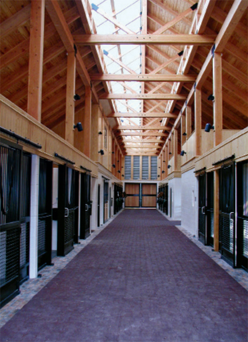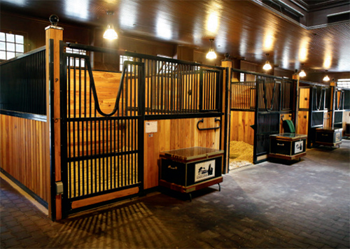 為了馬匹呼吸系統(tǒng)的健康,獸醫(yī)和專業(yè)人員建議:應(yīng)保持馬房的良好通風(fēng)。我們知道馬房的氣味聞起來應(yīng)該有新鮮干草的味道,而且馬匹干凈,而不是滿身馬糞或到處充滿了氨氣的味道。通風(fēng)的目的是為馬匹提供新鮮空氣。從去年12月刊起,我們開始與大家探討“通風(fēng)”的話題,最近幾期在陸續(xù)分享了關(guān)于通風(fēng)常見的疑問:什么是舒適的環(huán)境?通風(fēng)良好的馬房是什么感覺?穿堂風(fēng)不好?馬房里的空氣分布如何?通風(fēng)量應(yīng)該達(dá)到多少 ? 如何實(shí)現(xiàn)通風(fēng)?本期開始將與大家探討“如何使用機(jī)械通風(fēng)系統(tǒng)”以及可以改善馬廄通風(fēng)的 3 種設(shè)計(jì)。 使用機(jī)械通風(fēng)系統(tǒng)如何? 目前常用的通風(fēng)方式有自然通風(fēng)和機(jī)械通風(fēng)。上一期我們介紹了自然通風(fēng)。機(jī)械通風(fēng)系統(tǒng)的工作原理是利用風(fēng)機(jī)的運(yùn)轉(zhuǎn)給空氣一定的正壓強(qiáng),造成建筑物內(nèi)部和外部的風(fēng)壓差,依靠風(fēng)壓實(shí)現(xiàn)空氣流動(dòng)。經(jīng)過良好設(shè)計(jì)的機(jī)械通風(fēng)系統(tǒng),以一定的風(fēng)速進(jìn)入建筑物內(nèi)部,利于新鮮空氣與馬房內(nèi)空氣混合,也利于新鮮空氣的擴(kuò)散。可根據(jù)馬房/場地結(jié)構(gòu),以及實(shí)際使用情況需求,來計(jì)算風(fēng)速。但是對馬房有管理要求:新鮮空氣僅允許從機(jī)械通風(fēng)設(shè)計(jì)的入口進(jìn)入。很多情況下,這意味著當(dāng)風(fēng)機(jī)工作時(shí),馬房的門窗是關(guān)閉的。最終通過這種方式來達(dá)到改善室內(nèi)空氣環(huán)境的目的。 機(jī)械通風(fēng)系統(tǒng)的安裝和維護(hù)費(fèi)用相對于自然通風(fēng)較高,但是更有利于改善空氣質(zhì)量。 下面以一匹馬(體重 900 斤)需要的風(fēng)量為例,在如下不同天氣情況下,風(fēng)量的需求(建議根據(jù)馬房結(jié)構(gòu)以及實(shí)際需求計(jì)算相關(guān)數(shù)值。如下數(shù)值僅供參考): 改善馬廄通風(fēng)的3種方式 在做馬房設(shè)計(jì)時(shí),需要始終謹(jǐn)記通風(fēng)的目的:將新鮮空氣帶給馬匹。因此首要任務(wù)是讓新鮮空氣進(jìn)入馬房,之后是將新鮮空氣分布在馬房各處。出于對馬匹的安全考慮,每個(gè)馬廄間需有隔墻。馬廄隔墻如果設(shè)計(jì)不當(dāng),會限制馬房內(nèi)空氣流通。而開放式的室內(nèi)設(shè)計(jì)大大改善了馬房內(nèi)的空氣流通。 圖示為開放式格柵設(shè)計(jì)。馬廄正面和側(cè)面的上半部分使用格柵設(shè)計(jì)利于空氣流通,下半部分的擋板間也留有間隙,為馬廄提供了非常好的通風(fēng)條件。圖中,馬房門的設(shè)計(jì),也為通風(fēng)做出了貢獻(xiàn)。馬匹住在這種設(shè)計(jì)的馬房,可以看到其他伙伴,這一點(diǎn)對于社交型動(dòng)物非常重要。同時(shí)這種設(shè)計(jì)便于工作人員從各個(gè)角度觀察馬匹。孤立的馬匹會缺乏群體安全感,感到無聊,更容易養(yǎng)成壞習(xí)慣,而住可以滿足馬匹社交需求的馬房里卻很少會有這種情況出現(xiàn)。 關(guān)于馬匹的“社會需要”,可在《馬術(shù)》雜志2011年4月刊《馬術(shù)俱樂部設(shè)計(jì)與建設(shè)系列之一—關(guān)注馬匹行為》中查閱相關(guān)資料。 不可否認(rèn),一些馬匹對于它們的鄰居來說簡直是災(zāi)難。有兩種辦法可以解決這個(gè)難題,一是換馬房(如果可以的話);二是用木板將側(cè)面的格柵封住。木板間可適當(dāng)留有空間,以便于通風(fēng)。 資料搜集與整理/王彥桃、喻晨(天星調(diào)良馬術(shù)) |