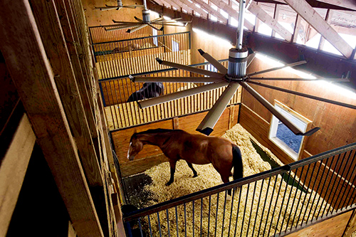 改善馬廄通風(fēng)有3種方式供大家參考。上期我們介紹了開(kāi)放式格柵設(shè)計(jì),馬廄正面和側(cè)面的上半部分使用格柵設(shè)計(jì)利于空氣流通,下半部分的擋板間也可留有間隙,為馬廄提供非常好的通風(fēng)條件。這類設(shè)計(jì)不僅非常符合像馬這種社交型動(dòng)物的特點(diǎn),而且也便于工作人員從各個(gè)角度觀察馬匹。我們建議找有經(jīng)驗(yàn)的設(shè)計(jì)師和建筑師,既懂馬房設(shè)計(jì),又懂通風(fēng),不僅能夠考慮到馬匹福利的保障,對(duì)于項(xiàng)目的長(zhǎng)期規(guī)劃也都是有好處的。 本期將介紹另外2種改善馬廄通風(fēng)的方式 第一種設(shè)計(jì): 無(wú)天花板 這種設(shè)計(jì)更利于空氣流通和分布。如果必須有天花板,天花板需至少3.65米高才能確保通風(fēng)。有天花板的馬房,尤其是低頂馬房,不僅感覺(jué)壓抑,而且光線也比開(kāi)放式設(shè)計(jì)的馬房更加昏暗。 第二種設(shè)計(jì):頂部未設(shè)置干草&墊料存放區(qū) 為了改善馬房空氣質(zhì)量和分布,不建議在馬房頂部設(shè)計(jì)有干草&墊料存放區(qū)。如果別無(wú)選擇,可將干草&墊料存放區(qū)設(shè)計(jì)在過(guò)道頂部,可保障馬廄的通風(fēng)。 另外的建議是不在馬房頂部設(shè)置專門(mén)區(qū)域集中用于存放干草和墊料,而是單獨(dú)存放在獨(dú)立區(qū)域,如草料庫(kù)、墊料存放區(qū)。這么做的目的是減少馬房?jī)?nèi)的灰塵。也不會(huì)再有干草、灰塵和霉從馬房上面掉下來(lái)。因此,有的馬房在翻修時(shí),將草料庫(kù)獨(dú)立設(shè)置,不再位于馬房頂部。 關(guān)于馬廄通風(fēng)的總結(jié) 好的通風(fēng)不僅為馬匹提供了健康的生活環(huán)境,也是好的馬房管理的證明。在現(xiàn)代馬業(yè)設(shè)施的建設(shè)和管理中,最常見(jiàn)的問(wèn)題就是通風(fēng)不足。在此必須要強(qiáng)調(diào)通風(fēng)的功能:給馬匹帶來(lái)新鮮空氣,好的通風(fēng)可以使新鮮空氣進(jìn)入馬房,同時(shí)排出濁氣。 在最初進(jìn)行馬房規(guī)劃時(shí),想要做到好的通風(fēng),建議考慮如下: 1. 在屋檐和屋脊設(shè)置永久通風(fēng)口,以便冬天去濕和夏天散熱。墻面“會(huì)呼吸”,在周邊墻面開(kāi)有分散的空氣入口; 2. 馬房有窗戶或門(mén)以利于暖風(fēng)進(jìn)入; 3. 改善內(nèi)部空氣流通 + 改善的空氣質(zhì)量 + 馬房頂部無(wú)儲(chǔ)草空間。 資料搜集與整理/王彥桃、喻晨(天星調(diào)良馬術(shù)) |
