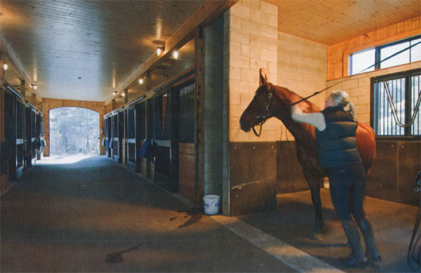 馬房建筑材料要求耐用、易養(yǎng)護(hù)而且外表美觀。馬場所有設(shè)施的選材和整體設(shè)計通常強(qiáng)調(diào)市場價值和馬場主個人愛好。從長遠(yuǎn)來看,優(yōu)質(zhì)的建筑材料比便宜的更經(jīng)濟(jì)。最常見的馬房建筑材料是:木材、混凝土、磚石、金屬,以及高質(zhì)量的合成材料。 磚石Masonry 磚石建筑比構(gòu)架建筑(frame building)成本更高, 但從長遠(yuǎn)來看,它具有壽命長、維護(hù)成本低和耐火的優(yōu)點。磚石結(jié)構(gòu)的主要成本都花費在人工身上, 其成本和木材的幾乎相同。磚石維護(hù)成本低,外表美觀,壽命長, 因此常用在大型馬場建筑中。一種比較流行的做法是建筑外墻使用磚石,內(nèi)部使用木制馬廄。磚是美觀的外部建筑材料,也可以用來鋪設(shè)過道。用鋼筋加固地基和墻壁,用防火漆處理內(nèi)部磚石墻壁,使其表面光滑, 易清潔。在馬廄隔板接近地面的位置使用密封劑,因為密封劑處理后的磚石馬廄隔板易清潔。對于實驗室(laboratories)、產(chǎn)駒室(foalingstalls)和洗馬區(qū)來說,在磚石表面鋪上瓷磚,是比較理想的選擇。為避免馬匹踢壞墻壁,應(yīng)考慮在磚石墻面覆蓋木制壁板(woodwainscoting)來減輕馬匹踢墻時的力?;炷链u多用于建造建筑外墻,但用作馬廄隔板也是可以的。磚和混凝土有很多相似之處,防蟲害,需要現(xiàn)澆的地基(poured foundation)和混凝土路面(concrete slab), 磚和混凝土質(zhì)量較大,能保持恒溫效應(yīng)。像混凝土一樣, 磚結(jié)構(gòu)隔墻不如木材或鋼結(jié)構(gòu)建筑(steelframe construction)容易建造。 金屬Metal 金屬昂貴,是主要的建筑材料,但很大程度減少了人工支出,所以成本要比木材結(jié)構(gòu)建筑低。金屬建筑構(gòu)造簡單,建造時間快。金屬幾乎不需要維護(hù),但如果馬匹經(jīng)常接觸(指馬匹踢、咬建筑材料的行為),使用壽命不會很長。為了使馬匹和金屬墻壁隔離,避免馬匹受傷。在金屬墻壁表面覆蓋一層木板,避免鋒利的邊角傷到馬匹,同時減輕了馬匹踢墻時的力。如果金屬墻壁沒有覆蓋木板,馬匹踢墻壁時容易受傷。也許一些朋友不喜歡“工業(yè)化”設(shè)計風(fēng)格的馬房和場地。因為相對木材或是其他裝飾材料,金屬的聲音讓人心煩,使馬匹焦躁。金屬導(dǎo)熱性好,所以建筑內(nèi)外溫度幾乎相同。金屬框架表面覆蓋其他建筑材料,可以充分利用其他材料的優(yōu)點。另外,金屬耐熱性強(qiáng),除非溫度很高才會融化。 特殊建筑材料Specialty Building Materials 洗馬區(qū)和其他經(jīng)常接觸到水的地方一般使用玻璃纖維增強(qiáng)塑料板(FRP)。玻璃纖維增強(qiáng)塑料板比起滲透性的木材和容易損壞的金屬板材,更結(jié)實、防水,適合做洗馬區(qū)墻壁建筑材料。用玻璃纖維,丙烯酸或是其他材料等制成的百葉窗,安裝在側(cè)墻偏上的位置,便于馬房和室內(nèi)館的自然采光和通風(fēng)。 表面維護(hù)包括油漆和涂層。通常在金屬表面,如馬廄格柵上使用粉末材料粉刷,用以增加其耐久性。在木材表面粉刷防火漆或其他實用的材料。事實上,發(fā)生火災(zāi)時,可燃的密封劑容易爆炸。淺色材料使馬房更明亮,同時反射太陽的輻射。 |
