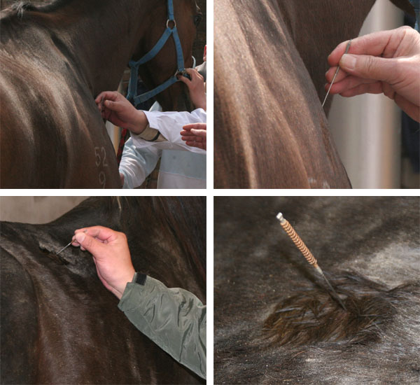 時至今日,馬術運動已經慢慢融入我們的生活,作為一項貴族運動被大家熟知和認知。馬匹奮斗不止自強不息的精神帶給我們人類,影響著人類的發(fā)展,同樣人類也有著一成不變的愛心、熱心照顧著馬匹的健康成長,繁育著一代又一代的良馬,奠定馬的豐富文化底蘊。我國傳統(tǒng)的醫(yī)療保?。ㄈ玑?灸)更是功不可沒,傳承至今,如今我們要做的不只是單一醫(yī)療、保健,還要作為一種學術延傳后代,弘揚國內外。 針療簡介 在中醫(yī)療法中針療,對運動馬匹有著明顯的效果,同時需要看接受馬匹對針的感受能力,反應能力,體制好的賽馬效果更為明顯,正所謂“用之有道,取之有方”。通常臨床針法有白針,火針,電針,水針。不同的癥狀施以不同的針療法,像關節(jié)處不宜用電針,蹄關節(jié)以下多用血針,球節(jié)以下只能皮下注射,但共同的要求是手術之前將馬匹妥善保定,需要診療的部位一定要用酒精棉球消毒,每項手術都要嚴謹。眾所周知,“尺有所短,寸有所長”一體化的療法,至善至美,比如說,對突然腰跨閃傷的馬匹從尾根無毛的尾本穴, 正中稍偏,針刺出血,扎此處出血更好,不出血也有效,同時也可以用百會穴,尾根穴 尾尖穴配合治療,由此可見,關于穴位的配合也是治療的關鍵。再比如搶風穴,位于馬前肢外側,間關節(jié)斜后下方,凹陷正中處,用圓利針或火針直刺3-4cm,毫針8-10cm處,對閃傷夾氣,前肢麻木,風濕等癥有很好的療效。針療不僅僅要求術者對針的正確使用和操作,同時要精通馬匹的穴位。 操作及應急 為確保馬匹和術者的安全,以及保證針療的順利進行,首先是對馬進行適當?shù)谋6?,將其保定在四柱欄或六柱欄再進行手術,施針前選擇適當?shù)尼樉卟z查有無生銹、帶鉤、針柄松動或彎折現(xiàn)象,有上述情況禁止使用。消毒很必要:一般用75%酒精消毒,必要時可用蒸氣和煮沸消毒,當然對術者手指和即將針術剪毛后的穴位用酒精,碘酒涂擦,待干后施針。通常對運動馬匹的骨胯閃傷,后肢風濕,腰胯風濕用的火針療法,就有著代表性的操作技能,選擇針具,檢查,消毒,擦干后,用棉花將針尖及針體包纏成棗狀,長度由針刺深度決定,一般略長于針刺深度,占針節(jié)的三分之二,棉球的直徑約1--1.5cm,要求棉花內松外緊,前端捋尖,以便于點燃,后端收緊,但棉花和針柄之間留一定的空隙,就可在選定的穴位消毒后,浸入石蠟油中點燃,針尖向下并不斷轉動,等燒完后用鑷子刮脫收縮變黑的棉球,迅速刺入,停留15分鐘,為了促使局部組織發(fā)生較深的灼傷,在一定的時間內保持對穴位的持續(xù)刺激,在起針時將針體輕輕捻轉,一只手按壓穴位皮膚,另一只手將針體拔出,術后護理也很重要,為防止感染,將針孔消毒,用藥膏,膠布封閉。從此操作過程看要求術者要具備有準確定位穴位、角度、深度、進針的緩急、留針的尺寸、 行針的方法針刺的強度、退針的指法。手術過程中穴位的選取要取決于獸醫(yī)的手感,用手觸摸時,要觀看馬匹有沒有壓疼,是不是有小結節(jié),腫塊等。在施針的過程當中可能會出現(xiàn)一些意外的情況,一旦發(fā)生切記“冷靜”并及時采取措施:如馬匹騷動不安或肌肉收縮引起的彎針,火針后針孔化膿等。所以對于術者要有應急的措施,以不變應萬變,對于彎針,術者不要用力拔針,待馬匹安靜后,輕輕捻轉針體,按順時針方向緩緩拔出;如果火針后針孔有化膿,應清潔針孔,排除濃汁,再用碘酒。必要時需切開排膿。經過多年的針刺療法,總結出寶貴臨床經驗,為今后運動馬匹的傷病作出更準確的診療法。 用途與療效 針療在臨床應用中對運動馬匹有著獨特之處,如肩膊閃傷,使用針療方法療效更佳顯著,該法除有針刺作用外還有電流的理化治療作用。同一病癥可以有不同的針療方法,但是相同的針療也要具備不同的場合才可以使用,比如說風濕癥可以用電針療法,也可以用火針療法,可是火針療法在北方使用的更多些,在南方只有冬季和春季多用些。同樣水針療法是針和藥物相結合的新法,在穴位痛點或肌肉起止點,注射起到雙重的作用,而且此法用藥量小,對肌肉注射1/5—1/3就可以看到明顯的療效,此法對風濕癥,神經麻痹等多種常見病和多發(fā)病癥有顯而易見的成效。因此,有著治病廣泛、療效迅速、操作安全、簡便易學、便于推廣等特點的針療,今后必將得到國內外業(yè)內人士的重視。 文/趙建強,圖/李勇鋼 |