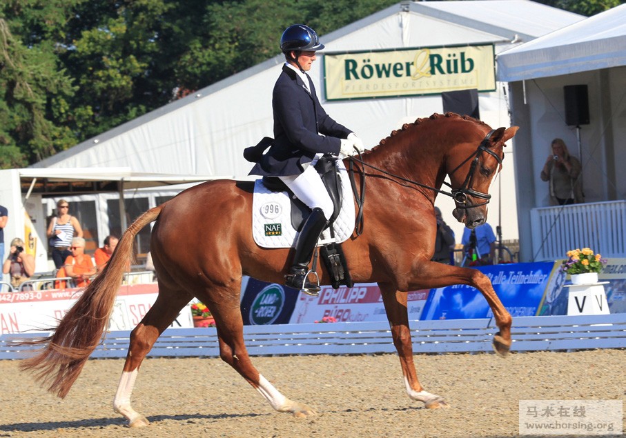 每年8 月份,位于德國(guó)北部的小城費(fèi)爾登都會(huì)成為5-6 歲年輕舞步馬世界錦標(biāo)賽的舉辦地。這座城市同時(shí)也是漢諾威馬種協(xié)會(huì)的中心。眾所周知,該協(xié)會(huì)是全世界障礙和舞步運(yùn)動(dòng)馬最大的溫血馬協(xié)會(huì)之一,正因?yàn)槿绱耍c其說在費(fèi)爾登上演的是一場(chǎng)場(chǎng)賽事,還不如說它是一場(chǎng)綜合性的國(guó)際舞步和障礙馬術(shù)節(jié)。 一般在國(guó)際盛裝舞步比賽中,騎手們都會(huì)競(jìng)相角逐大獎(jiǎng)賽(第一次資格賽)、特別大獎(jiǎng)賽(第二次資格賽)、自由演繹大獎(jiǎng)賽(個(gè)人決賽且有音樂伴奏)這三個(gè)項(xiàng)目?!癗ürnberger Burg Pokal”是費(fèi)爾登的一種比賽,由7-9歲的馬匹參賽,是僅次于大獎(jiǎng)賽級(jí)別的一個(gè)比賽,全年各種馬展和馬術(shù)活動(dòng)都會(huì)舉辦此比賽。通常,這一系列賽事的年度總決賽都會(huì)在每年12 月的法蘭克福馬術(shù)節(jié)當(dāng)中進(jìn)行,而最具潛力攬獲大獎(jiǎng)賽冠軍的馬匹也將在那里問世。 另外,馬術(shù)賽場(chǎng)還將舉辦障礙賽事,除了國(guó)際3 星級(jí)150cm 級(jí)別的比賽,也有為7-8 歲年輕馬準(zhǔn)備的135-145cm 級(jí)別的比賽,還有為4-6 歲馬匹打造的“漢諾威場(chǎng)地障礙錦標(biāo)賽”。其余,費(fèi)爾登馬術(shù)節(jié)還舉辦“母馬秀”,展示2-3 歲用于繁育的漢諾威母馬的慢步、快步和自由跳越。 當(dāng)然,該馬術(shù)節(jié)的最大看點(diǎn)莫屬于年輕舞步馬的世界錦標(biāo)賽了。從全世界四面八方涌來的騎手經(jīng)過長(zhǎng)途跋涉來到費(fèi)爾登,迫不及待地要將自己最優(yōu)秀的5-6 歲的坐騎展現(xiàn)給世人。比如說Totilas,這匹在國(guó)際舞步大獎(jiǎng)賽上最閃耀的明星,曾經(jīng)在費(fèi)爾登的馬節(jié)上屢次問鼎桂冠,它競(jìng)價(jià)高達(dá)1 千萬歐元,是歷史上最昂貴的舞步馬。在費(fèi)爾登,所有優(yōu)秀的舞步馬在名為“Dressurpferdeprüfungen”的比賽中展開較量,裁判的任務(wù)是從中挑選出適合更高級(jí)別舞步比賽的潛力馬。 “Dressurpferdeprüfungen”比賽 在這項(xiàng)比賽中,4-6 歲的馬應(yīng)該能輕松地得到裁判的認(rèn)可并繼續(xù)從事舞步領(lǐng)域的工作。比賽的測(cè)試項(xiàng)目都是為這一年齡段的馬匹量身定制的,馬也將通過這些測(cè)試項(xiàng)目集中展示它們的才能,以及從側(cè)面展現(xiàn)出騎手和調(diào)馬師所付出的教育。對(duì)于4 歲的馬,裁判將只給出一個(gè)印象分;針對(duì)5-6 歲的馬,裁判將按照5 項(xiàng)評(píng)分標(biāo)準(zhǔn)進(jìn)行打分,即慢步、快步、跑步、總體印象和騎乘性。此外,每個(gè)參賽者都能得到裁判的點(diǎn)評(píng)。而且,不同于更高級(jí)別的舞步比賽,費(fèi)爾登的參賽馬有機(jī)會(huì)在賽前熟悉比賽場(chǎng)地,這樣能鼓勵(lì)馬匹更加放松地去展示自己。 裁判最看重的三個(gè)評(píng)判要點(diǎn): 1. 馬匹慢步、快步、跑步的三個(gè)步伐是否適合更高級(jí)別的舞步比賽。 2. 馬匹是否受到了成為舞步馬所需的正確的教育和訓(xùn)練。 3. 馬匹是否具備成為舞步馬的優(yōu)秀素質(zhì)。 判斷馬匹是否具有這樣的素質(zhì)是有一定難度的,因?yàn)轳R所能展現(xiàn)出來的能力是會(huì)受到諸如自身健康狀況、騎手、調(diào)馬師等各方面因素影響的,所以“Dressurpferdeprüfungen”比賽的裁判必須做出謹(jǐn)慎小心的評(píng)判。 關(guān)于裁判的5 項(xiàng)評(píng)分標(biāo)準(zhǔn): 慢步:慢步最關(guān)鍵的要領(lǐng)是清晰的節(jié)奏,馬匹一定要保持良好的平衡且動(dòng)作要富有力度。 快步:馬匹動(dòng)作的靈活性、清晰的節(jié)奏、十足的后驅(qū)動(dòng)力都將作為快步的考察要點(diǎn)。 跑步:跑步時(shí)馬匹后驅(qū)和飛節(jié)應(yīng)該富有推進(jìn)力和良好的平衡感。 騎乘性:當(dāng)然,如果選手在測(cè)試中出現(xiàn)的錯(cuò)誤較少,就有機(jī)會(huì)得到很好的成績(jī)。其實(shí),比賽最初犯過的一些錯(cuò)誤并不會(huì)對(duì)最終的成績(jī)產(chǎn)生太壞的影響。 綜合印象:馬匹應(yīng)該是在輕松的狀態(tài)下參賽的,馬的動(dòng)作應(yīng)該是自然的,騎手和馬匹應(yīng)該是在一種和諧的狀態(tài)下進(jìn)行展示。 給“Dressurpferdeprüfungen”比賽評(píng)分相比其他普通的舞步比賽更為艱難,因?yàn)榇蚍值臉?biāo)準(zhǔn)不是依據(jù)騎手和馬匹失誤的次數(shù),而是評(píng)判馬匹的潛力和未來運(yùn)動(dòng)的能力。 文、圖/Philipp Baumgart 編譯/趙穎 |
