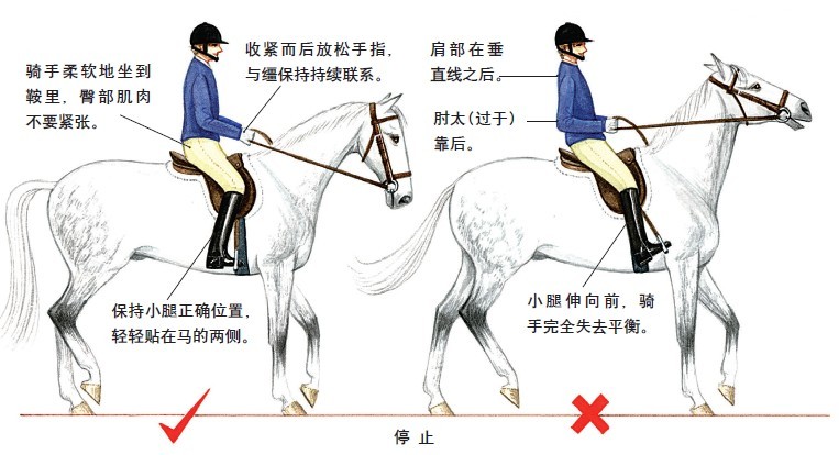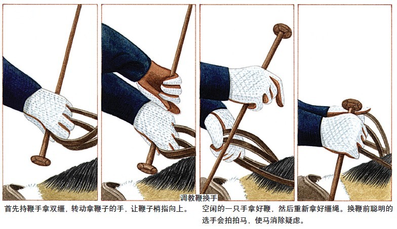 身體的重量 初學(xué)者特別應(yīng)注意坐在鞍子中間,平均分配體重。一旦扭曲畸形習(xí)慣養(yǎng)成是很難改正的。 扭曲習(xí)慣的騎手也會使馬變得扭曲,因為馬總是處于騎手重心之下并朝著重心方向前進。 坐姿不正的騎手可通過不一樣長的蹬帶看出。事實上,是很可能由于騎手滑向左側(cè)或右側(cè),就會把身體更多的重量放到相應(yīng)的腳蹬上。 轉(zhuǎn)彎和圈乘的練習(xí)中,當(dāng)馬換方向時,普遍的錯誤是騎手會滑向鞍子外側(cè)。騎手內(nèi)側(cè)髖關(guān)節(jié)垮掉重量放到外側(cè)腳蹬。向內(nèi)側(cè)倒也是錯誤的。 總是偏向一側(cè)的騎手,他跳障礙時,馬匹通常是扭曲的。當(dāng)馬騰空時,騎手偏向右側(cè)馬匹就會向右轉(zhuǎn)。這一點騎手可以加以利用。 必要時好的騎手會用重心給馬一個微妙的影響。特別是在高水平的訓(xùn)練或比賽時,對馬的影響會更大。選手使用重心時,會輕輕向前推動一側(cè)或兩側(cè)髖關(guān)節(jié)。 當(dāng)騎手已經(jīng)養(yǎng)成扭曲畸形的壞習(xí)慣,首先要求他的坐姿兩側(cè)均平穩(wěn)正直,而只考慮重心輔助。 長期畸形的騎手,不僅對自己本身的能力與輔助運用有壞的影響,在這樣使用輔助時也會使馬偏于一側(cè),讓馬僵硬。 騎手的聲音 訓(xùn)練馬匹的過程中,人類的聲音扮演著重要的角色。 自從馬匹與人類相處以來,它就學(xué)會理解人類各種各樣的聲音語調(diào)。這些聲音與喂養(yǎng)時間、愉快、責(zé)備等緊密相連。一般情況下,當(dāng)叫馬匹時它知道過來。對指令也有反應(yīng),例如“立定站好”。 當(dāng)馬匹長大些,就要進行打圈訓(xùn)練,它要學(xué)習(xí)不同的要求指令,例如:“慢步”、“快步”、“跑步”、“立定”、“穩(wěn)定”和“很好”。一旦口頭要求變成一系列的身體指令時,我們稱之為“輔助”。但是相當(dāng)長時間那些口頭命令就成為騎手的輔助,這些輔助可以讓馬更明白我們的要求。 即使訓(xùn)練到最高水平,同樣要用到聲音。聲音能夠讓馬愉悅、安靜、緩和、受到鼓舞或是責(zé)備,所有這些取決于騎手如何使用聲音輔助。 馬匹會很快獲悉騎手的感覺,對緊張或攻擊性詞語做出相應(yīng)的反應(yīng)。 騎手的驚恐或尖叫會使馬更緊張。他也可以用溫柔的話語讓馬很快地安靜下來。 要讓馬匹知道它做得很好,這一點至關(guān)重要。騎手的一句:“很好”會讓馬高興并受到鼓勵。責(zé)備的喉音則表明不高興。 要注意用相同的話語,相同的語調(diào),馬匹會對相應(yīng)的聲音語調(diào)有反應(yīng)。 初學(xué)騎手的基本輔助 初學(xué)者應(yīng)知道的第一件事就是如何讓馬匹停止。 騎手的身體是正直的,既不能前傾,也不向后仰。小腿輕輕地靠到馬匹兩側(cè),不應(yīng)夾緊或僵硬。保持與韁的聯(lián)系:輕握住手指,指尖觸到手掌,可控制韁繩的松緊。在馬匹完全明白你的指令之前,騎手可重復(fù)做收放手指的動作。一句溫柔的“哦”“?!倍伎梢詭椭R匹理解指令。記住,每位騎手給馬輔助的方式都略有不同,必須讓馬調(diào)整并適應(yīng)這輕微的變化。 從立定到慢步或快步:騎手與韁保持穩(wěn)定的聯(lián)系,并在小腿的原位置,向內(nèi)輕輕地擠壓馬匹。馬匹做出相應(yīng)的反應(yīng)時,騎手必須注意不要向后拉動韁繩,但一定保持很好的聯(lián)系。 轉(zhuǎn)向:向左轉(zhuǎn)時,騎手應(yīng)保持體重均等地分配到兩坐骨上,左腿向里靠,腳趾不要向外轉(zhuǎn),握緊左手手指,加大與左側(cè)韁的聯(lián)系。當(dāng)馬開始轉(zhuǎn)彎時它的脖頸會向前進的方向屈撓。騎手輕微地向前移動右韁, 給它一點。但是不能丟掉右韁,在騎手的手和馬嘴之間必須繼續(xù)保持很好的聯(lián)系。如果右韁太松,馬匹只把脖頸轉(zhuǎn)向左側(cè),然而繼續(xù)直線前進而沒有轉(zhuǎn)向。 人工輔助 馬刺和鞭子是大家熟知的人工輔助。初學(xué)者甚至初級騎手不應(yīng)用馬刺,當(dāng)騎手失去平衡或不能控制腿時,他們就會濫用馬刺。 馬刺最長的金屬臂應(yīng)位于腳的外側(cè),馬刺尖朝下,并沿馬靴的縫合處。金屬扣和帶子的末端應(yīng)在腳的外側(cè)。馬刺的末端應(yīng)光滑,避免傷到馬匹。只用馬刺內(nèi)側(cè)碰到馬體。 對初級騎手而言用長鞭或短鞭,是更安全的。 調(diào)教鞭很長,當(dāng)騎手手持韁繩時,鞭子同樣可到達騎手的腿后。 調(diào)教鞭不適用于跳障礙,應(yīng)用短的障礙鞭。 使用鞭子時不應(yīng)該盲目,當(dāng)馬匹忽略騎手腿輔助時,騎手應(yīng)迅速清晰地用鞭提醒馬,這樣比頻繁地靠馬,讓馬失去感覺效果更好。 可以任意手持鞭,但必要時,應(yīng)該換手。如果馬匹不服從,例如,不服從右腿的輔助,鞭子應(yīng)很快換到右手去幫助腿的輔助。 |