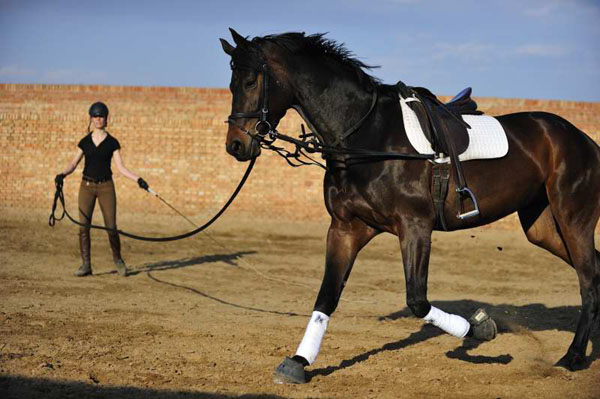本文所針對的是一匹溫血馬(溫血馬多用于從初級到專業(yè)級別不等的盛裝舞步和場地障礙比賽),身高約在160—175厘米之間,重達(dá)600公斤左右。無論對溫血馬還是小型馬,基本的調(diào)教原則都是一樣的。不過,如果想學(xué)以致用,應(yīng)首先了解以上這些信息,以便模仿練習(xí)。 為什么要為馬匹打圈? 打圈是讓馬匹開始習(xí)慣與騎手配合工作的第一步。在第一次騎乘之前,年輕的馬匹應(yīng)在打圈中學(xué)會對馴馬師或是騎手產(chǎn)生信任感,并服從其指令。學(xué)會了打圈,在日后的深入訓(xùn)練中,就能校正動作或改善彎曲中的問題。由于騎手錯誤的輔助,馬匹可能會養(yǎng)成一些不良的習(xí)慣,這些問題都可以在打圈中解決。尤其是馬匹的背部問題更容易在打圈中改善,而不是遺留到騎乘中再去解決。另外,為大病初愈,重新投入訓(xùn)練的馬匹打圈,也是很有必要的。 如果馬匹打圈打得好,對馴馬師或騎手的聲音和其它輔助都回應(yīng)的很好,不僅初學(xué)者受益匪淺。老騎手的騎坐和姿勢問題也可在打圈中改善。因為在打圈中,騎手可以百分之百用心地關(guān)注騎坐問題。因此,打圈同樣受益于已有一定騎乘經(jīng)驗的騎手。 應(yīng)該選擇什么樣的地方打圈? 打圈的運(yùn)動范圍應(yīng)該在14-20平方米左右,周圍環(huán)境應(yīng)該安靜,這樣馬匹才可以集中注意力。最好不要在通常騎馬的地方進(jìn)行打圈訓(xùn)練,以免互相干擾。地面平整,沙土不可以過于深陷。相對于直線騎乘,打圈更容易損傷馬蹄。圈乘四周應(yīng)有圍欄,不論是可移動的或是固定的。這樣會讓馬匹更容易找到平衡感,而且不能跑脫。大型的馬術(shù)學(xué)校和馬場都會設(shè)有永久性的打圈地點(diǎn),有些還有頂棚。 打圈應(yīng)提前做什么樣的準(zhǔn)備? 打圈時,應(yīng)給馬匹配戴打圈肚帶或馬鞍,并帶上水勒。對于年輕且還不會打圈的馬匹,可以在水勒的下面配戴上籠頭,這樣就可以把調(diào)教索固定在籠頭,而不會造成用力拉扯銜鐵。如果考慮讓馬匹開始慢慢適應(yīng)馬鞍,則可以在馬鞍的上面配戴一條打圈肚帶,以便需要時,使用側(cè)韁。調(diào)教索至少應(yīng)在7米以上,最好10米長。馬鞭的合適長度以騎手站在圈乘中心,仍能觸碰到馬匹為準(zhǔn)。還要準(zhǔn)備一些側(cè)韁,長度可以自由調(diào)整,必要時,可以配戴在馬匹的側(cè)面以及扣在銜鐵上。年輕一些的馬匹只有在適應(yīng)了銜鐵后,才能配戴上側(cè)韁。如果過早使用側(cè)韁,會對馬匹造成一定的傷害,日后改正起來將會很困難。 馴馬師需要怎么做? 一般而言,先從左側(cè)開始打圈。馴馬師先將馬匹拉到圈乘的中心位置,左手拿著調(diào)教索,右手握鞭。面朝馬匹左側(cè)站立。然后,用馬鞭輕輕觸碰馬匹,讓它在小圈上開始慢步,通過不斷放長調(diào)教索,讓圈乘逐圈變大。馴馬師一直站在中心位置上,跟隨馬匹的行走節(jié)奏,或快或慢地移動身體。握著調(diào)教索的手臂應(yīng)與口銜鐵保持在同一個水平線上,大臂應(yīng)靠在身體上。調(diào)教索與口銜鐵之間保持一種輕微但穩(wěn)固的接觸。而馬鞭則用來鞭策馬匹一直向前。馬匹稍有松懈時,可以用馬鞭輕輕鞭打內(nèi)側(cè)肘關(guān)節(jié)。不能一直用鞭子觸碰著馬匹,不然在需要時,便會失去作用。如果馬匹走著走著,就不在圈乘線上,而是跑進(jìn)來了,訓(xùn)練師應(yīng)甩動調(diào)教索,并用馬鞭指向馬匹的內(nèi)側(cè)肩膀,告訴它要回到圈乘上去。調(diào)教索和馬鞭可以用來確保馬匹一直呆在圈乘上,并告訴它騎手的指令。除了馬鞭,馴馬師還有一個最重要的法寶,那就是自己的聲音。訓(xùn)練有素的馬匹光是聽到馴馬師的聲音,便可以變換步伐。在從慢步變換到快步時,馴馬師可以將馬鞭提起來一些,大聲喊“快步”。再從快步變換到跑步時,馬匹需要在調(diào)教索半減卻的輔助下,先收縮步子。當(dāng)馬匹的步子收縮后,馴馬師高喊“跑步”,再提起馬鞭,始終保持調(diào)教索與口銜鐵之間的接觸。不要催促馬匹跑步,而是通過收縮動作來完成。開始時會比較困難,但大多數(shù)馬匹會很快掌握的。再從跑步變換到快步,從快步變換到慢步也是同樣的道理,利用聲音輔助,不可以用調(diào)教索硬拽口銜鐵。即便是在換手或是調(diào)整側(cè)韁長度時,在整個打圈過程中,馬匹應(yīng)始終在圈乘線上。在調(diào)教時,馴馬師不能隨便把馬鞭放在地上,而應(yīng)該夾放在腋下。因為特別是在年輕馬面前,從地上撿馬鞭可能會非常危險。馴馬師要經(jīng)常換手并要求馬匹變換步伐,有利于提升馬匹背部的柔軟性。 對馬而言,比起讓經(jīng)驗不足的騎手騎在馬背上給它授課,一節(jié)好的打圈課更能讓它受益良多。 文、圖/Philipp Baumgart 編譯/汪亞麗、趙穎 |