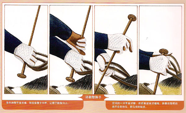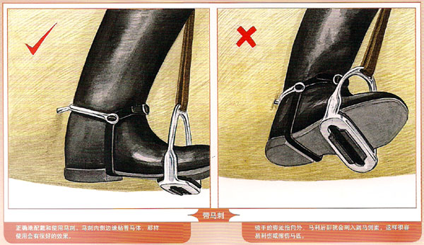 馬刺和鞭子是大家熟知的人工輔助。初學(xué)者甚至初級騎手不應(yīng)用馬刺,當(dāng)騎手失去平衡或不能控制腿時,他們就會濫用馬刺。馬刺最長的金屬臂應(yīng)位于腳的外側(cè),馬刺尖朝下,并沿馬靴的縫合處。金屬扣和帶子的末端應(yīng)在腳的外側(cè)。馬刺的末端應(yīng)光滑,避免傷到馬匹。只用馬刺內(nèi)側(cè)碰到馬體。 對初級騎手而言用長鞭或短鞭,是更安全的。調(diào)教鞭很長,當(dāng)騎手手持韁繩時,鞭子同樣可到達騎手的腿后。調(diào)教鞭不適用于跳障礙,應(yīng)用短的障礙鞭。使用鞭子時不應(yīng)該盲目,當(dāng)馬匹忽略騎手腿輔助時,騎手應(yīng)迅速清晰地用鞭提醒馬,這樣比頻繁地靠馬,讓馬失去感覺效果更好??梢匀我馐殖直?,但必要肘,應(yīng)該換手。如果馬匹不服從,例如,不服從右腿的輔助,鞭子應(yīng)很快換到右手去幫助腿的輔助。 文/Joni Bentley,圖/Carole Vincer,譯/天星調(diào)良國際馬術(shù)俱樂部教練組 |