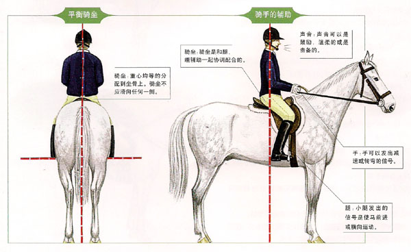 騎手給馬匹信號(使用輔助)時(shí),主要使用小腿、手和身體重心,有時(shí)也用聲音,鞭子和馬刺。對初學(xué)者而言,如果掌握不好平衡,就不能發(fā)出明確的信號,學(xué)習(xí)騎馬首先考慮的事情是建立平衡的騎坐。當(dāng)騎手坐在鞍子中心最深的部位時(shí),他的身體垂直且向上,體重均等的分配到兩邊坐骨上。 從后面觀看(馬匹成立定姿勢站立),可以想象一條直線垂下。騎手的脊椎骨和馬的脊椎骨、尾巴連成一條垂直直線。他的腳、髖和肩是水平的。從側(cè)面看,騎手的耳朵、肩、髖部和腳后跟連成條直線。當(dāng)馬匹走動時(shí),騎手的身體隨著馬匹的運(yùn)動做相應(yīng)的運(yùn)動。 如果騎手的腿抱得太緊,或變得死板僵硬,馬匹會收到不準(zhǔn)確的信號,特別是嘴部。騎手通過脊椎和髖部來緩沖吸收馬的運(yùn)動。如果騎手的脊椎和髖部僵硬,就會很不舒服地撞擊馬鞍。為什么諸多初學(xué)者坐在馬背上時(shí),馬匹就會麻木,忽略各種奇怪的踢、撞擊和拉韁繩的混亂信號,這一點(diǎn)很容易理解。 對于騎手而言控制某些肌肉的能力、力量其實(shí)并不重要。當(dāng)騎手很舒服的與馬保持平衡狀態(tài)時(shí),他就會發(fā)現(xiàn)騎馬毫不費(fèi)力。騎手應(yīng)坐在鞍子最深的部位。身體的重量均等的分配到坐骨上。騎手的上半身應(yīng)向上坐直,不要塌腰,他的耳朵、肩、髖和膝應(yīng)連成一條垂直線。 騎手的大腿應(yīng)放松地貼在鞍子上,允許腿的重量落到前腳掌,自然地沒有壓力地搭在腳蹬上。小腿應(yīng)穩(wěn)定的靠在馬的側(cè)面。腳后跟低于前腳掌。慢步時(shí),騎手通過向前和向后推動腹部,達(dá)到與馬匹的運(yùn)動和諧一致。快步時(shí),騎手既可以繼續(xù)坐在鞍上,類似于慢步時(shí)的動作,有吸收和緩沖快步的運(yùn)動;也可以做輕快步。 輕快步:快步的第一個(gè)節(jié)拍時(shí),騎手的騎坐離開鞍子,半站于腳蹬上,快步的第二個(gè)節(jié)拍時(shí)再次降低騎坐。這樣做使馬和騎手更舒服。然而快步允許騎手的騎坐更多地影響馬匹。 跑步:跑步時(shí)騎手的騎坐始終在鞍子里向前及向后移動上半身。但腰不能塌陷。如果騎手鎖住髖關(guān)節(jié),就會沒有控制地在鞍子上亂砸一氣。 跳障礙和襲步時(shí),騎手身體前傾,騎坐的重心高于鞍子,同時(shí)運(yùn)用腳保持好平衡。無論何時(shí),騎手的手都應(yīng)該是放好的,使騎手的肘、手背、馬嘴形成條直線。當(dāng)馬匹反復(fù)前后運(yùn)動,騎手始終如一的與韁保持聯(lián)系。做這些時(shí)騎手必須靈活運(yùn)用肘關(guān)節(jié)和肩關(guān)節(jié)。 騎手握緊手指來使用韁的輔助。如果與韁繩聯(lián)系得很好,微小的手指輔助才有效。騎手的小腿應(yīng)輕輕的,力量均等地和馬的兩側(cè)保持接觸。使用腿的輔助,腿的位置在通常的位置上使用或放到肚帶的后面(向后)大約2-3手(20-30厘米)寬處,腳趾仍指向前。 文/Joni Bentley,圖/Carole Vincer,譯/天星調(diào)良國際馬術(shù)俱樂部教練組 |