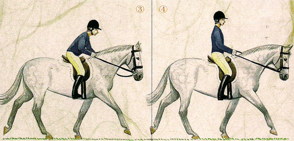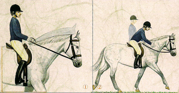 大多數(shù)騎手發(fā)現(xiàn)很難做到正確的韁接觸。下面的方法會幫你通過韁與馬匹嘴部和馬的接觸進(jìn)行很好的溝通。 讓馬匹通過要韁來牽動你的手,同時讓你的手“想要向前”,且朝向馬嘴的方向,而不要讓你的手企圖向后朝你的髖部移動。這是鼓勵馬匹更多地伸展脊椎,更加向前去尋找口銜。馬匹的頭、頸、背越放松,呼吸就會變得更有效率,并且會更加容易地接受你要求它做的動作。 要讓你的手隨著馬匹頭部的前后運(yùn)動而前后運(yùn)動,這樣馬的脖子可以伸長并流暢運(yùn)動,而不是緊張、抗拒。用這種很輕的接觸,你會感覺到馬的嘴部是很柔軟的。過一段時間后,如果你不去跟馬匹較勁,它將把口銜向前要,這是馬匹工作受銜的第一階段,也是讓馬匹身體正直的先決條件。 要尋求手部的敏感意識,想象你的手里握著兩只小鳥(如圖),你想輕輕地、安全地握著它們,當(dāng)然你肯定不想把它們捏死。 要不停地檢查自己的姿勢感覺你的脖子是否自由,你的肩膀是否放松,你的胳膊肘是否放松并且下垂,你的肘部不要靠在肋骨上鎖定住,要讓它稍微向外一點(diǎn)。想象你的雙手手腕內(nèi)側(cè)有光束照耀著彼此,這會幫你保持手部握韁姿勢的端正:手掌是放松的,指尖接觸手掌心。 ①最初自由韁慢步,觀察馬匹想把頭放在什么位置,注意馬匹的頭部是如何前后運(yùn)動的。 ②騎手身體向前,在馬匹脖子的兩側(cè)撫摸輕拍,左韁接觸時,你可以拍馬匹脖子右側(cè)。如果馬匹不向前尋找口銜,那么它會縮短脖子。 ③用右韁接觸馬匹。撫摸馬匹脖頸左側(cè),看看馬匹是否仍然向前尋找口銜。 ④現(xiàn)在握好韁繩,讓它頭部自如、敏感地隨著它運(yùn)動,它將會尋找口銜,并傳到你手上。 如果馬匹伸長脖子下部的肌肉,從你手中要更多的韁,不用擔(dān)心(圖5)。要讓馬匹的整個脊椎充分伸展開,才能最終使馬匹達(dá)到收縮。只有使馬匹的整個軀體更伸展,它的軀體才更有力量,才能做更多的高級動作(圖6)。 文/Joni Bentley,圖/Carole Vincer,譯/天星調(diào)良國際馬術(shù)俱樂部教練組 |