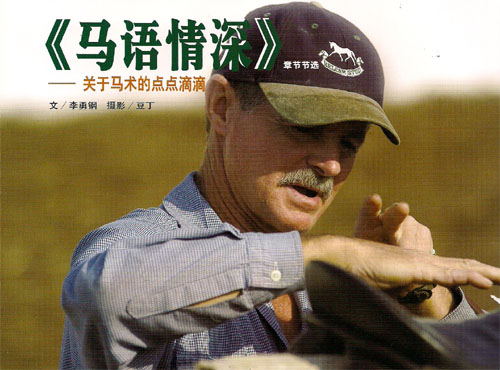 編輯手記: 如果馬術(shù)僅指為馬的技術(shù),那就仿佛數(shù)學(xué)僅指為數(shù)字的游戲了,顯然,并非僅此而已。感知讓我們認(rèn)識到事物的外延通常指向的是人生的哲學(xué)、終極的藝術(shù)。 在馬的技術(shù)層面上,對生活態(tài)度、工作技能的辨證思考,使《馬語情深》這本書并不執(zhí)著于教會你諸如“1+1=2”,而更多的在于引領(lǐng)你思考和處理多種關(guān)系,并且是藝術(shù)的處理關(guān)系,這是一種大和諧。因而,關(guān)于馬術(shù)的點(diǎn)點(diǎn)滴滴也就由此而來。 引言 騎馬有些年頭了。自從1990年開始第一次野外騎乘,到現(xiàn)在迷戀場地馬術(shù)的過程中,有一些切身的體會和感悟,在此愿意和善歡馬的朋友們分享。我想很多朋友可能都會和我有著相同的經(jīng)歷和感受。 最初喜歡騎馬是因?yàn)?,面對無垠的曠野,伴著碧草藍(lán)天,策馬揚(yáng)鞭,飛速馳騁在大自然當(dāng)中,感覺是何等的自由奔放。久在城市生活的人,難得有機(jī)會全身心地融入到真正的大自然中去,所以每一次騎乘都是盡情地享受馬兒帶給我的速度和激情。 隨著騎馬次數(shù)的增加,時(shí)時(shí)會碰到很多問題。比如,滾鞍落馬、快馬停不住、慢馬騎不走、你想往東,馬卻往西等等……在遇到不同的馬匹時(shí)也不是每一次都能盡興而歸,因?yàn)橛械鸟R聽話,有的馬不聽話。碰上那時(shí)認(rèn)為的所謂的烈馬,會更難駕馭,而且騎完后有時(shí)會覺得腰酸背痛,甚至是對自己的身體造成傷害。所以,件著諸如此類的問題,自己開始和馬友們相互切磋、琢磨、研究,就想找一位好老師,認(rèn)真地學(xué)習(xí)一下騎術(shù),以便能讓自己了解其中的奧秘,從而真正地學(xué)會騎馬。在這期間,我確實(shí)走了不少彎路。 接下來的過程是:從一年騎幾次馬,到一星期騎一次,再到周末兩天都在馬揚(yáng),直至現(xiàn)在的一周騎4~5次。場所也從野外到馬術(shù)俱樂部,從戶外騎乘俱樂部到場地馬術(shù)俱樂部。期間,自己對騎馬的觀念和認(rèn)識有了很大的改變,而且對馬術(shù)運(yùn)動也有了更深的理解。在此想引用一位43歲、有38年騎馬經(jīng)驗(yàn)的德國舞步教練的話來說明馬術(shù)運(yùn)動的美妙:“這是我的生活,一種完美的生活?。↖t's my life, perfect life.)” 這位舞步教練為什么會這樣講?簡單的騎馬為什么被她提高到了生活的高度?果真如比嗎?答案是肯定的!馬術(shù),就像我們的生活。它是一項(xiàng)很美的運(yùn)動,它積極、健康、充滿陽光。它隱含著人生哲理,深入淺出,魅力無窮!通過對馬術(shù)的學(xué)習(xí)會讓人身心受益,因?yàn)樗宋覀兩钪刑嗟牡览?,這也就是其中的奧妙所在。 人是有思想的,每次訓(xùn)練后我都會聯(lián)想到很多事情,從而在學(xué)習(xí)馬術(shù)的過程中學(xué)會許多做人的道理。世上的道理是相通的,正所謂殊途同歸。其實(shí)通過對馬術(shù)的學(xué)習(xí),學(xué)到的是馬術(shù)之外的東西。所以,喜愛騎馬的朋友在習(xí)馬的過程中肯定都能或多或少地體會到馬術(shù)與我們生活之間的聯(lián)系。 文中所有對騎乘方法的理解和對生活的感受僅代表個人觀點(diǎn),如有語言表達(dá)方式欠妥或不恭之處,敬請朋友們原諒。 片段節(jié)選1 感謝,給予(珍貴的收獲) 曾有幾天一直和來自澳大利亞的兩位40多歲的馬術(shù)前輩在一起,一位是馬場主克莉斯汀女士,另一位是馬術(shù)職業(yè)教練杰夫先生。通過杰夫單獨(dú)給我上的一堂馬術(shù)課和觀看他們的馴野馬表演使我受益匪淺,收獲良多。 杰夫先生是我所親眼見過的第一位真正的“馬語者”,他給我上的那節(jié)課主要教的就是學(xué)會感謝,學(xué)會給予。在與馬溝通、讓馬受銜工作時(shí),一定要學(xué)會:當(dāng)馬匹按照你的要求做對動作時(shí),一定要適時(shí)地給韁,給它一些自由的空間,那樣它會很舒服,會很自愿地去受銜。給韁是獎勵馬,是對馬表示感謝的意思。當(dāng)它做錯誤的動作時(shí),要立即用韁繩提醒它,當(dāng)它做對時(shí),馬上再次獎勵它,謝謝它。通過多次的練習(xí),讓馬自己明白什么是對的,最終達(dá)到馬是自愿地、主動地、放松地去做正確的動作,而騎手的工作只是在適當(dāng)?shù)臅r(shí)候提醒馬,獎勵馬,與馬匹輕松地自然地、和諧地一起工作。杰夫常說的幾句話:When he gives and you give."Give"means thank you,you always say thank you to him and reward him, so after many many times he will know what is the right things to do.當(dāng)它給你的時(shí)候你就給它。給是感謝和獎勵的意思,你經(jīng)常感謝并獎勵它,經(jīng)過多次的練習(xí)以后,它就會知道如何去做正確的事情。 人與馬如此,人與人亦然。 懂得感謝和給予的人最快樂!生活中的“智者”都明白一個道理,有舍才有得。小舍小得,大舍大得,不舍不得!能夠給予是福、是驕傲、是自豪! 有一則關(guān)于“付出、給予和接受、索取”的小寓言,很有意思。 上帝對兩個將要投胎轉(zhuǎn)世的甲和乙說:“你們兩個前世未作大惡準(zhǔn)許投胎為人,但是現(xiàn)在世上只有兩種人可供選擇,付出的人和索取的人。也就是說,你們倆,一個必須過不斷地付出、不斷地給予的人生,而另一個則必須過不斷地接受、不斷地索取的人生。自己慎重選擇吧。 甲暗想,“不斷地付出、不斷地給予的人生”一定會很累、