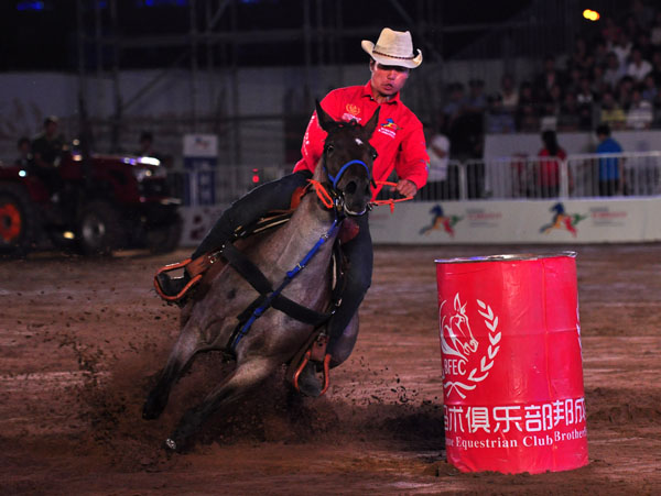 8 月26 日,在唯美的葡萄牙古典火秀和優(yōu)美的人馬共舞之后,2012 全國馬術(shù)繞桶冠軍賽達拉特旗站正式拉開了帷幕。本次比賽中,東道主邦成馬術(shù)俱樂部似突然殺出的一匹黑馬,無論騎手還是馬匹,都表現(xiàn)出了良好的實力。尤其是進口的81 匹夸特馬和外國騎手的參與,最終使得邦成馬術(shù)俱樂部榮獲團體冠軍。賽中,每位邦成隊員出場時,現(xiàn)場的外國騎手都會瘋狂地吶喊助威,為比賽掀起一輪又一輪的高潮。今年邦成請來了多位外國優(yōu)秀騎手在本次馬文化節(jié)上進行表演,幾個月他們一直生活在邦成牧場,一起娛樂,一起訓練,不僅幫助邦成俱樂部的騎手們提高了成績,更建立了深厚的友誼。 落馬、拒繞、不服從,在比賽中是非常常見的現(xiàn)象,也許是騎手和馬匹的默契度不夠,也許是現(xiàn)場的LED 大屏幕或觀眾席上的閃光使馬匹受到驚嚇,各種各樣的原因都會使敏感的馬匹受到干擾,這也大大增加了比賽的不確定性。許多騎手在遇到突發(fā)狀況時,首先考慮的是馬的安全,甚至會主動退出比賽。這一點既體現(xiàn)了國際馬聯(lián)“一切以馬的利益為主”的號召,更流露出了人馬之間細膩的感情。 記得筆者剛剛開始接觸馬的時候,一次馬跑累了出了很多汗,我心疼地下馬輕拍它的脖頸,誰知那匹馬低下頭來,大腦袋直往我懷里扎,我嚇了一跳,教練說它是在撒嬌呢,只記得當時我的心都要融化了,牽著它在馬場里一圈圈地散步,一首首的輕輕地給它唱著歌??上攵袃?yōu)秀的騎手在日常訓練中都是這樣一點一滴跟馬建立起感情和默契的,在比賽時更多享受的是樂趣,名次似乎也不那么重要了。 繞桶賽起源于美國西部鄉(xiāng)村,來源于牛仔們農(nóng)閑時的娛樂活動,它的形成環(huán)境本就是自由、灑脫、奔放、快樂的。發(fā)展到現(xiàn)在,這個項目在進行比賽時,現(xiàn)場的氣氛無論是背景音樂還是比賽節(jié)奏都是輕松歡快的曲調(diào);而喜歡這個項目的馬友們也多是活潑、奔放自由的性格。筆者身邊好幾個喜歡繞桶的女孩子都是這個類型,不僅繞桶,滑雪、跳傘、帆船、穿越沙漠都是她們非常喜愛的運動。隨著馬文化的普及和賽事的逐年增加,這一項目越來越多地受到人們的關(guān)注,相信會有越來越多的騎手,尤其是女騎手參與到這個項目中來。 在本次賽事中,青島寶湖隊、頤和馬房隊、河北圣泰集團等,作為國內(nèi)繞桶的領(lǐng)軍團隊都表現(xiàn)出了強勁的實力。最終寶湖一隊的阿拉德日圖騎乘方糖以15 秒783 的當日最好成績奪得公開個人組的冠軍,在這項小組賽中有16 名騎手進入了17 秒。會員組的男、女冠軍分別由森林牧場的曹玉君和邦成馬術(shù)俱樂部的馬若瀟獲得。青島寶湖馬術(shù)俱樂部董事長于瑞宗更是獲得了馬主的最高榮譽“最佳馬主”獎項。 賽后,現(xiàn)場觀眾紛紛退席,唯有辛苦了幾個月的組委會工作人員難掩激動的心情,久久不肯散去。擁抱、合影,歡聲笑語不斷。當筆者自己踏進場地后,才深感雨后的場地有多么濕滑。人馬安全,比賽完美,這個時候,名次、榮譽,早已拋在了腦后,人們的快樂才是最真實的存在。 鄂爾多斯達拉特第二屆國際馬文化節(jié)的高規(guī)格舉辦可謂完美,會場的設(shè)施、馬匹的打理、人員的配備,尤其是進口了81 匹進口馬和請來的多位各國家優(yōu)秀運動員的精彩展示,給人一種置身國外馬術(shù)比賽的感覺,真正體現(xiàn)了高品質(zhì)。鄂爾多斯通過政府主導(dǎo)、補貼,民間企業(yè)參與、出資的形式,成功的促成了本次馬文化節(jié)的舉辦。包括中國馬文化博物館在達旗進行的小范圍展覽,都讓人們更深入地了解到了馬文化,當?shù)仡I(lǐng)導(dǎo)在參觀時當即表示在達旗將來也要建立起自己的馬文化博物館。隨著馬文化節(jié)的圓滿落幕,我們對明年的鄂爾多斯馬文化節(jié)、對中國馬文化發(fā)展的未來更加充滿了憧憬和期待。 |