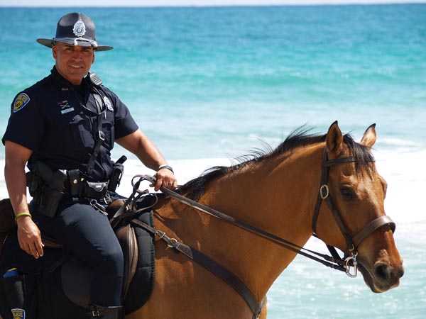 美國是全世界的馬業(yè)超級大國,早在第一次世界大戰(zhàn)前后就已經(jīng)擁有2400 萬匹馬。當(dāng)時(shí),美國的馬在數(shù)量和質(zhì)量上均為世界之冠。如今,在美國至少有近千萬從事馬業(yè)的人員,而在馬匹的使用上,役用及其他用馬所占比例要超過比賽用馬,由此可見馬在美國人生活中的地位,這也就是為什么美國是全世界擁有騎警隊(duì)數(shù)量最多的國家,全民皆兵,沒有之一。 騎警是美國地方警察執(zhí)法的核心力量,在美國各個(gè)州的警察局都設(shè)有騎警巡邏隊(duì),約123 支左右。這些騎警隊(duì)主要負(fù)責(zé)協(xié)助安全巡邏、教育、公關(guān)關(guān)系和進(jìn)行相關(guān)執(zhí)法工作。今天,在美國邊境的騎警巡邏隊(duì)警馬超過300 匹,絕大多數(shù)都部署在美國與墨西哥的邊境。像美國新澤西州紐瓦克市,這里深受孩子們喜愛的騎警隊(duì)已經(jīng)有著120 多年的歷史,但因?yàn)榻?jīng)費(fèi)問題最終被其他城市的騎警隊(duì)合并。明尼蘇達(dá)州明尼阿波利斯警察局則擁有美國最大的騎警隊(duì)。美國各個(gè)州的騎警隊(duì)雖然皆為地方警察,但還是各種特點(diǎn)不一,惹人關(guān)注。 卡羅來納州騎警巡邏協(xié)會(huì)CMPA 在南卡羅納州,有一支名為卡羅來納州騎警巡邏協(xié)會(huì)(CMPA)的騎警隊(duì)。這支騎警隊(duì)目前有25 人左右,由于經(jīng)費(fèi)緊張,因而大部分支出都需要靠經(jīng)濟(jì)援助,比如馬匹,拖車,馬廄,飼料以及獸醫(yī)費(fèi)用,很多騎警會(huì)選擇騎自己的馬匹進(jìn)行巡邏工作。在美國,不管你是否曾經(jīng)會(huì)騎馬,只要你想成為一名騎警,就必須進(jìn)行一些特殊的培訓(xùn)以得到認(rèn)證許可,而且每年都要重新進(jìn)行認(rèn)證,這也是為了保證巡邏期間的人和馬都能做到安全出警。 騎警的巡邏人員一般都會(huì)在高風(fēng)險(xiǎn)地區(qū)或商場街頭進(jìn)行巡邏,或體育賽事及各種節(jié)日的觀眾維護(hù)。因?yàn)樗麄儞碛幸黄コ錾淖T,可以給大家更多的安全感。巡邏汽車通常要繞很遠(yuǎn)的路才能折返一次,但騎警并不需要繞很遠(yuǎn)的路,而且他們坐得高,視野開闊,更容易發(fā)現(xiàn)作案分子。美國騎警還常會(huì)去一些學(xué)校組織慈善活動(dòng),讓更多的人了解馬的基本常識,懂得如何打理馬匹。 埃爾蒙特騎警隊(duì) The El Monte Police Department 埃爾蒙特騎警隊(duì)(The El Monte Police Department)的歷史可以追溯到1940 年,他們至今還和其他安保成員一起承擔(dān)著安全保障工作。埃爾蒙特騎警隊(duì)主要負(fù)責(zé)巡邏城市公園,自行車道以及該城市邊境地區(qū)的休閑娛樂場所。此外,在交通繁忙時(shí),他們也會(huì)進(jìn)行交通執(zhí)法工作。每年,騎警隊(duì)還會(huì)選出一個(gè)親善大使,到公園或者學(xué)校參與一些公益活動(dòng),以加強(qiáng)當(dāng)?shù)厝说陌踩庾R,減少犯罪。這里騎警的馬都是私人馬主提供的,每天的租金為一美元。體現(xiàn)了美國的人人都與騎警相關(guān)的特點(diǎn)。而在1998 年,這里開辦了一項(xiàng)名為“騎警志愿者”的活動(dòng),這些志愿者主要負(fù)責(zé)社區(qū)、小的游行和部分學(xué)校的巡邏工作,但沒有執(zhí)法的權(quán)利。 在美國,喂養(yǎng)警馬都需要用經(jīng)過特殊處理的飼料,這樣可防止外來不明物通過飼料進(jìn)入警馬體內(nèi),進(jìn)而在警馬的巡邏區(qū)域內(nèi)傳播。 洛杉磯警察局騎警隊(duì) Los Angeles Police Department Mounted Unit 1981 年7 月,洛杉磯警察局組建了一支由警察志愿者組成的騎警隊(duì)。這些會(huì)騎馬的警察自愿成立這樣一支隊(duì)伍,使用自己的馬以及各種鞍具,他們花費(fèi)了許多時(shí)間進(jìn)行相關(guān)騎警知識的培訓(xùn)工作。1988 年,洛杉磯警察局成立全職騎警隊(duì),新的騎警隊(duì)由31 位宣過誓的警察隊(duì)員組成,其中包括1 名警督、3 名軍士官和27 名巡警。洛杉磯騎警隊(duì)用城市基金買了40 匹馬,分配給全城18 巡邏區(qū),還買了卡車和拖車運(yùn)送警官和他們的坐騎到各個(gè)地點(diǎn)。 美國洛杉磯警察局騎警隊(duì)從主要進(jìn)行人群控制并發(fā)展到執(zhí)行多種任務(wù),全天候地適應(yīng)各種地形的警隊(duì),他們的日常職責(zé)是在城市的犯罪高發(fā)區(qū)以及巡警指揮官要求的有特殊犯罪問題的地區(qū)巡邏。騎警隊(duì)也布置在城里每個(gè)重要的示威點(diǎn),騎警與步行警官相配合,可對大規(guī)模的抗議示威人群實(shí)施有效的控制,防止?jié)撛诘谋┝_突發(fā)生。在和平的集會(huì)慶祝節(jié)日和游行中,騎警的出現(xiàn)會(huì)給那些參加游行的人帶來安全感。此外,警官在馬背上能更好地移動(dòng)和增加可見度,這無疑會(huì)增加警察的威懾力。 美國洛杉磯警察局所有的騎警都要接受以下的培訓(xùn):馬術(shù)技巧訓(xùn)練(包括策略方案、人群控制、耐力考驗(yàn)等,警官進(jìn)行一個(gè)月的基礎(chǔ)訓(xùn)練以保證有精湛的馬術(shù)技巧,并且能在工作中不斷變化更新這些技巧)、辨認(rèn)毒品的訓(xùn)練,警官們還要學(xué)習(xí)馬的心理、解剖、馬科動(dòng)物的調(diào)理及飼養(yǎng)的知識、對馬的基本救護(hù)等。騎警隊(duì)與加州其他執(zhí)法機(jī)構(gòu)保持著密切的業(yè)務(wù)聯(lián)系,每年還要參加這些執(zh